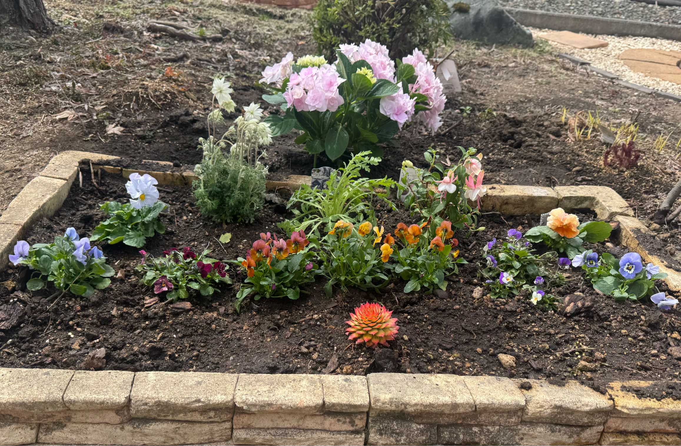 行きつけの近所の花屋さんに「ビオラって越冬できます?」と聞いたところ、「できますよー!今のうちに植えてたら春植えよりよく育つよ!」とのことだったので、冬も間近な季節にビオラを2株購入し2024年10月27日に地植えしました🌱