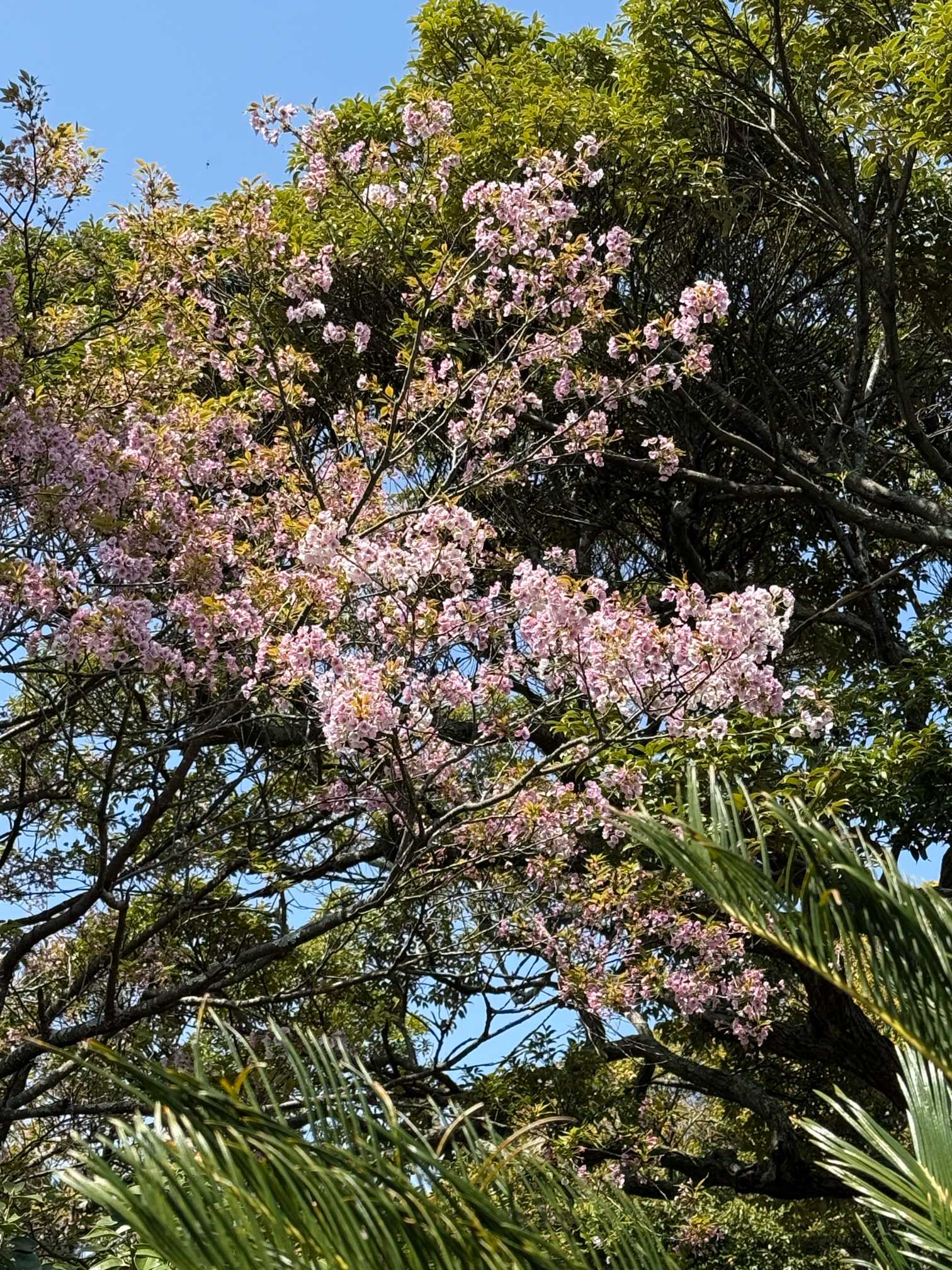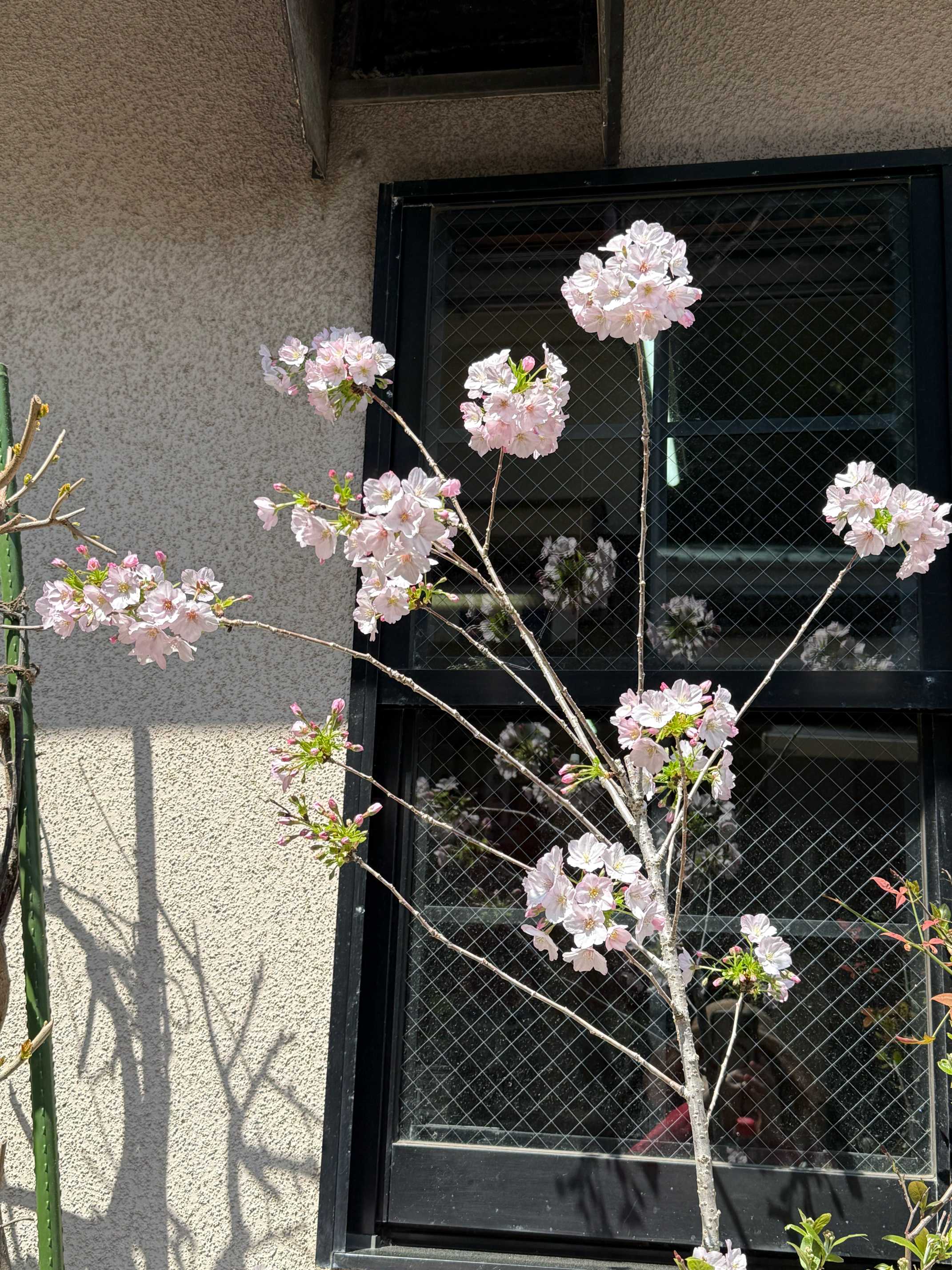 中の木はまだ硬い蕾ですが 1本だけ咲いてます 可愛い🩷💕