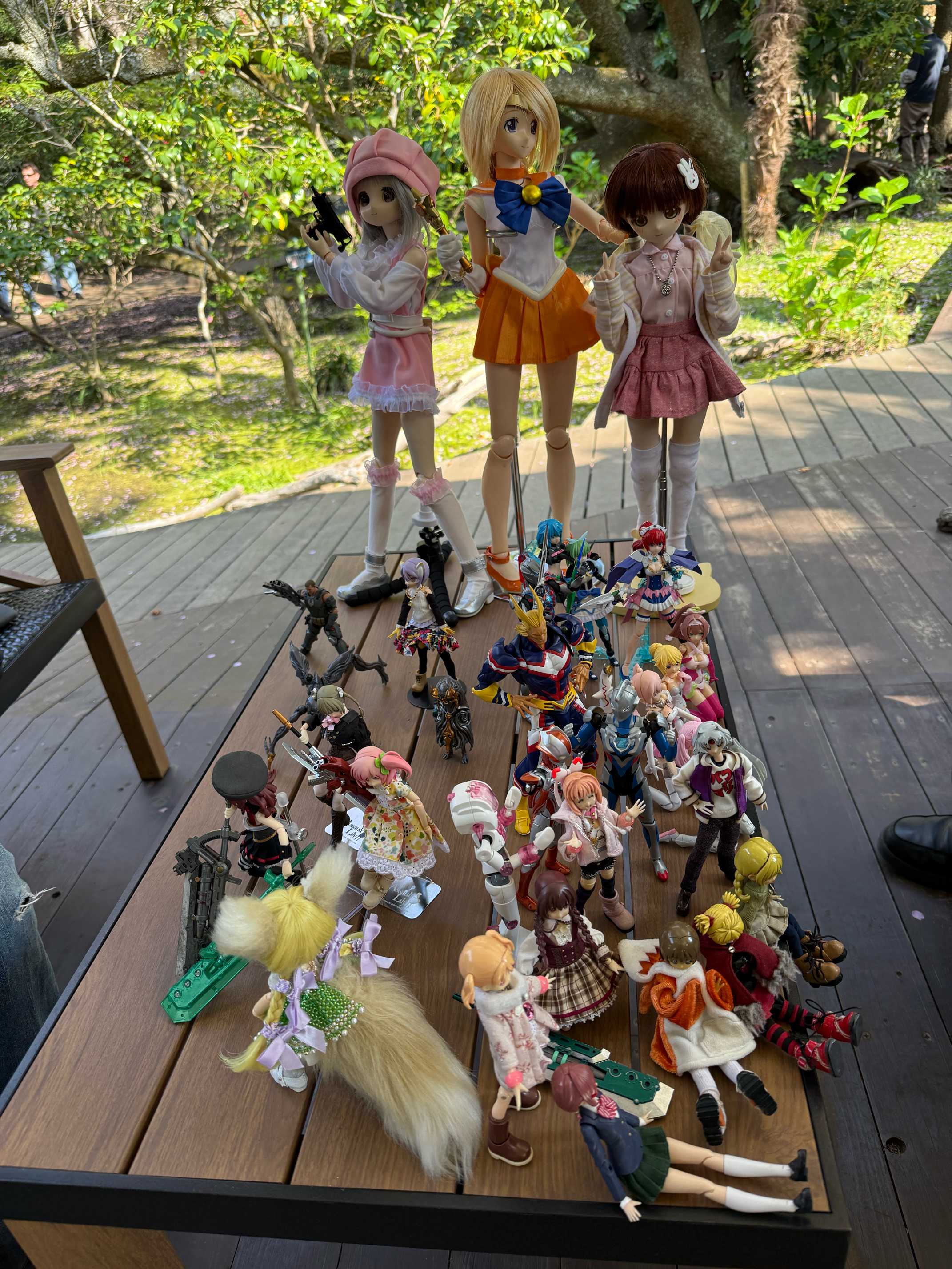 3人組の男性方がお人形さんを並べてワィワィおしゃべりしてたので、ちょっぴり仲間に入れて貰いました。ブーツ🥾履いてカッコいい言ったら、これ革なんですよ。15年前に買いました。革靴は傷まないですよって。