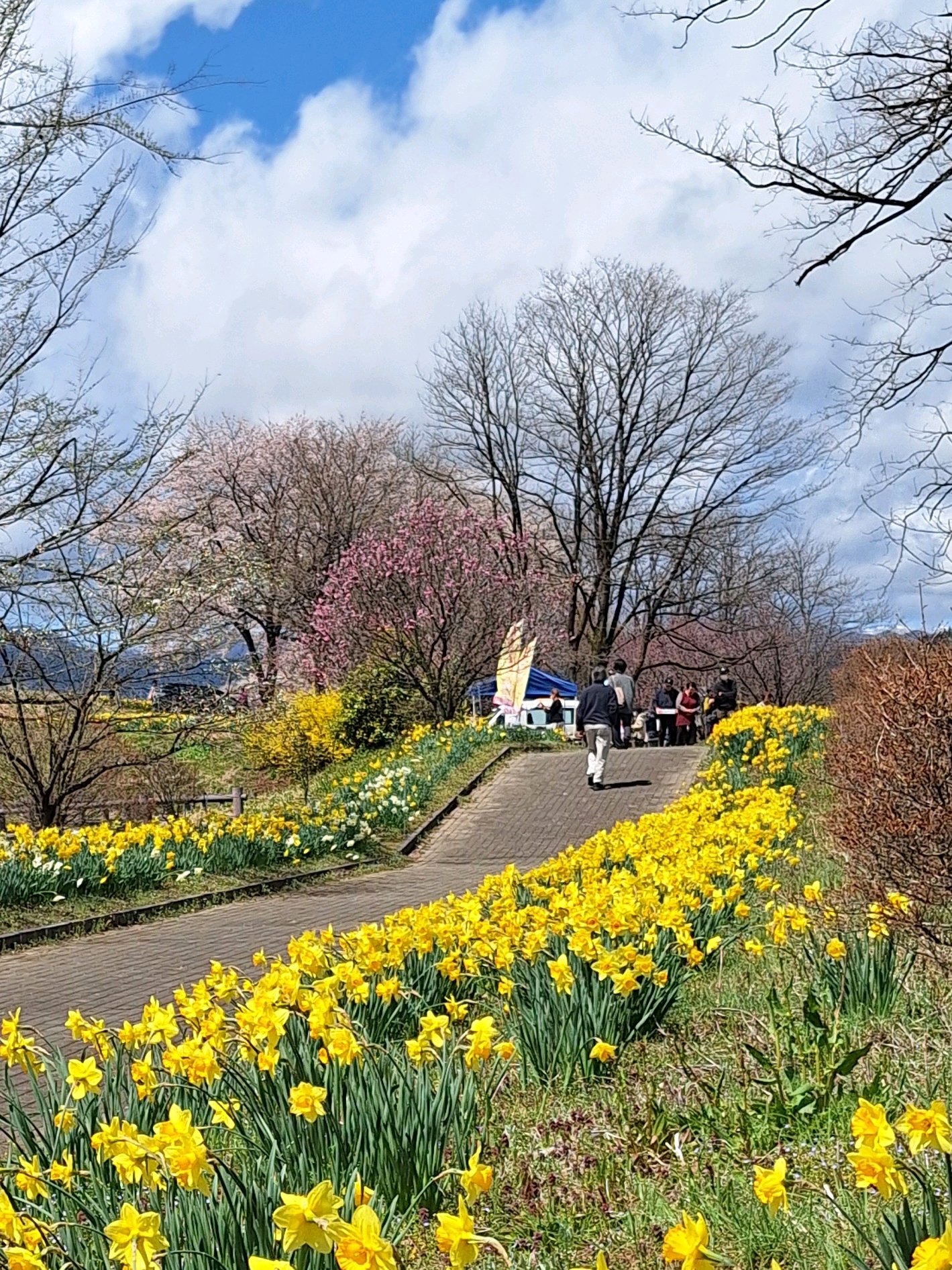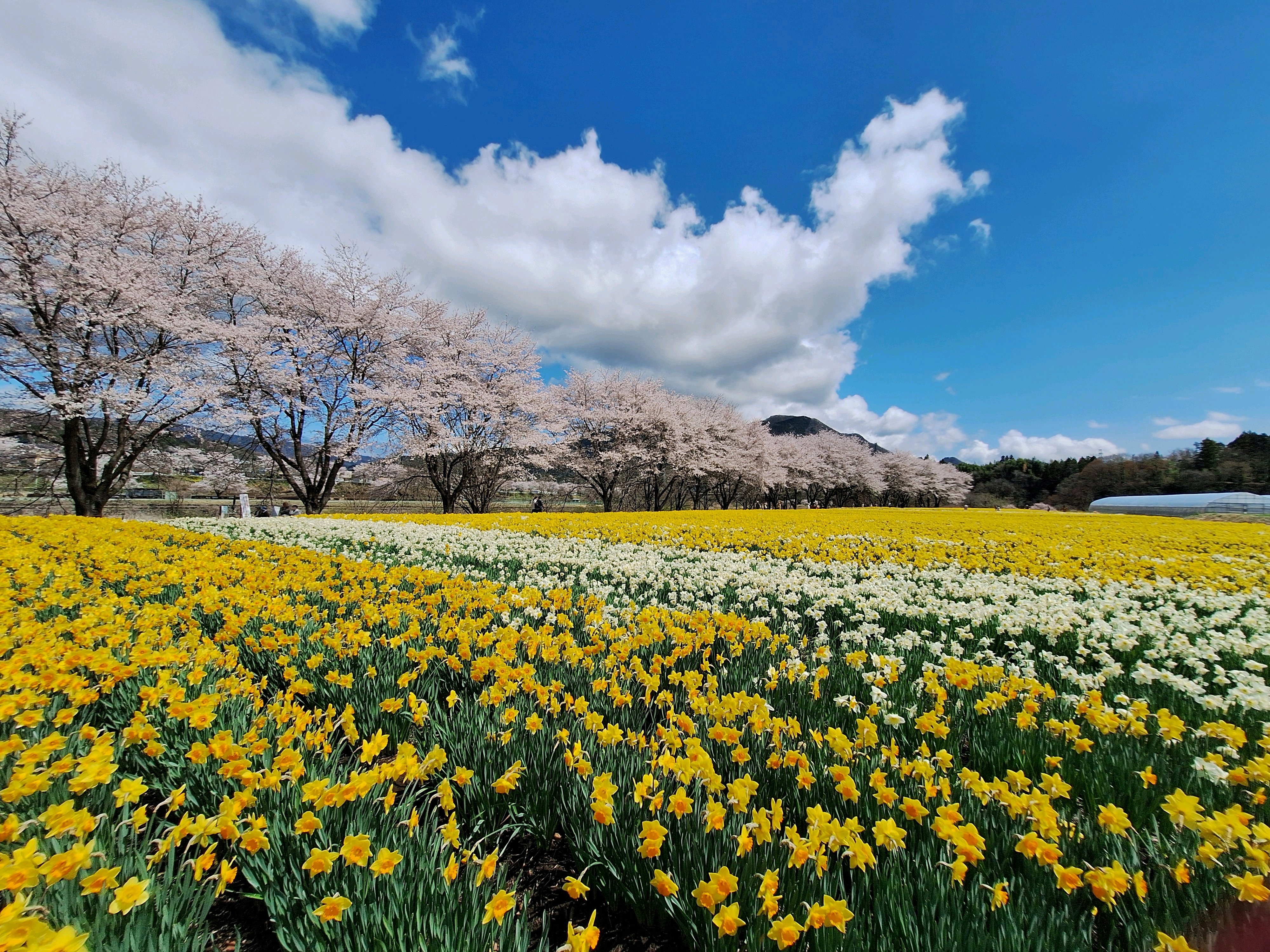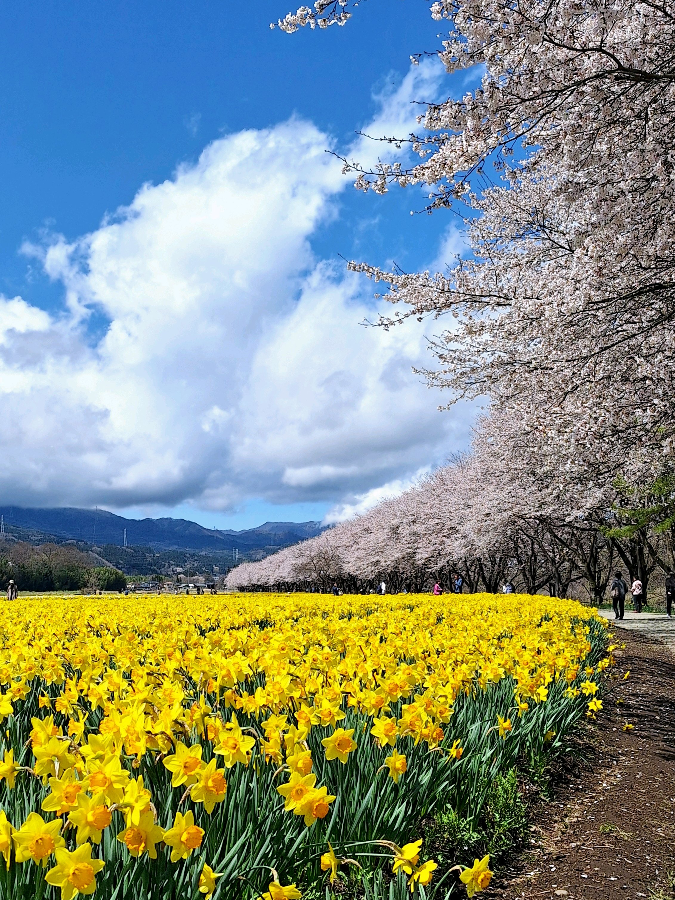 ここは水仙がメインで、およそ1kmに及ぶ桜並木のお花が咲くと、いっそう素晴らしい景色になります✨🌸✨