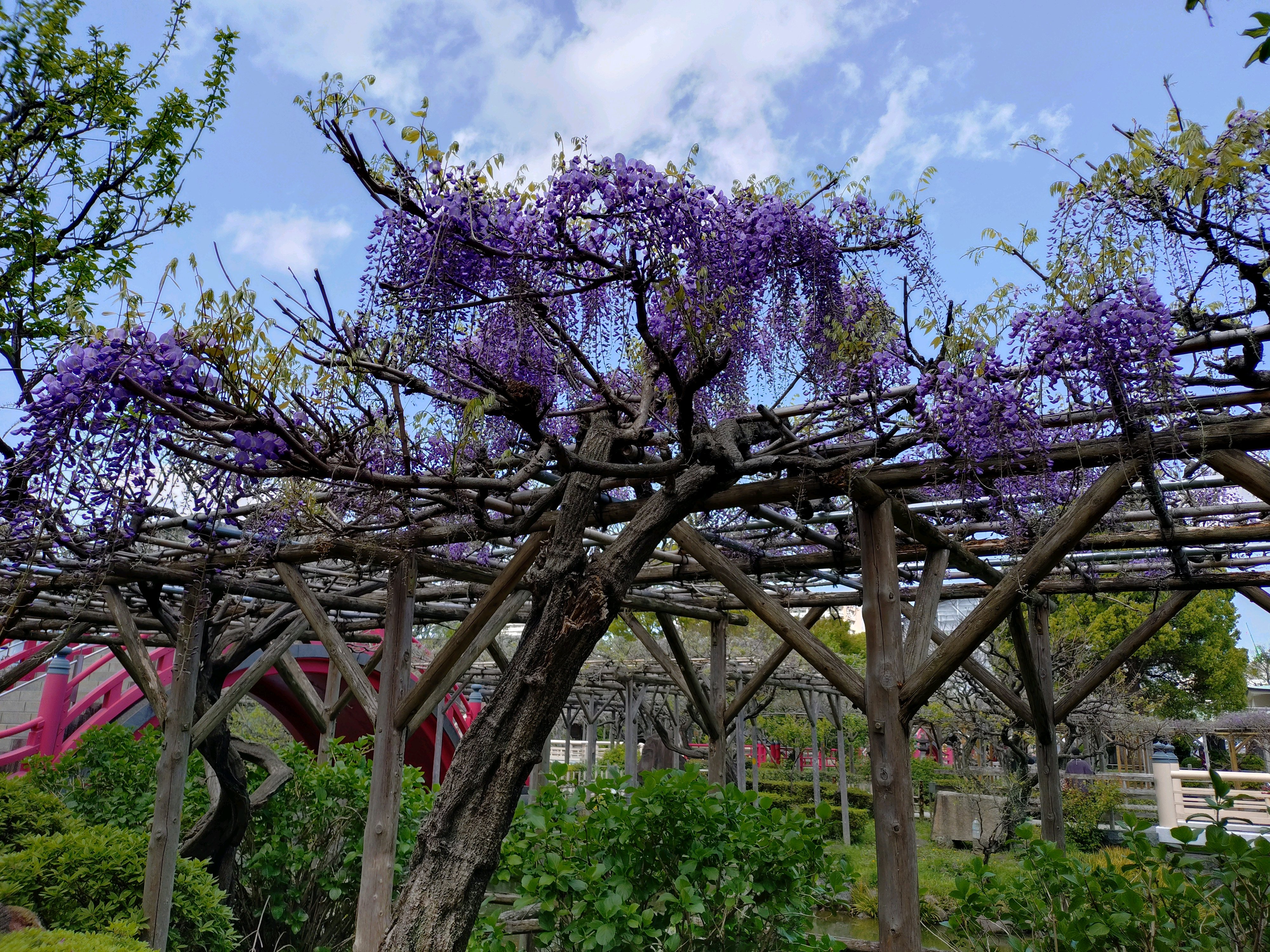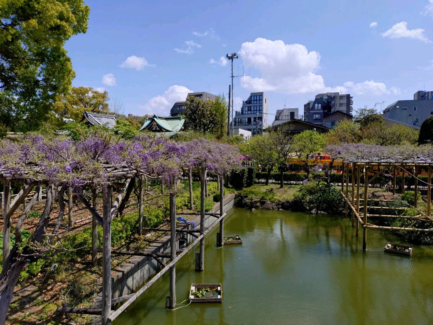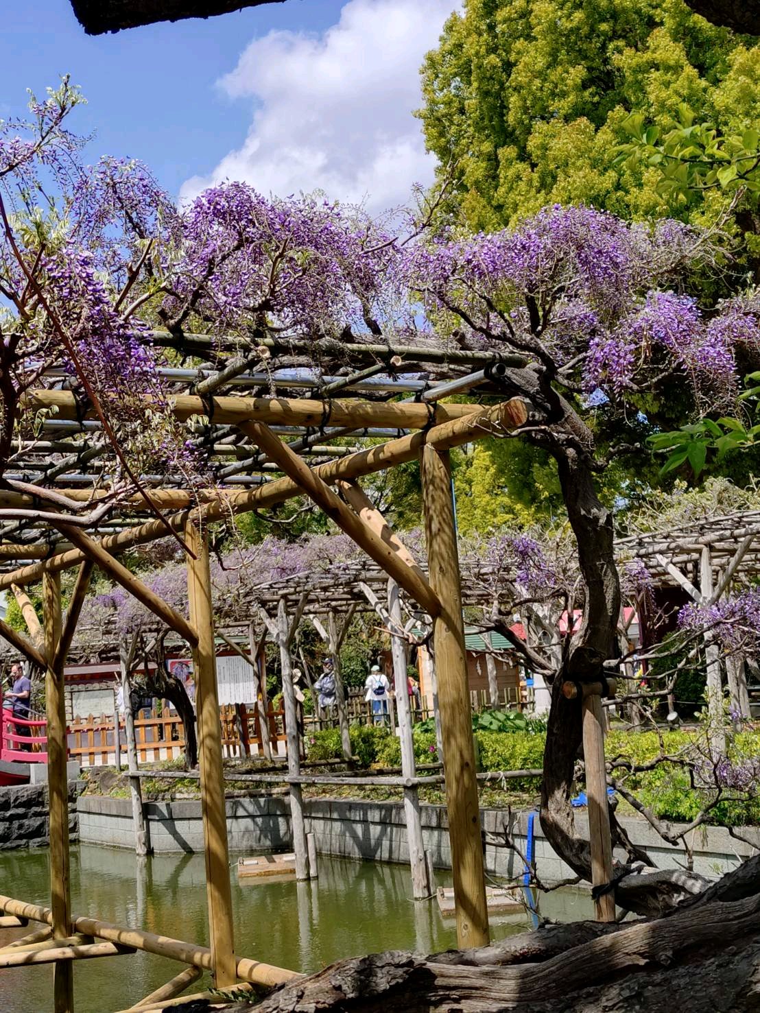 あちこちに藤棚が作られて居て真ん中は太鼓橋でお天気も良くて平日で人もそれ程居なくて。🙆🤗🤗