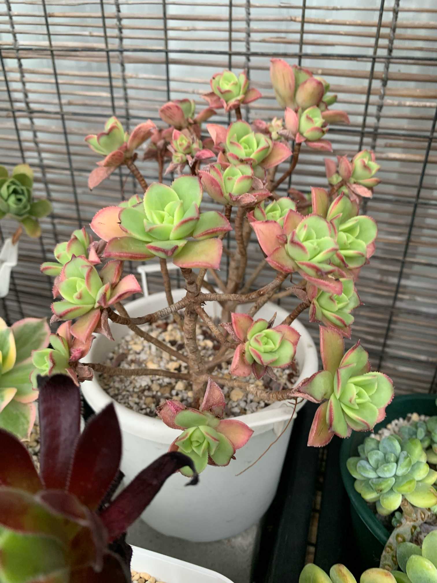 多肉小屋の上段で早春の陽射しで葉焼けしました(T ^ T)