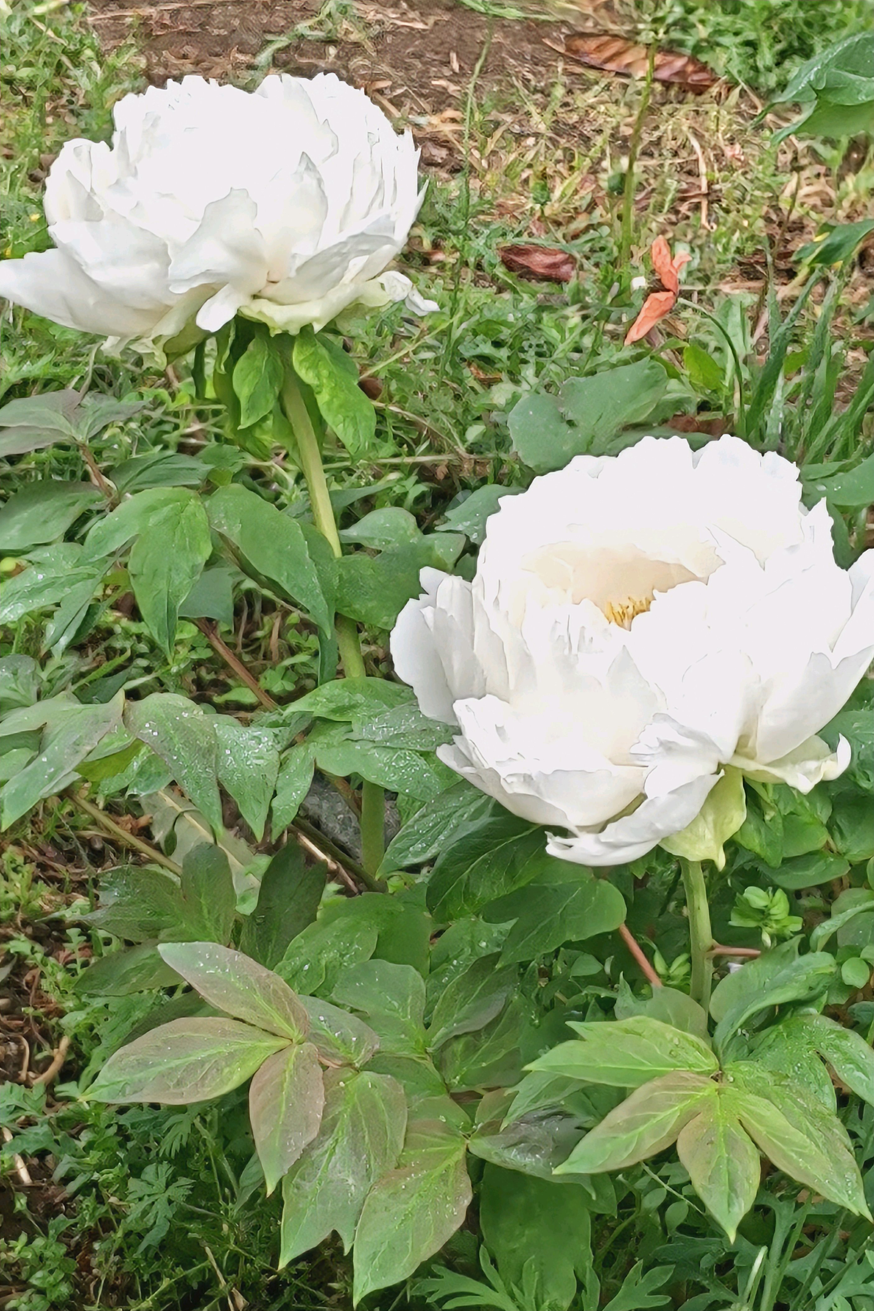 小糠雨の中の白牡丹