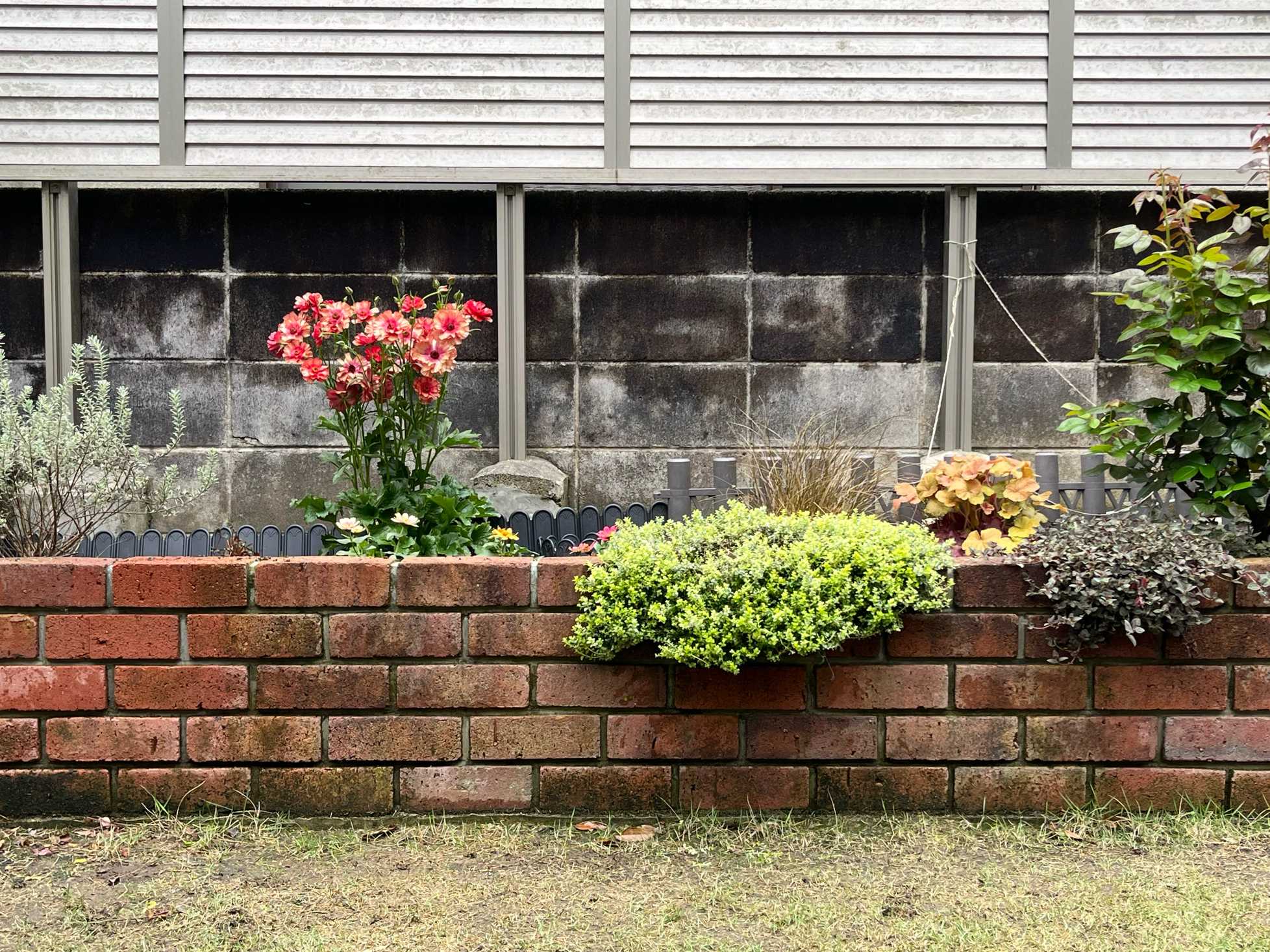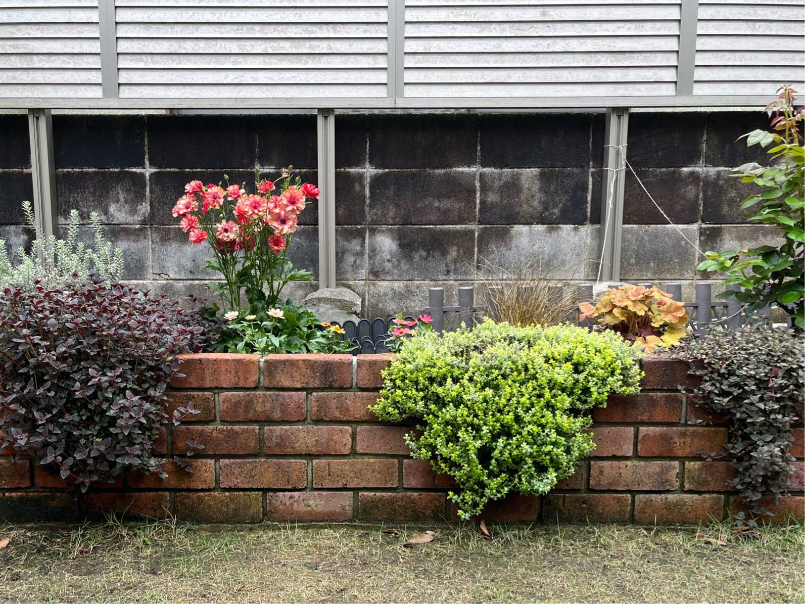 日が陰りがちなレンガの花壇です。