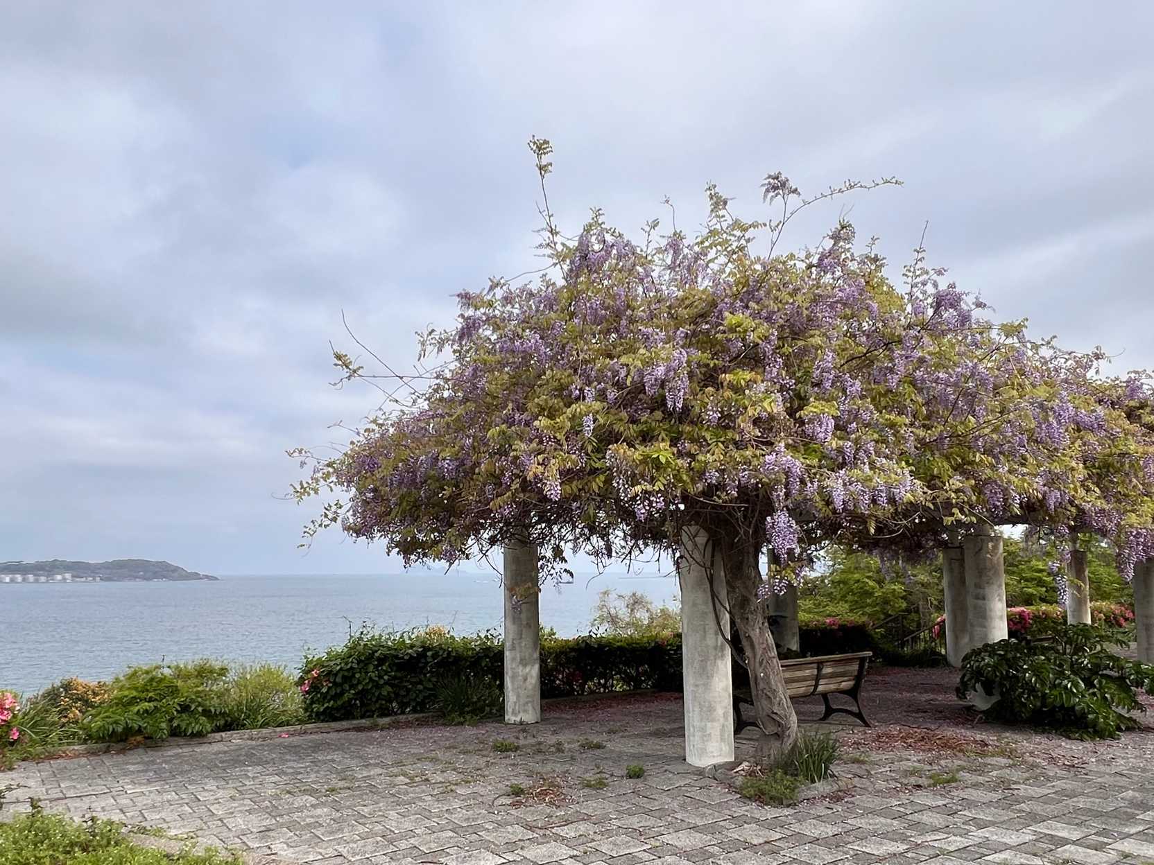 フジは蔓性落葉樹で古来鉢植えや藤棚で鑑賞されてきました。あしかがフラワーパークや北九州の河内藤園が有名です。