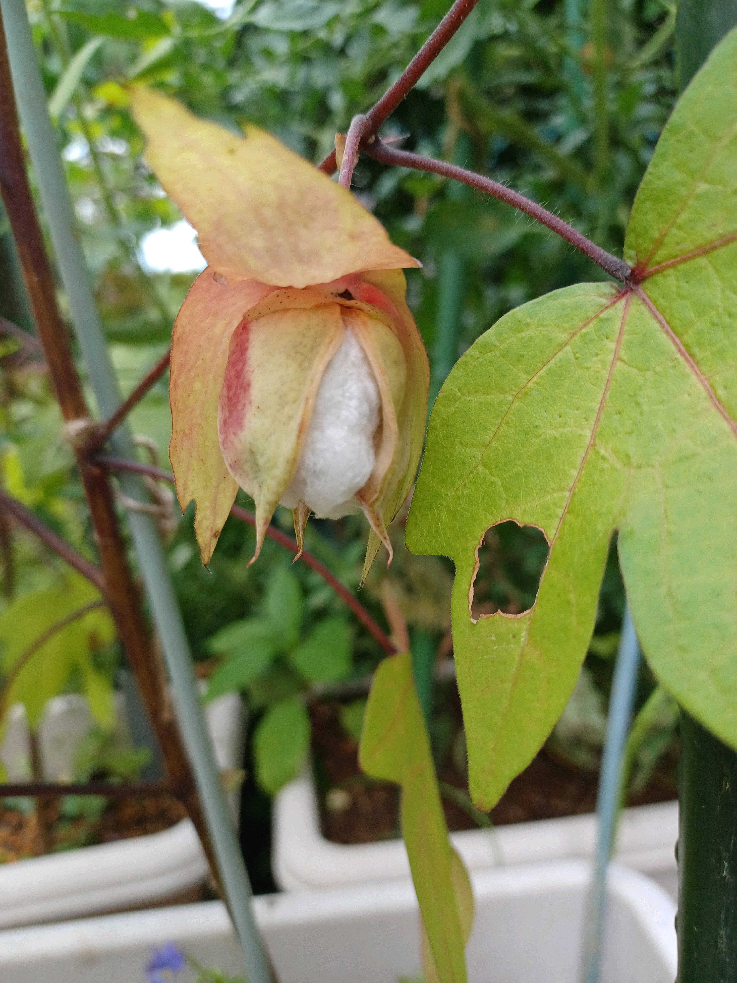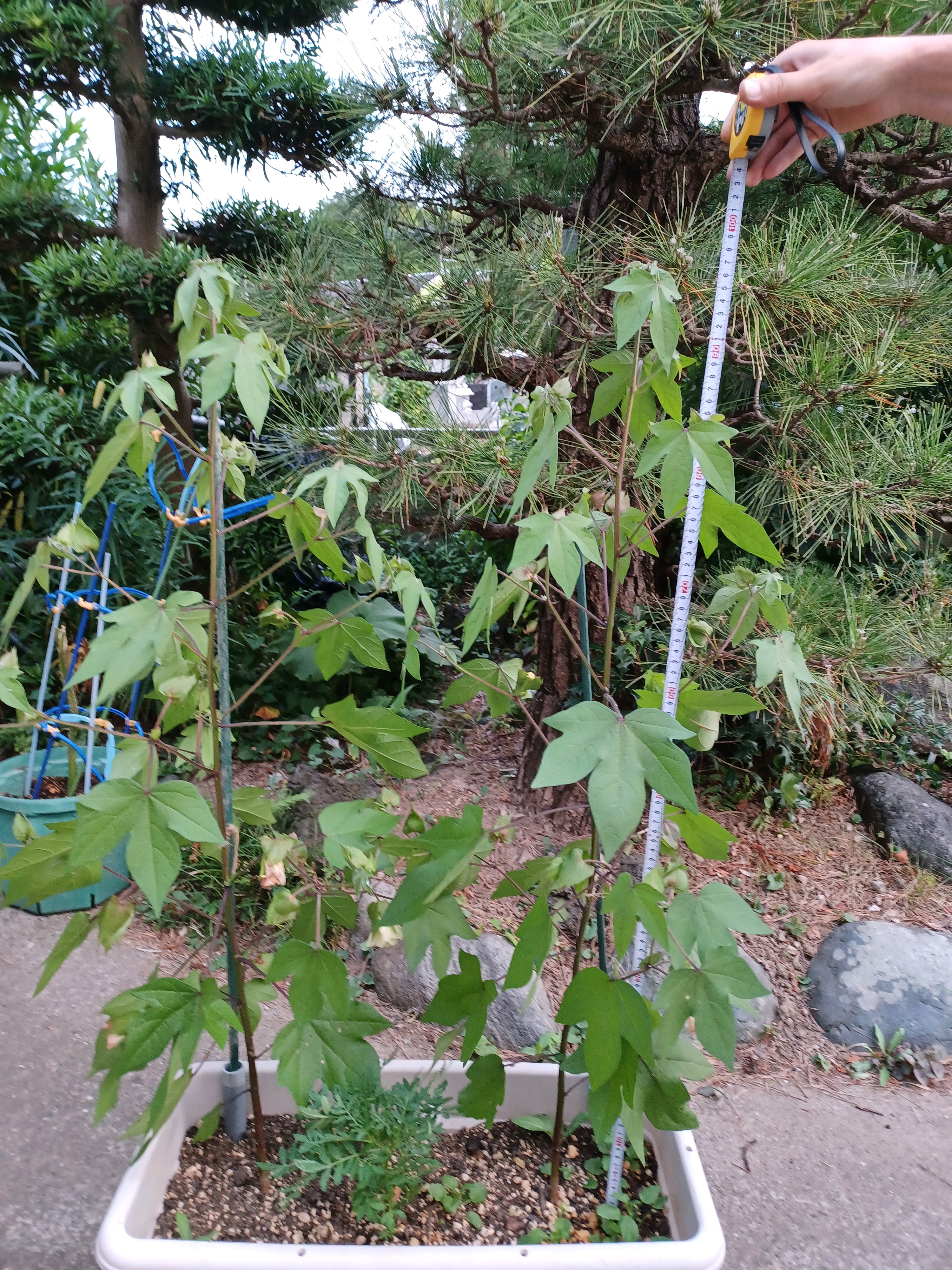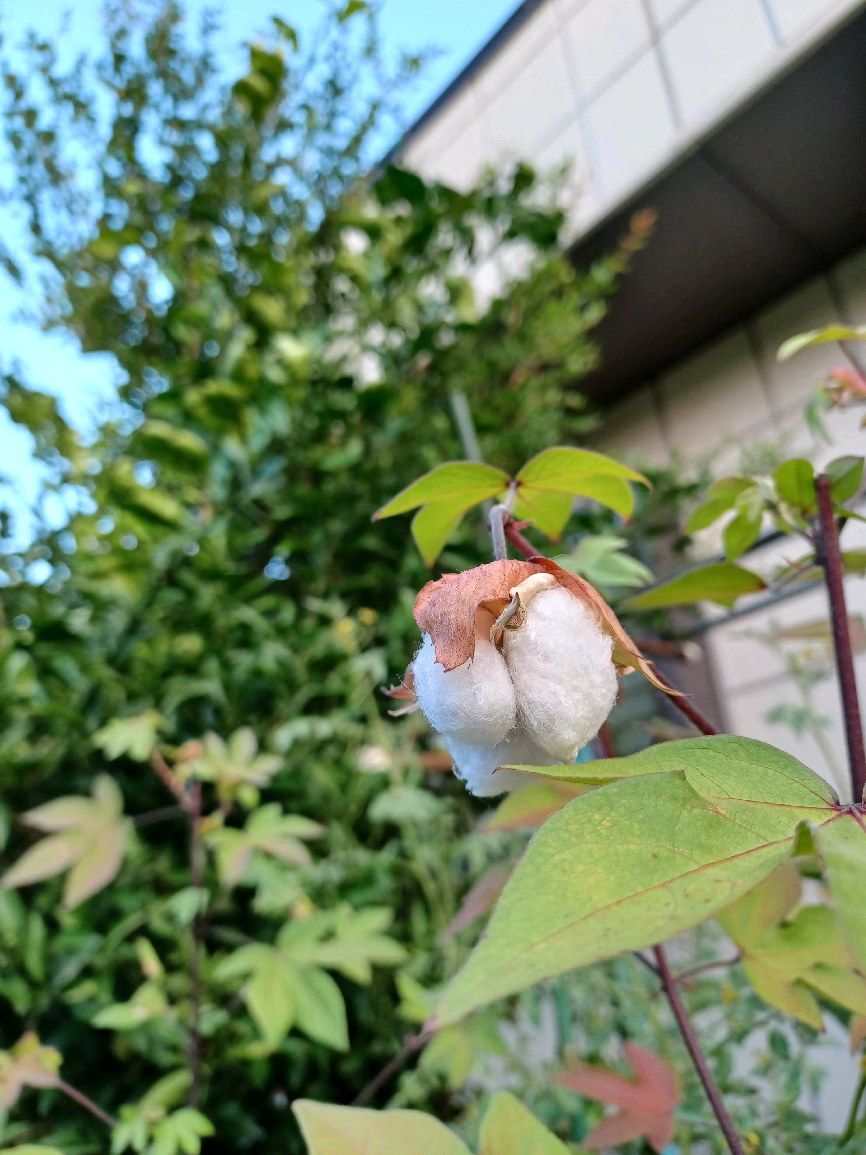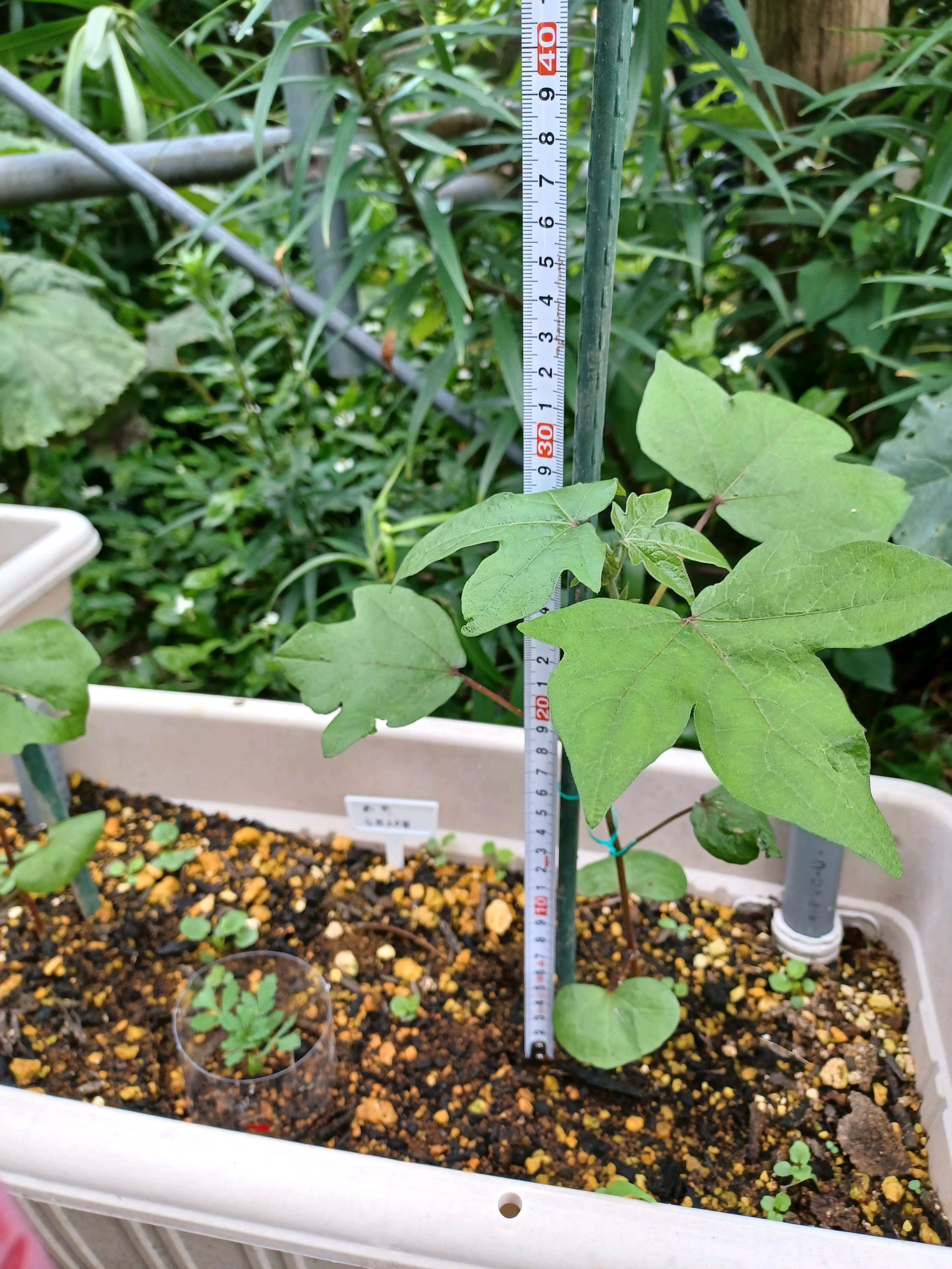 自由研究のネタにしようと、綿の栽培に挑戦中