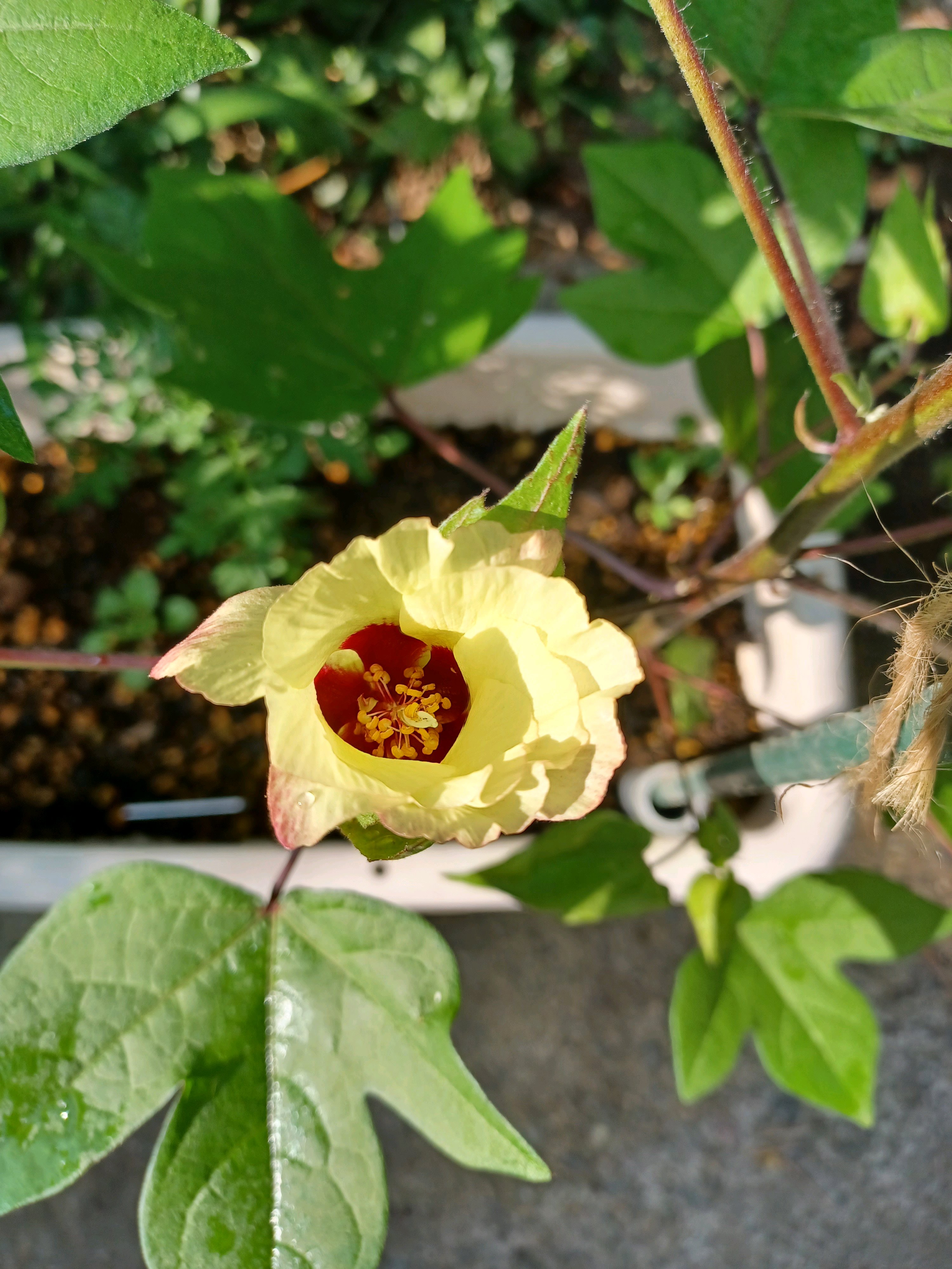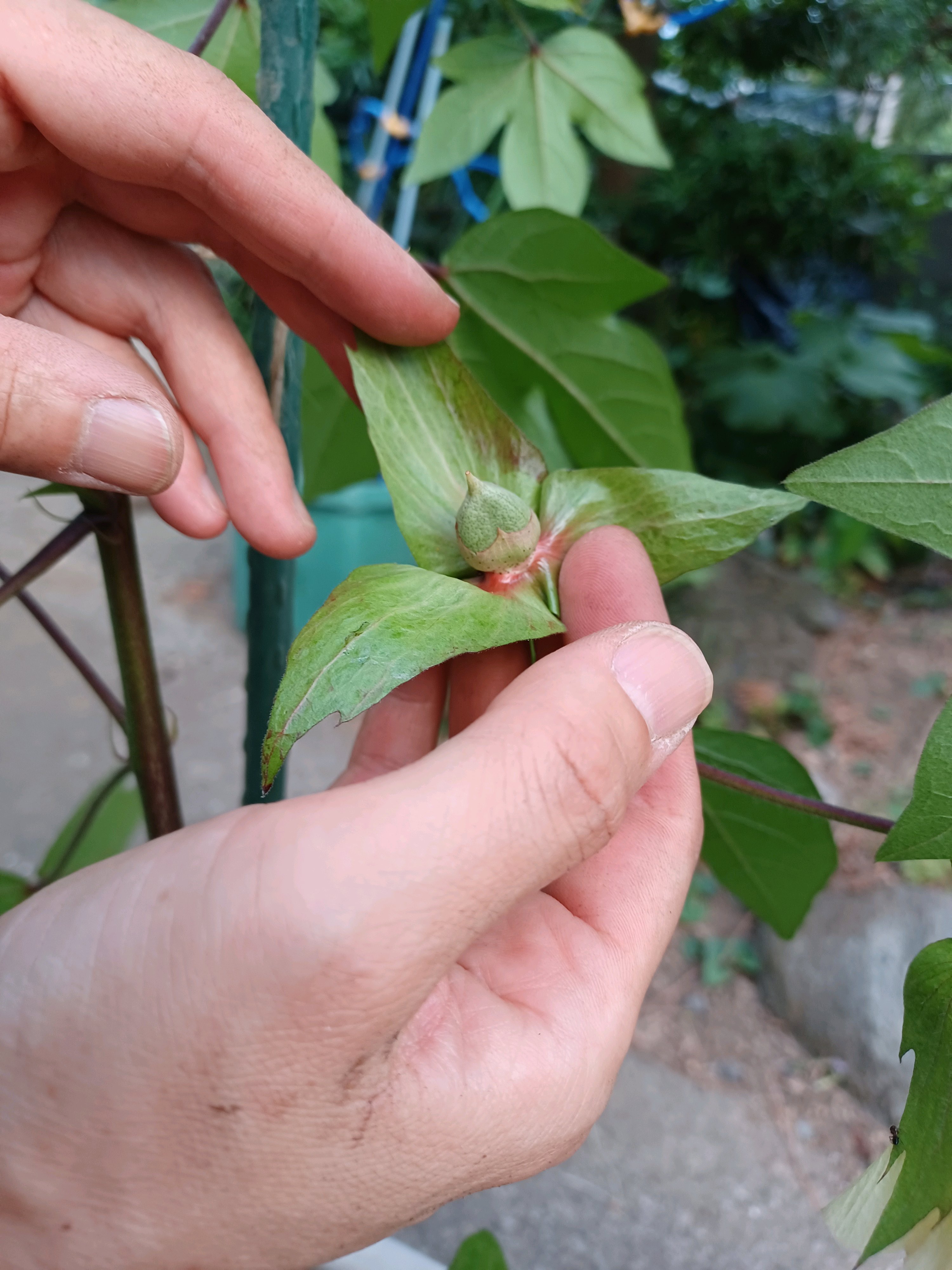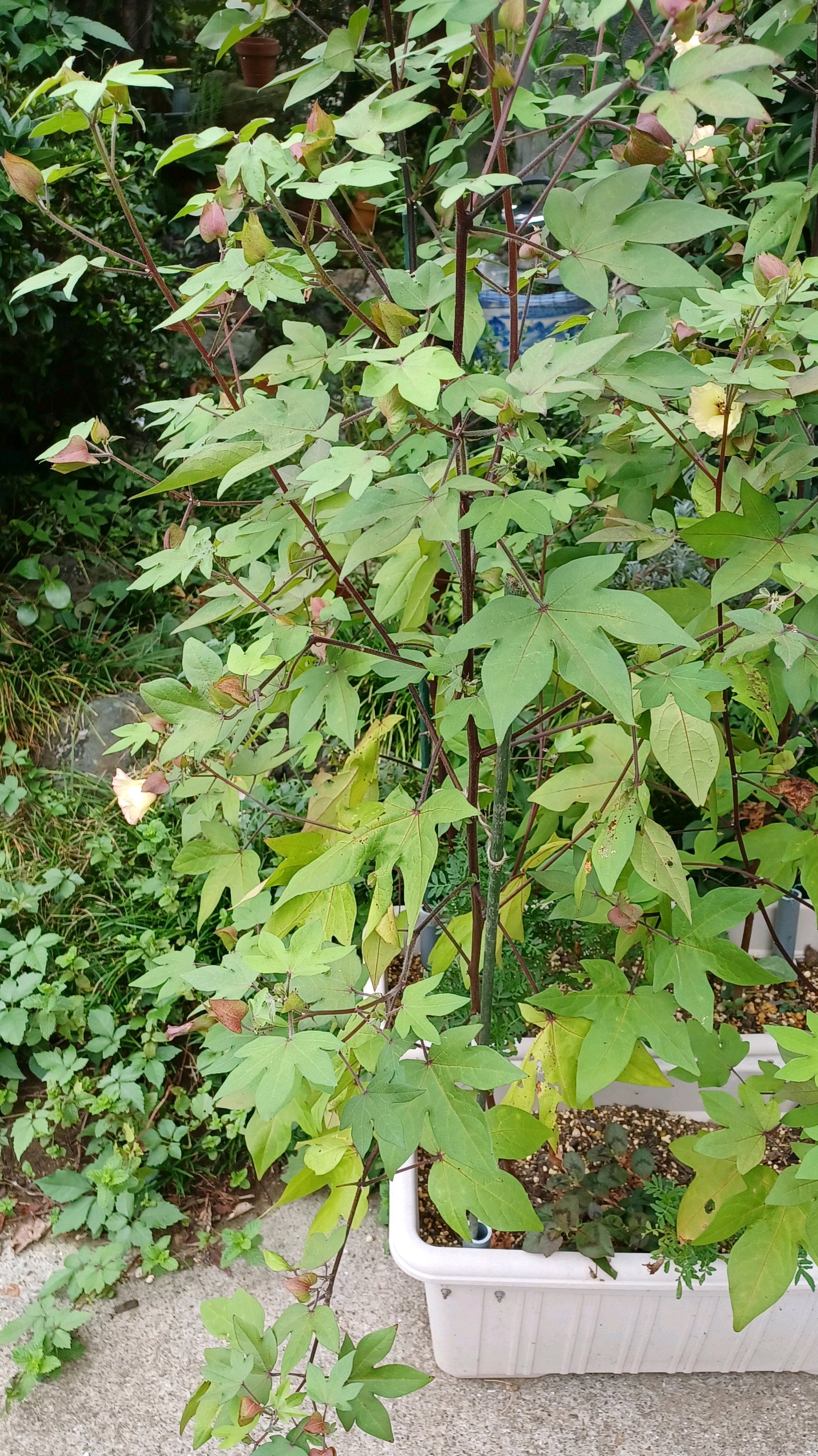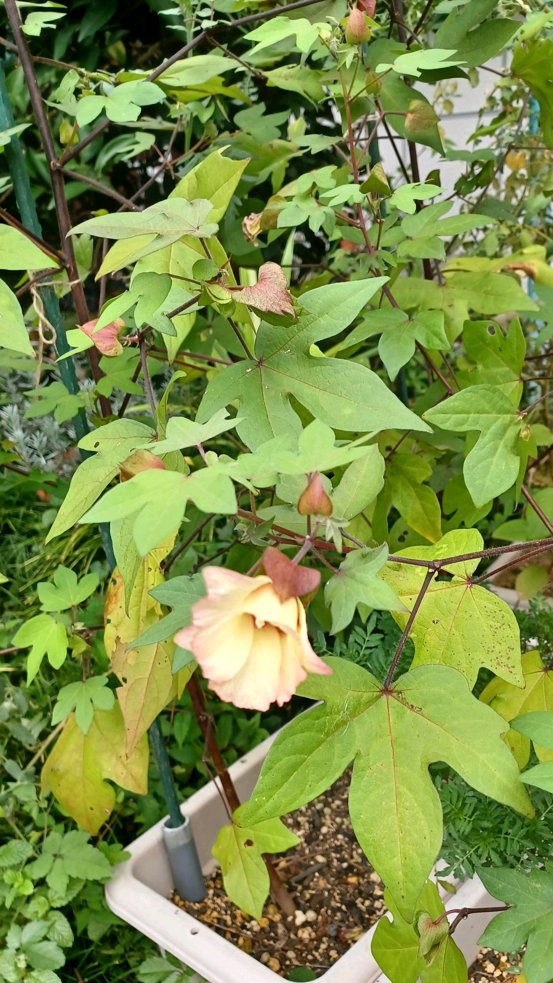 自由研究のネタにしようと、綿の栽培に挑戦中
