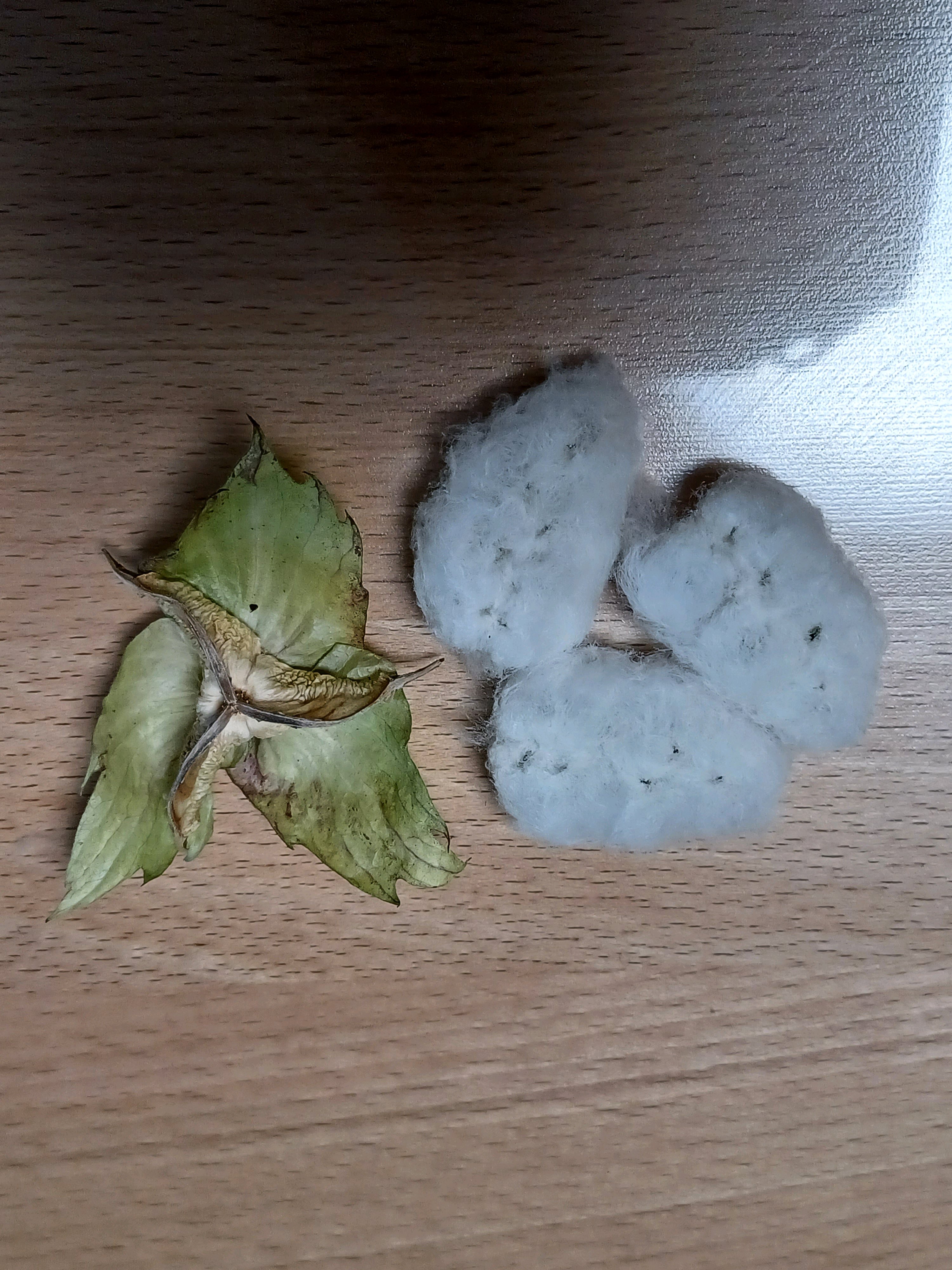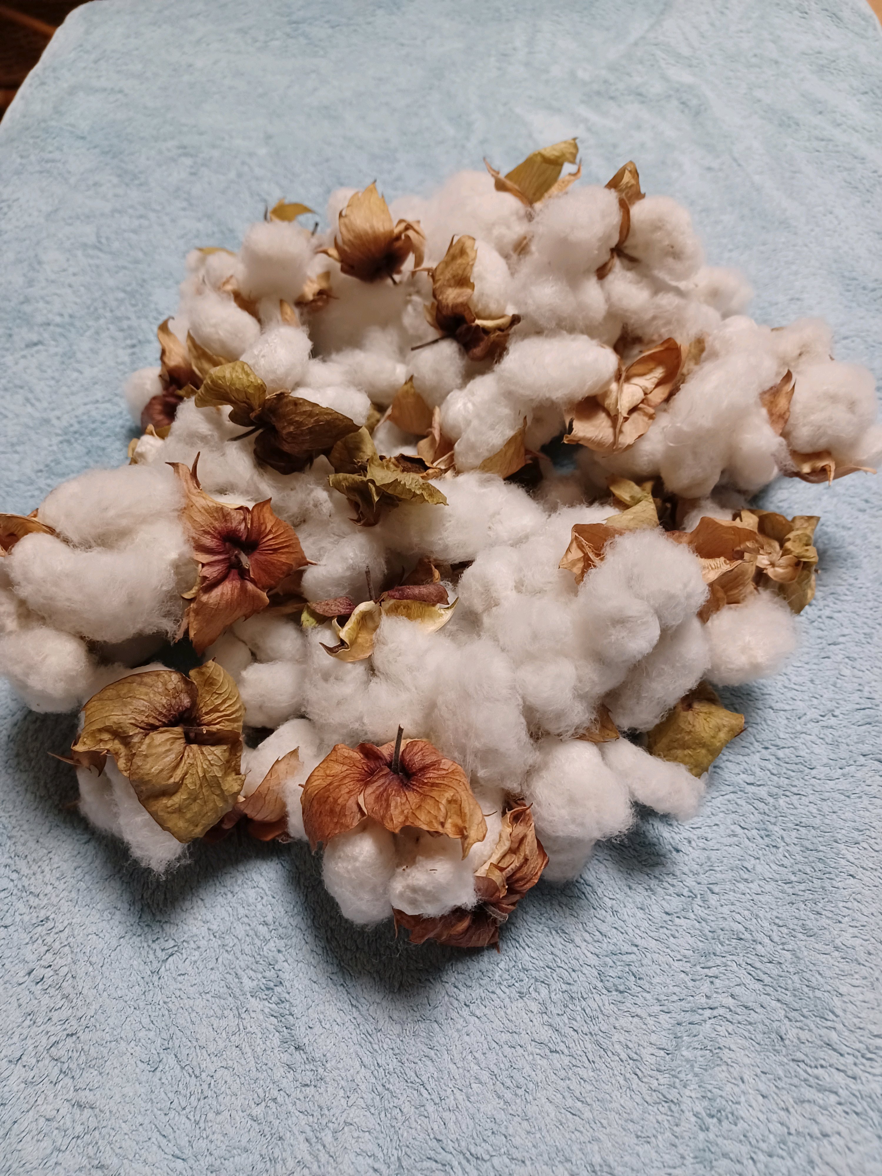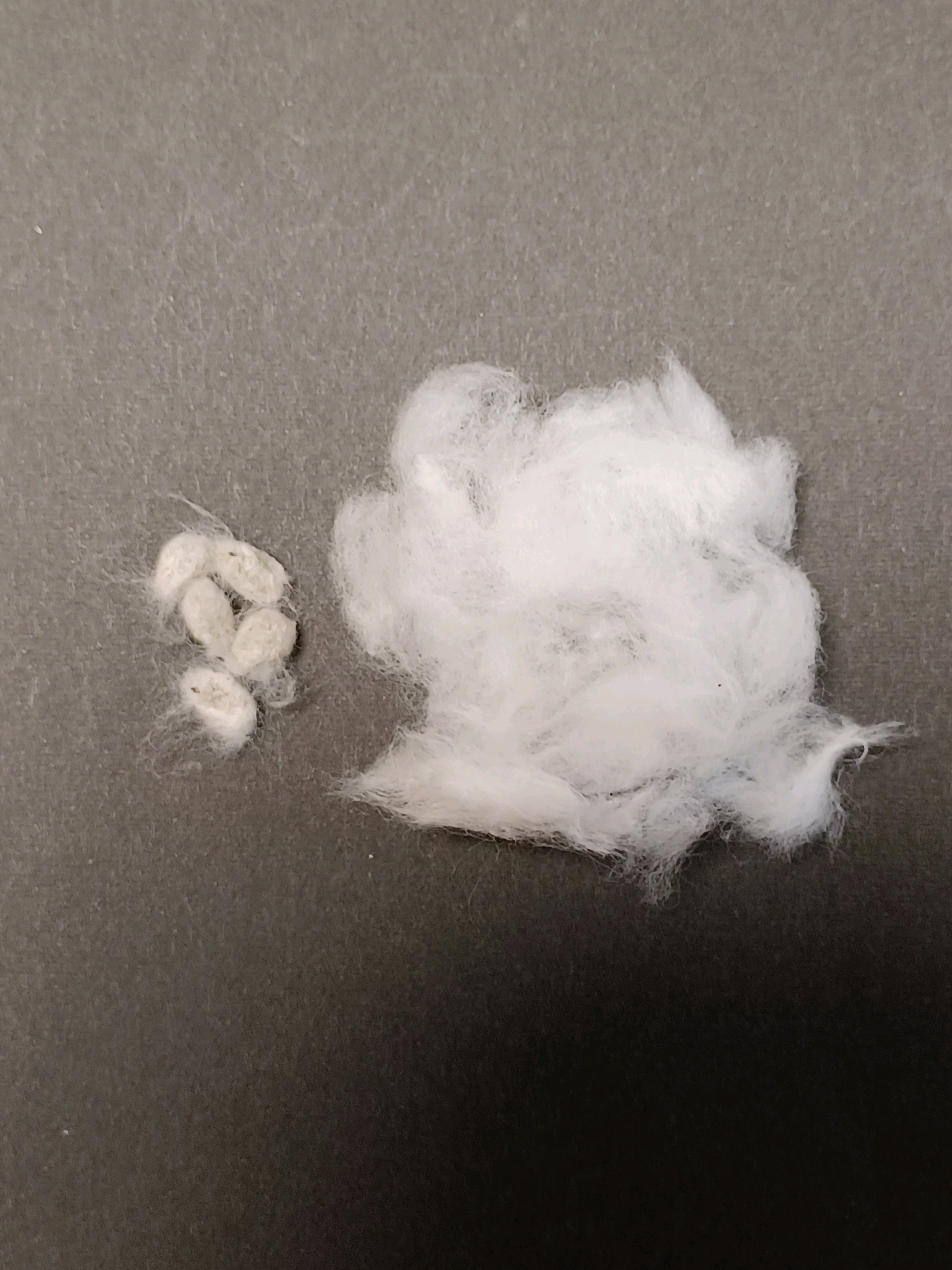 綿と種を分けました。地道に手で分けたので結構大変でした。種の表皮が入ってしまったところもあります😖💦