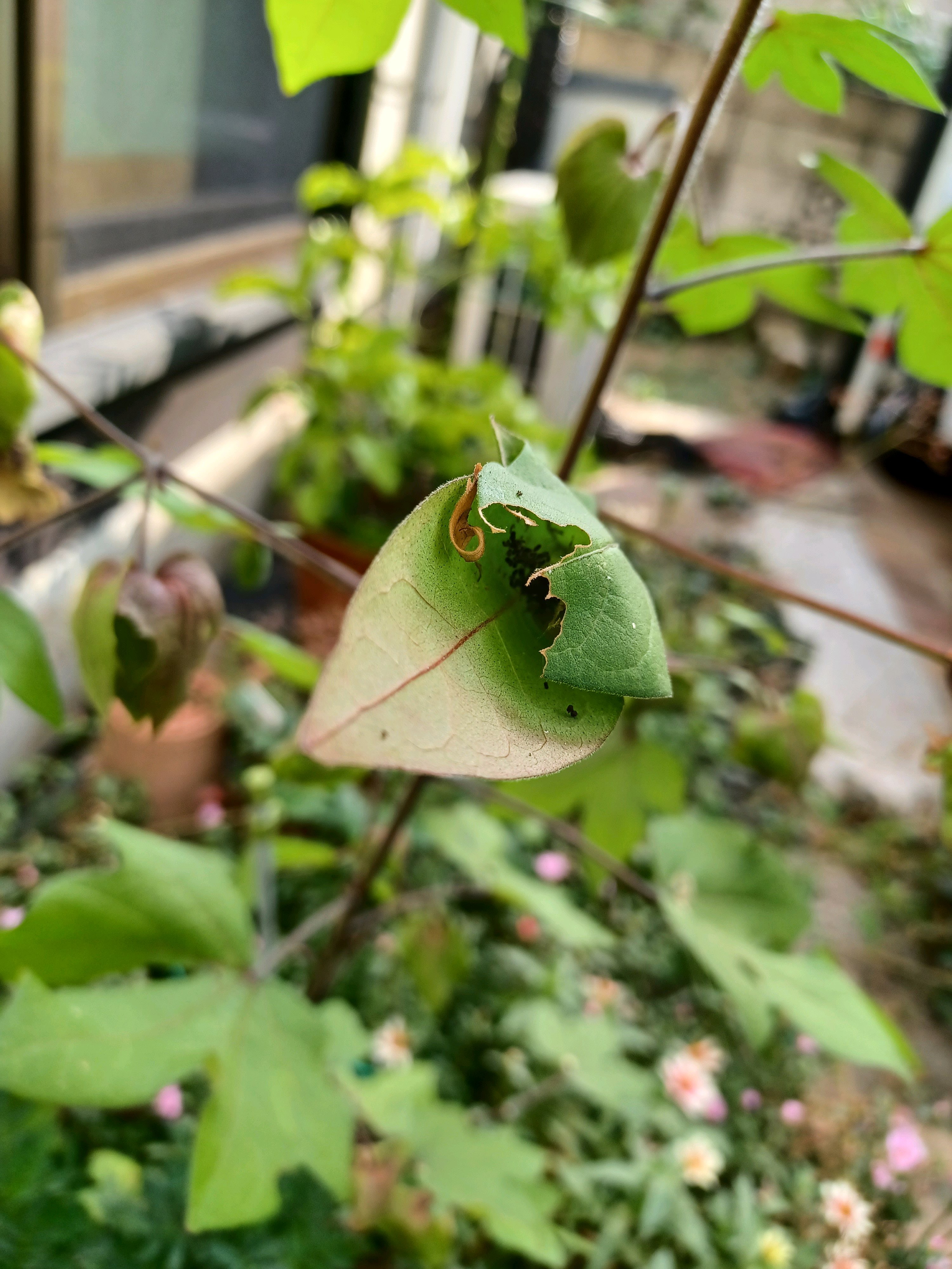 ほぼ病虫害はなかったけど、器用に葉っぱを丸めて住んでる子がちらほら。