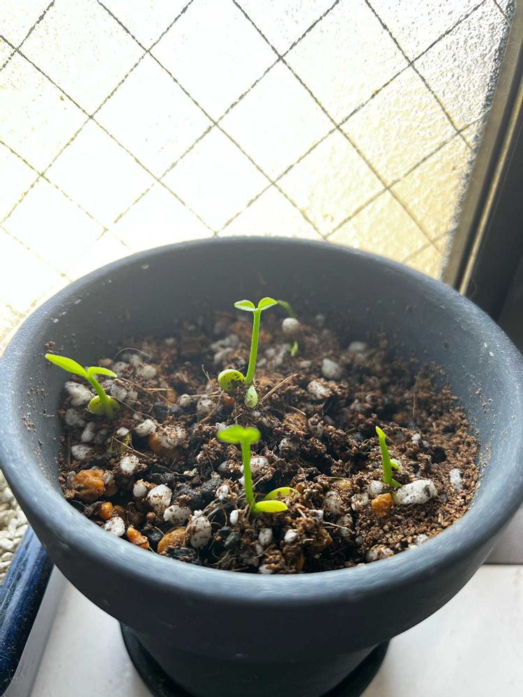 採取した種の薄皮を剥いて濡らしたキッチンペーパーで発根させた後に土に植え、発芽しました。