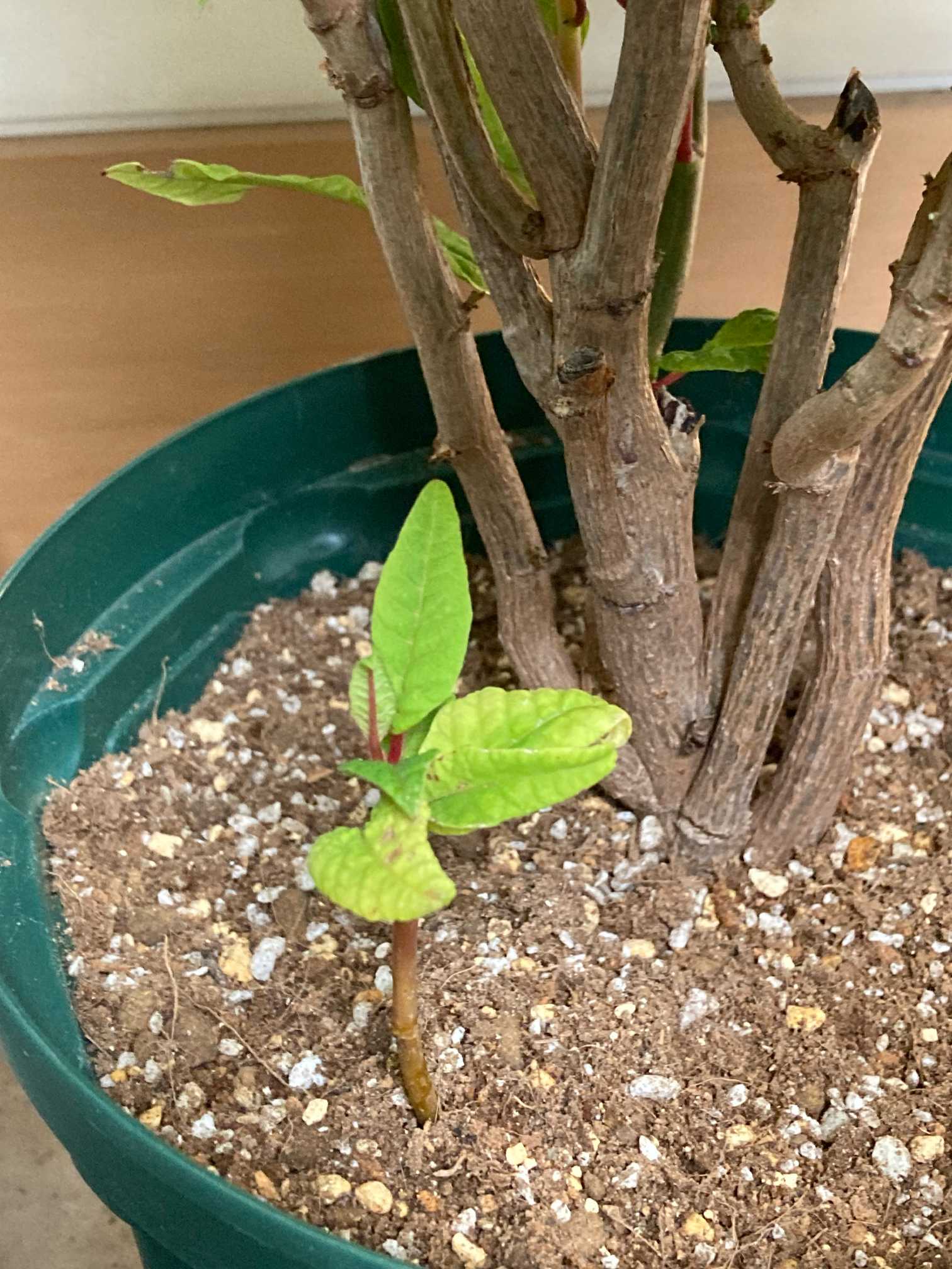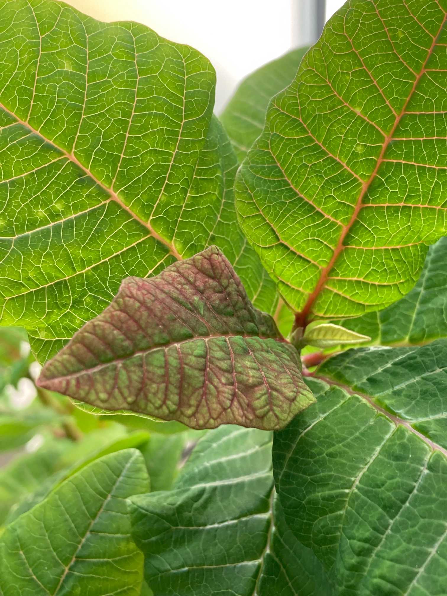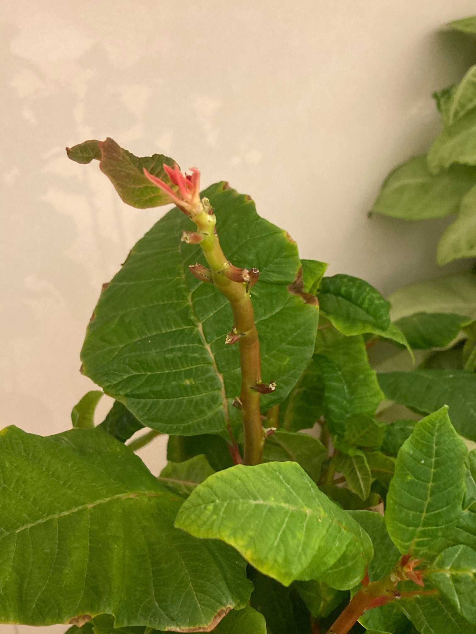 赤い葉(苞)がちらほら出てきました😊