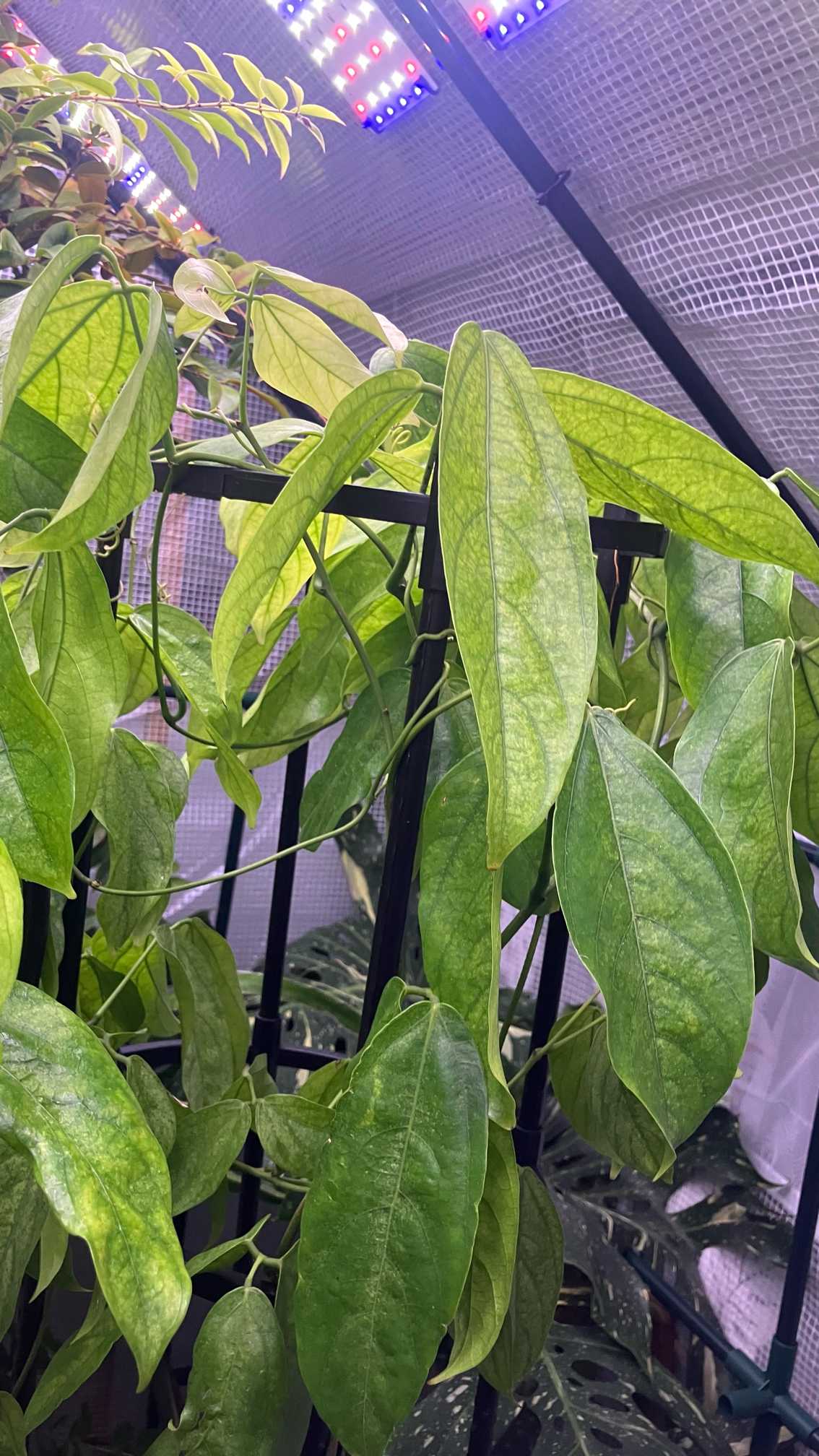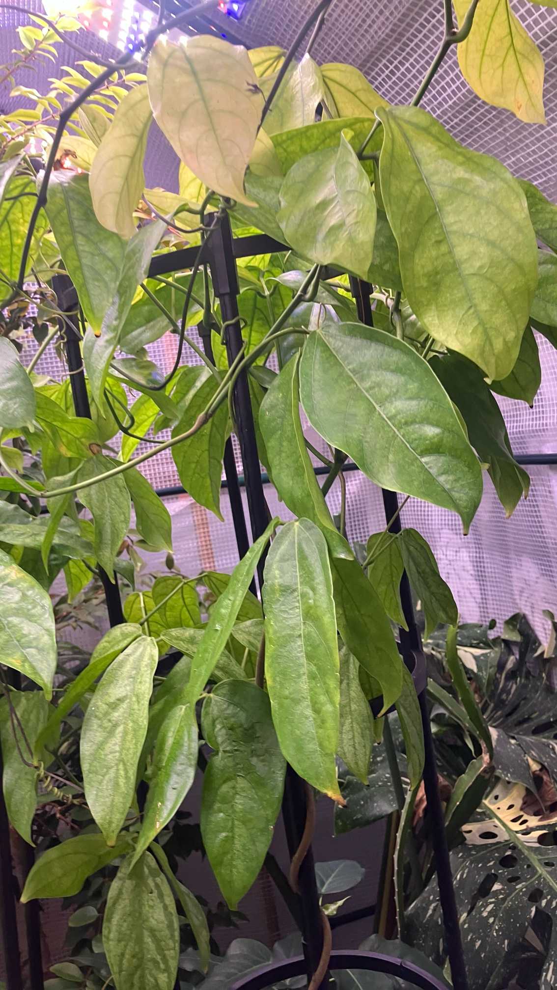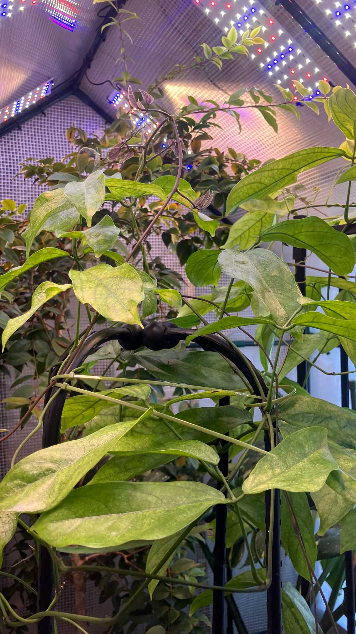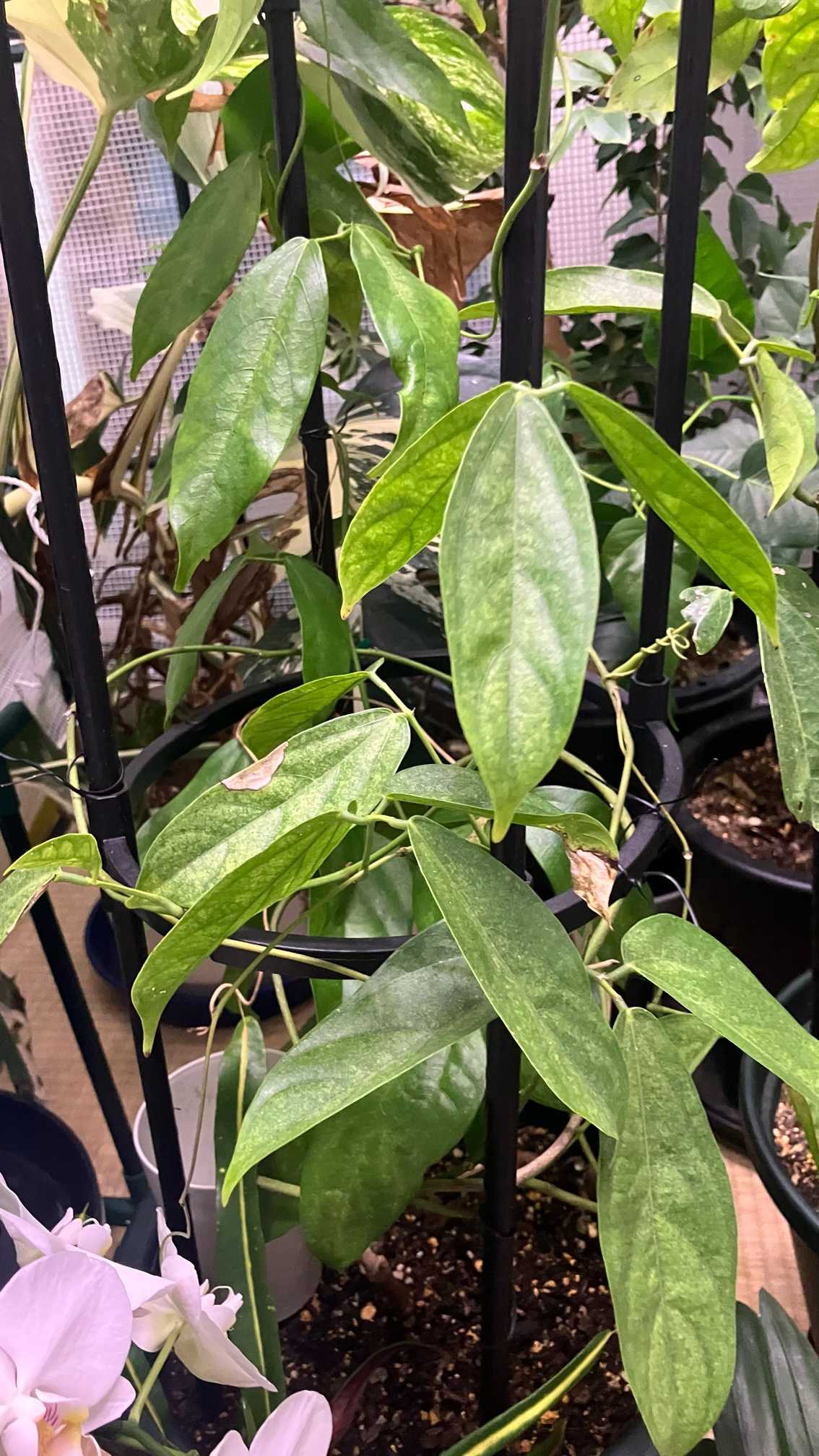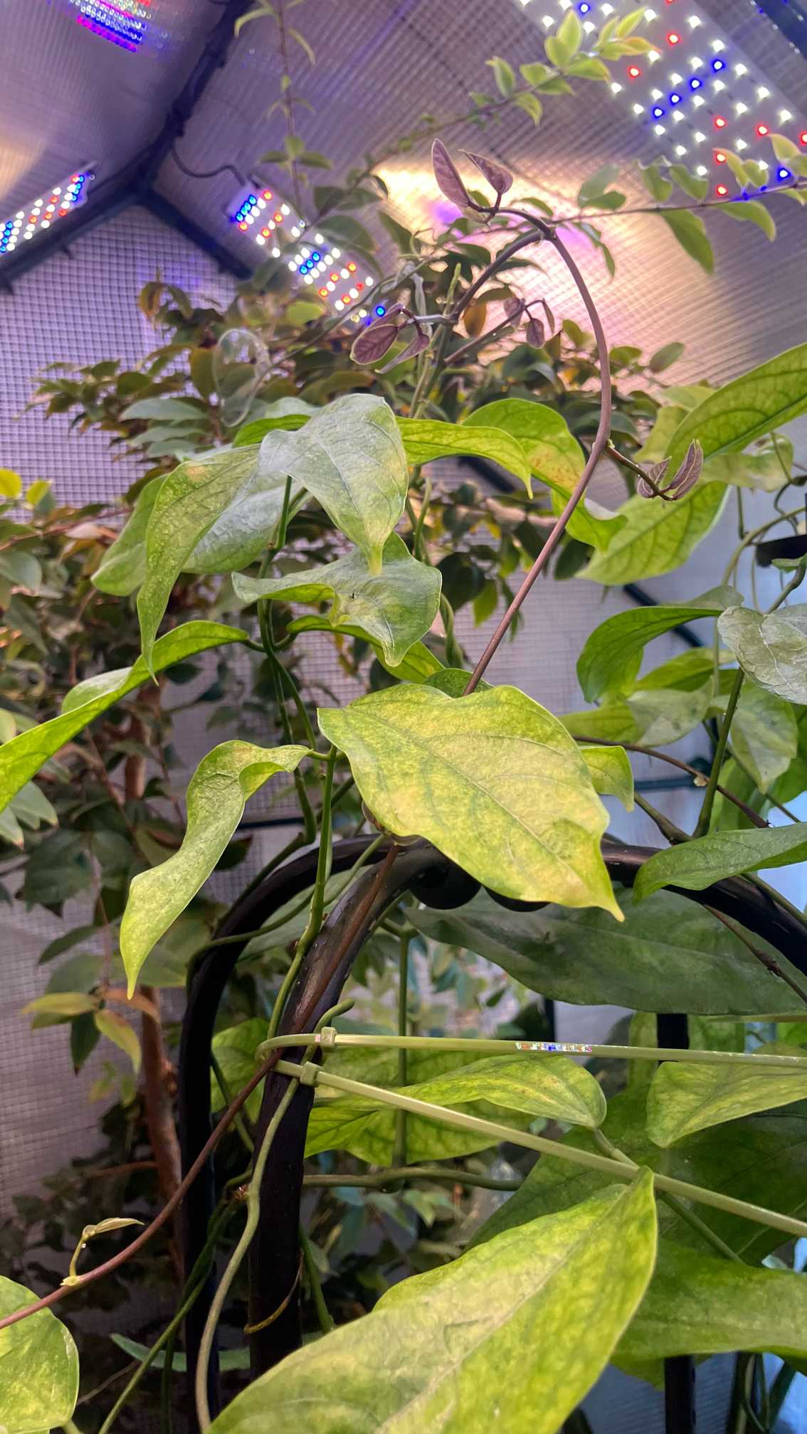 植え替えストレスと根っこの傷による弱りが多いヒスイカズラ。