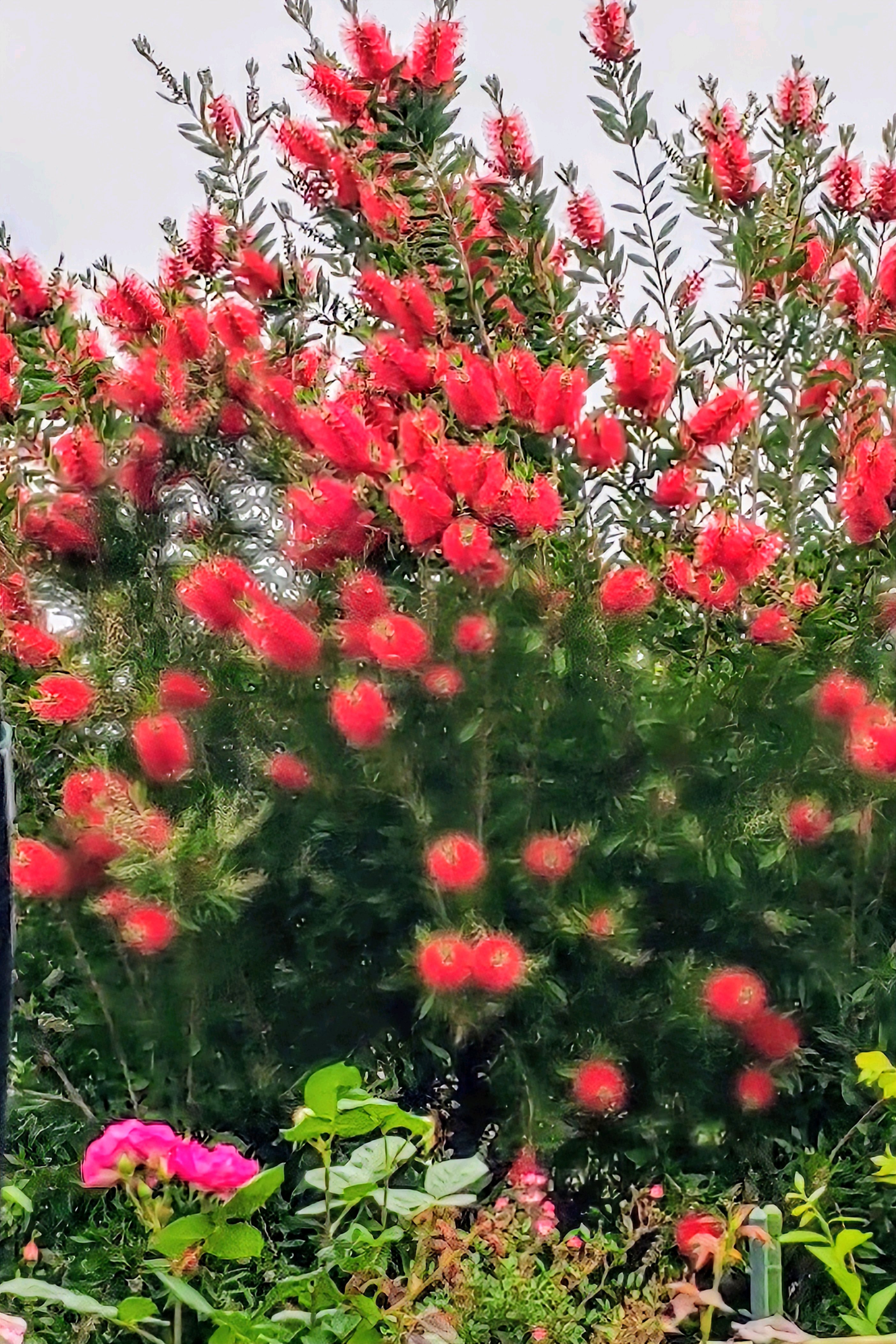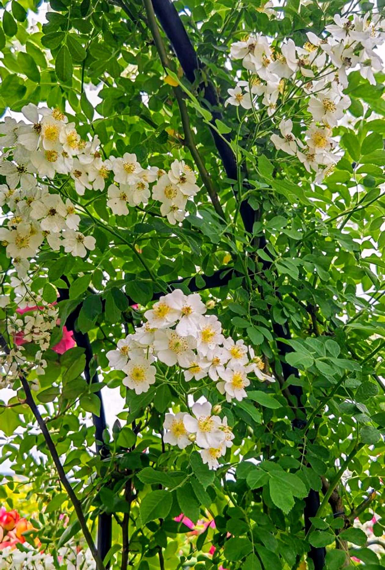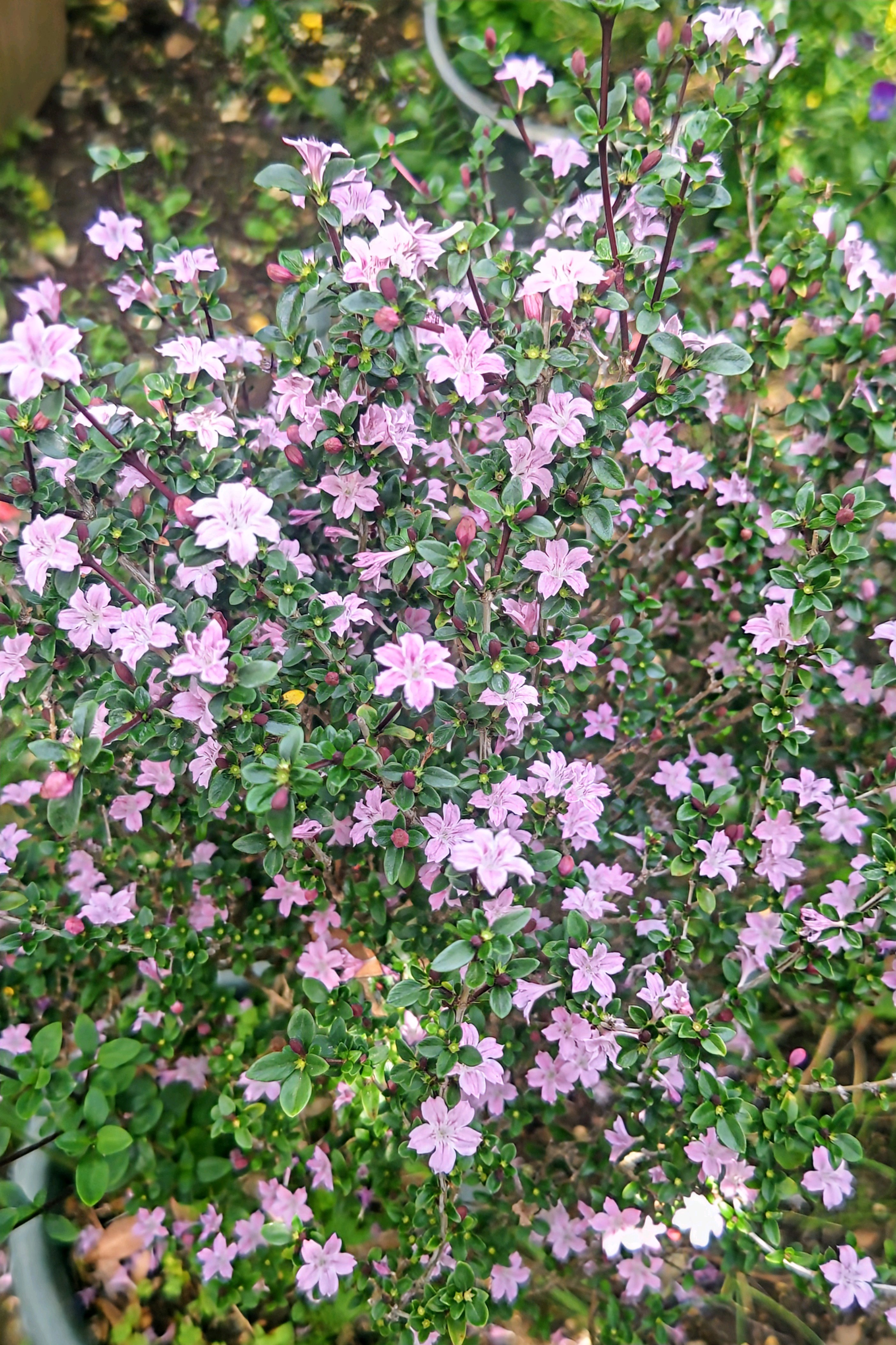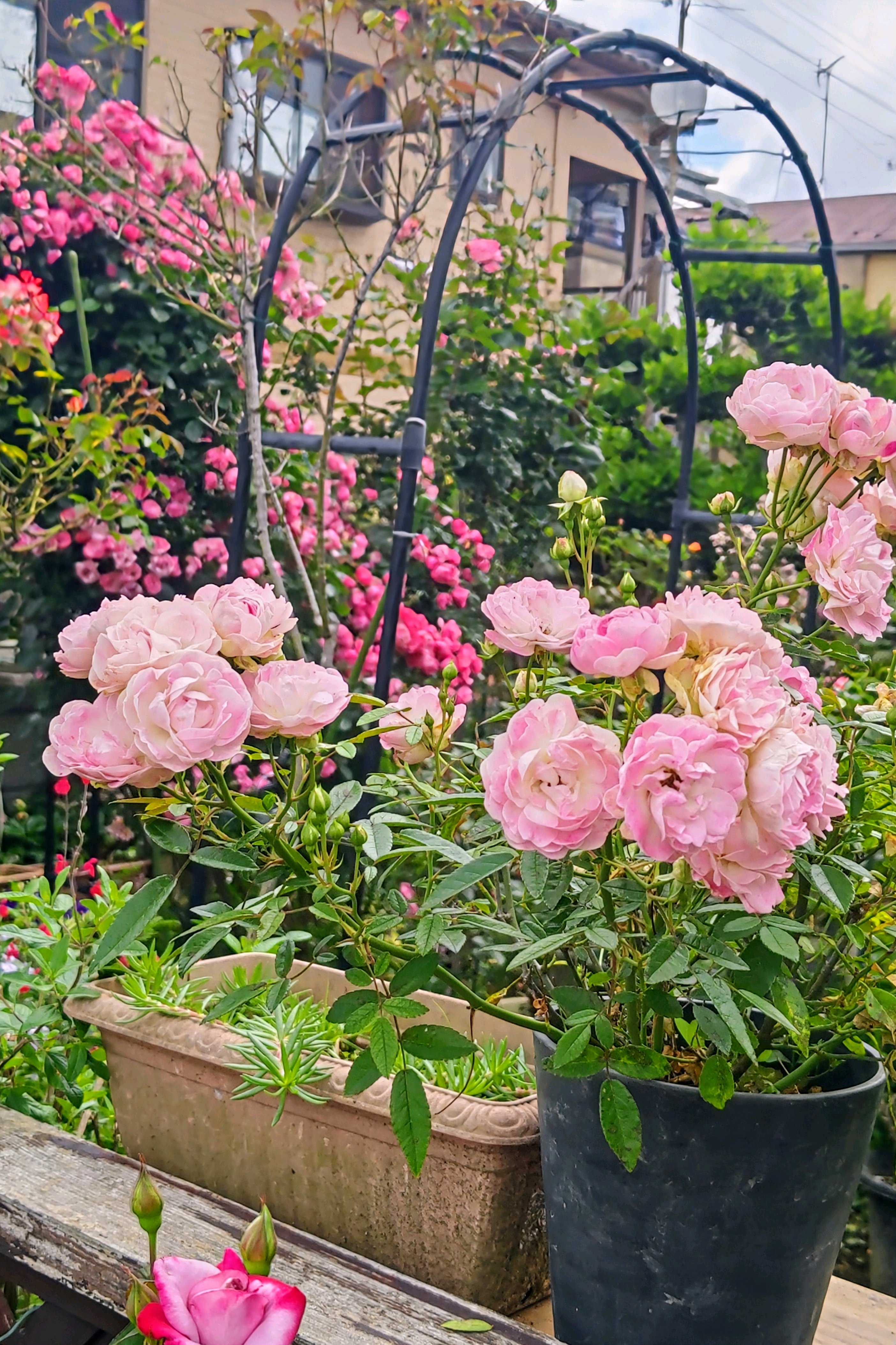 薔薇の足元には、可憐なピンクハクチョウゲ。