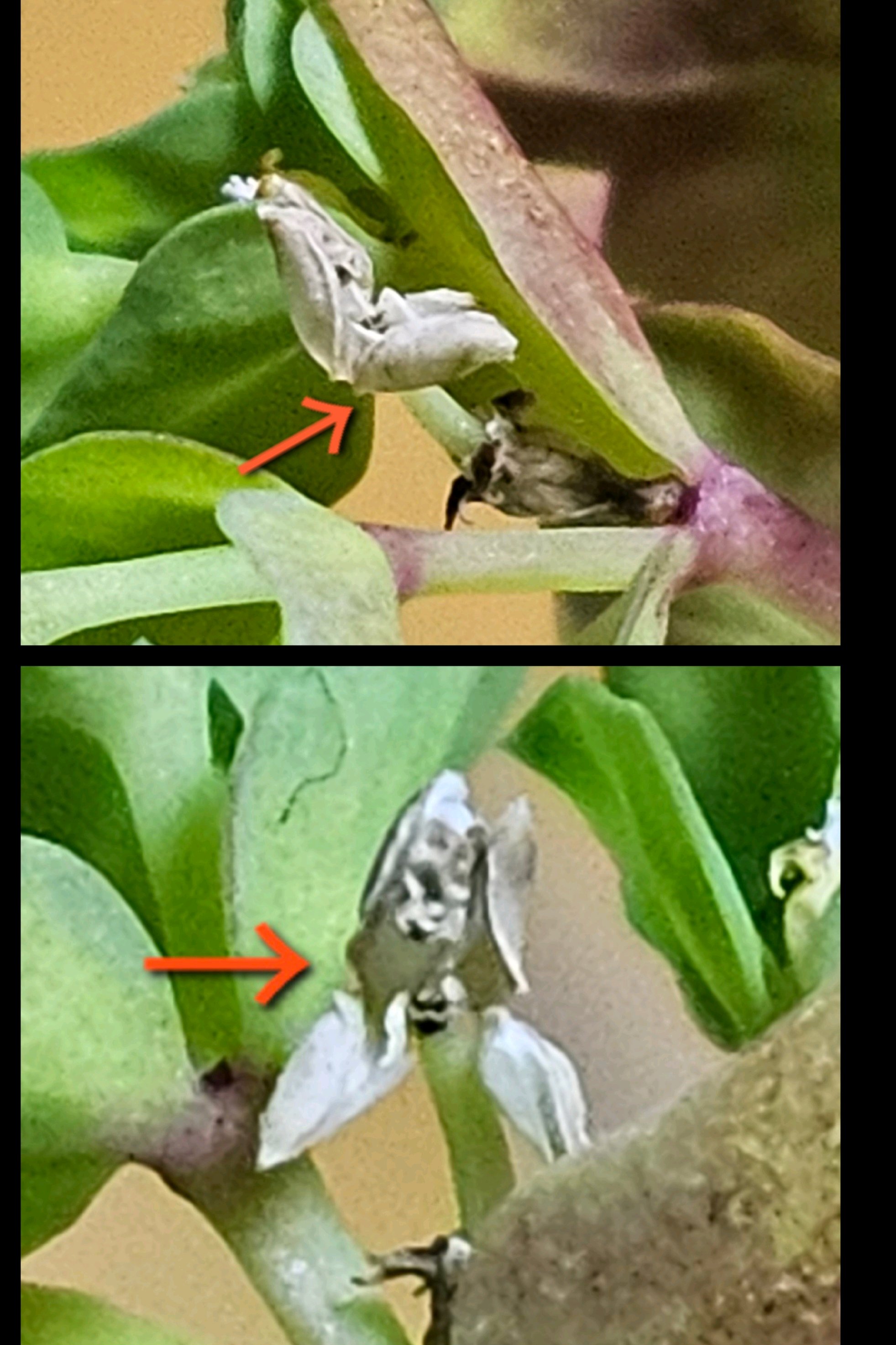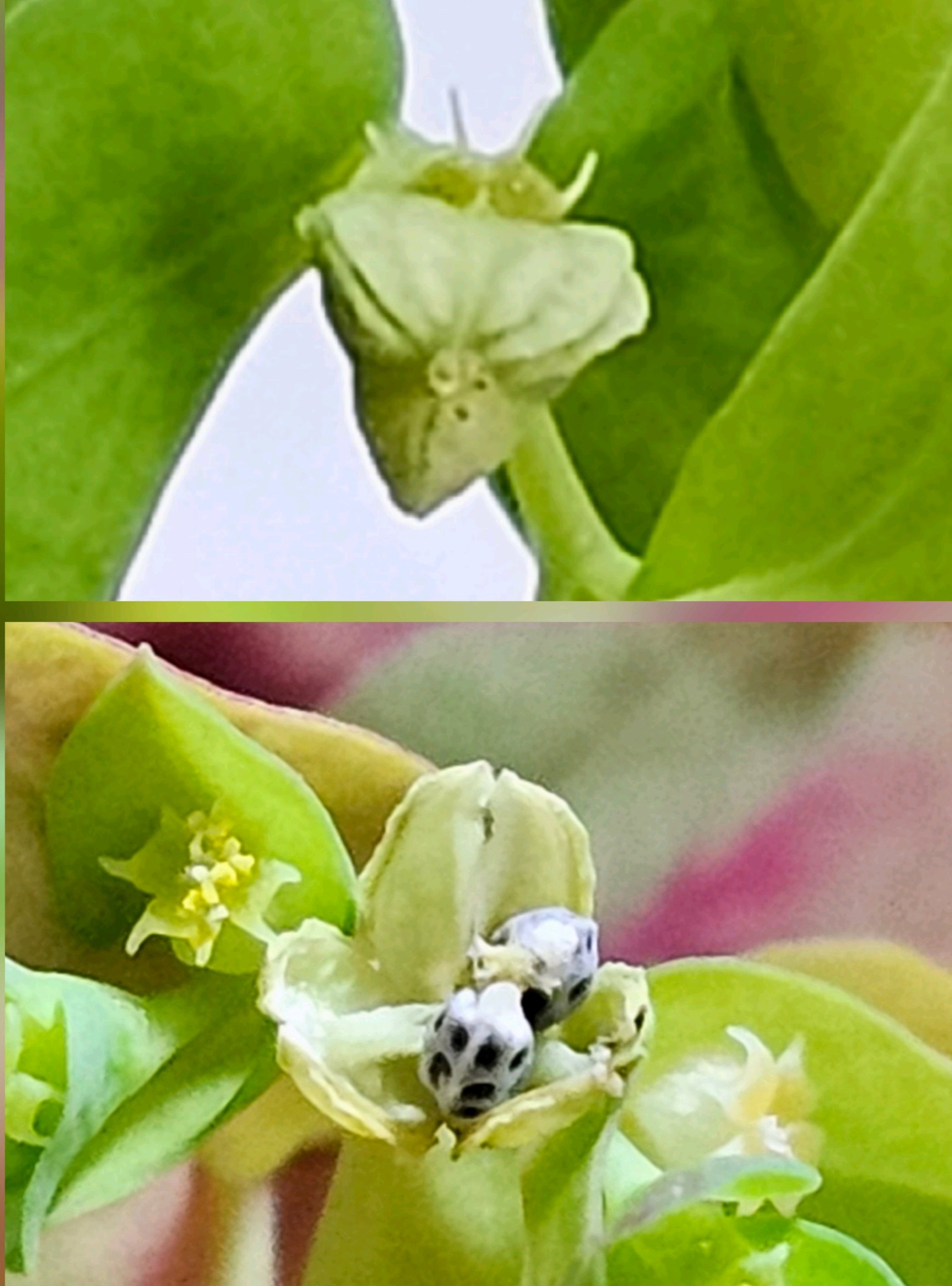 観察開始から14時間30分後には垂れ下がっていた蒴果は持ち上がっており 蒴果は3裂し種子が2つ (あるいは3つ?..) 確認できました