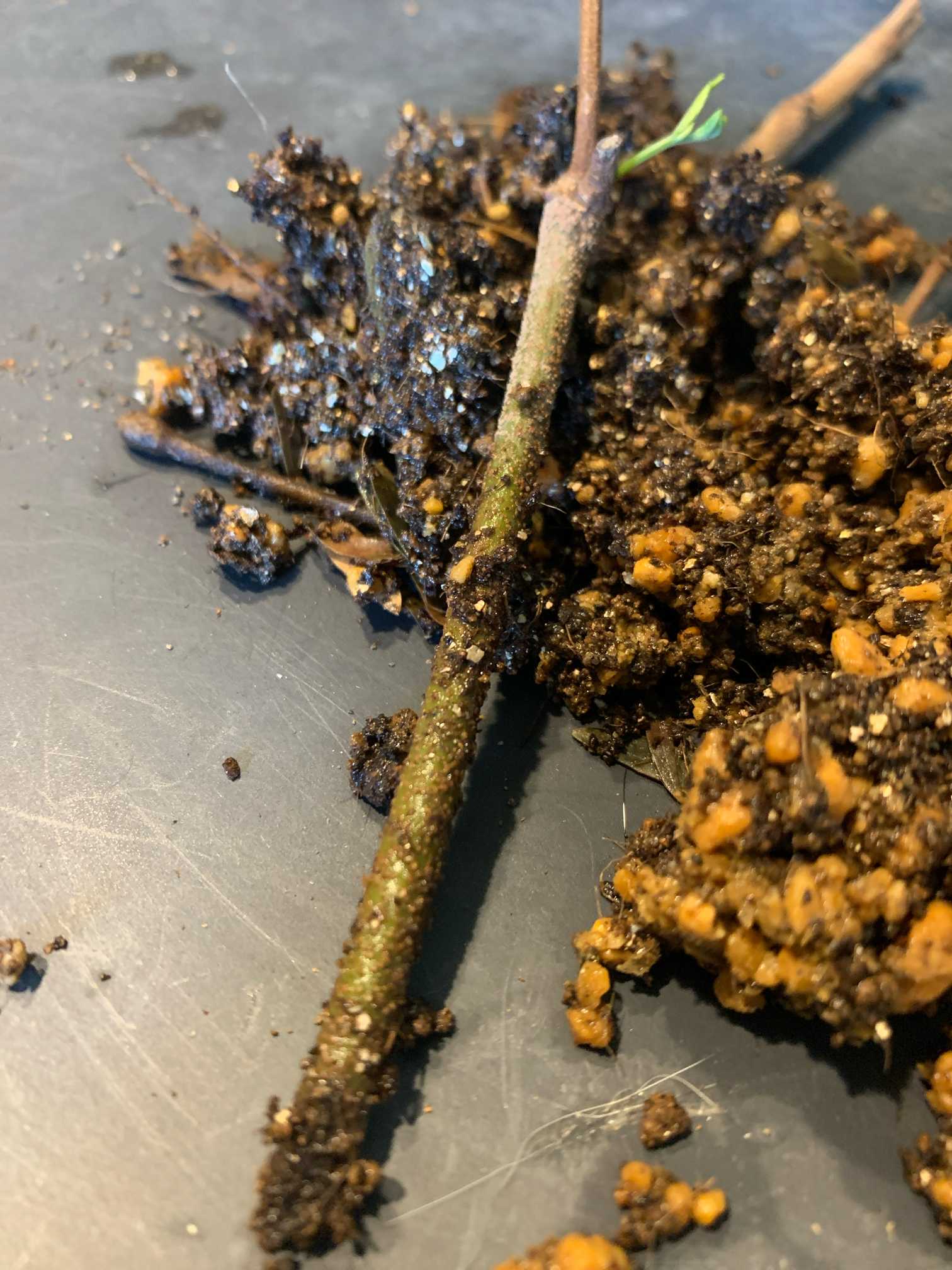 😥つい…もうダメかな?と抜こうとしたら抵抗があったので掘ってみると…毛細血管のような根?