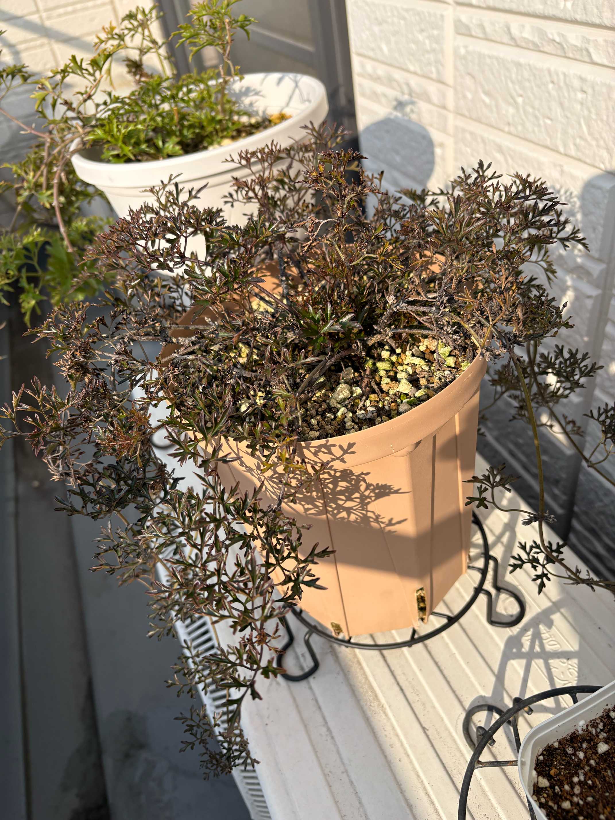ジョー、枯れた枝をカット✂️して肥料もあげました。(根っこが少なそうなので、少し控えめに)