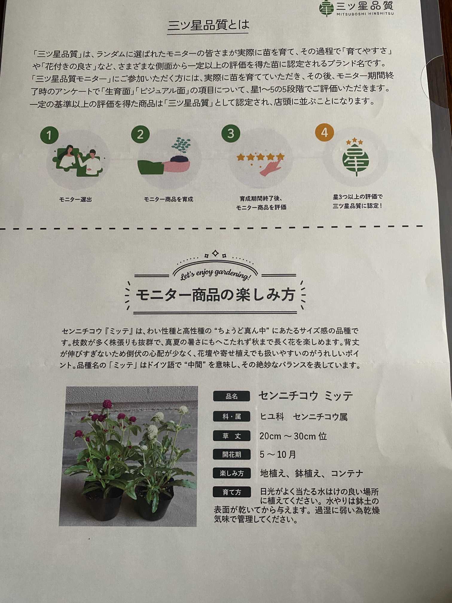 三つ星品質センニチコウミッテモニター