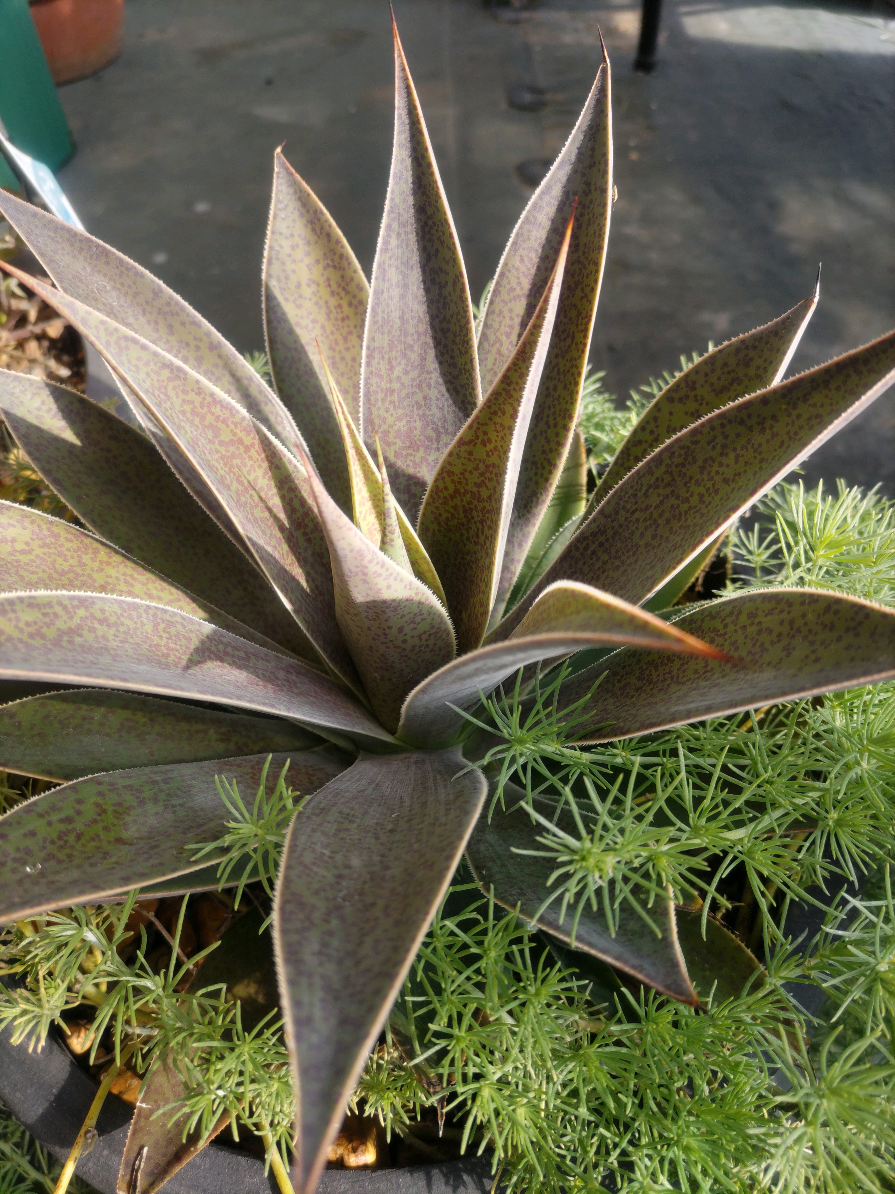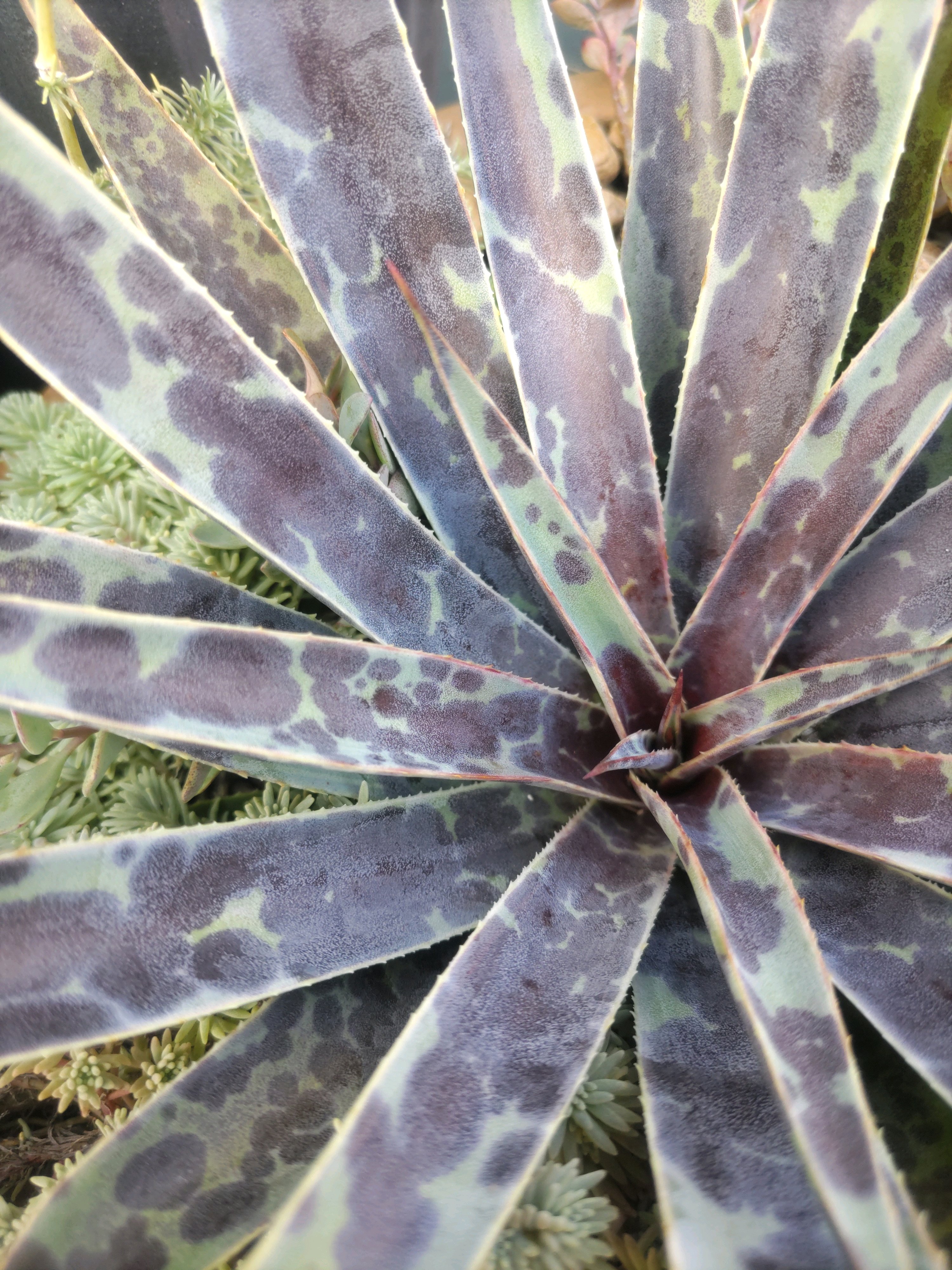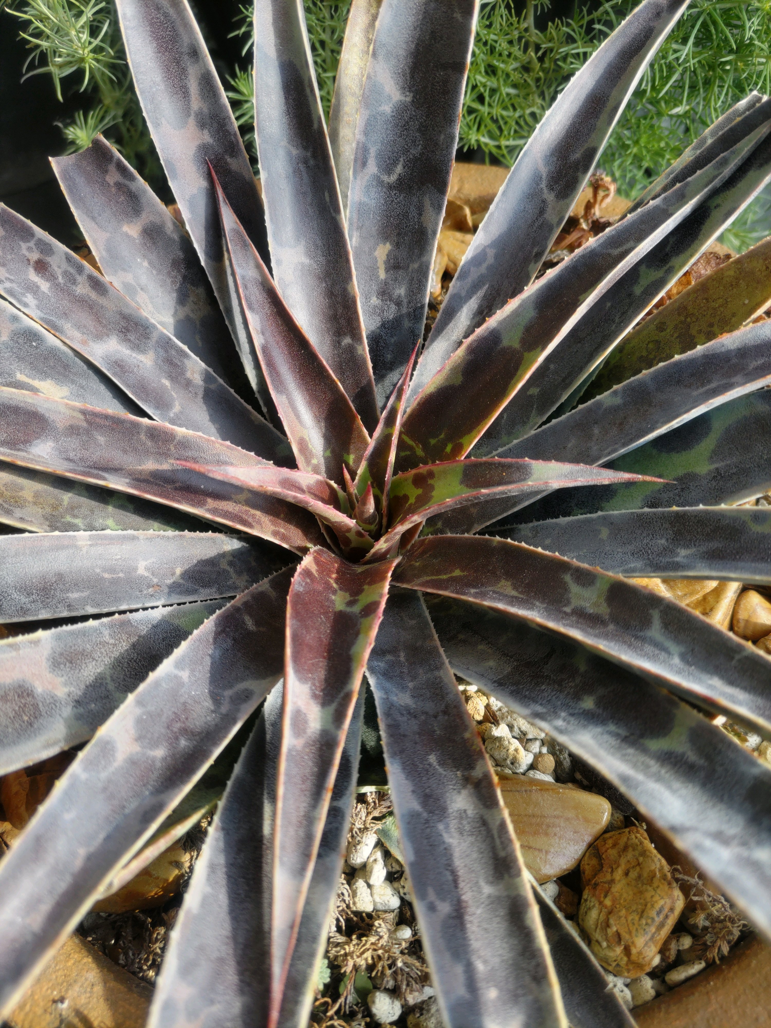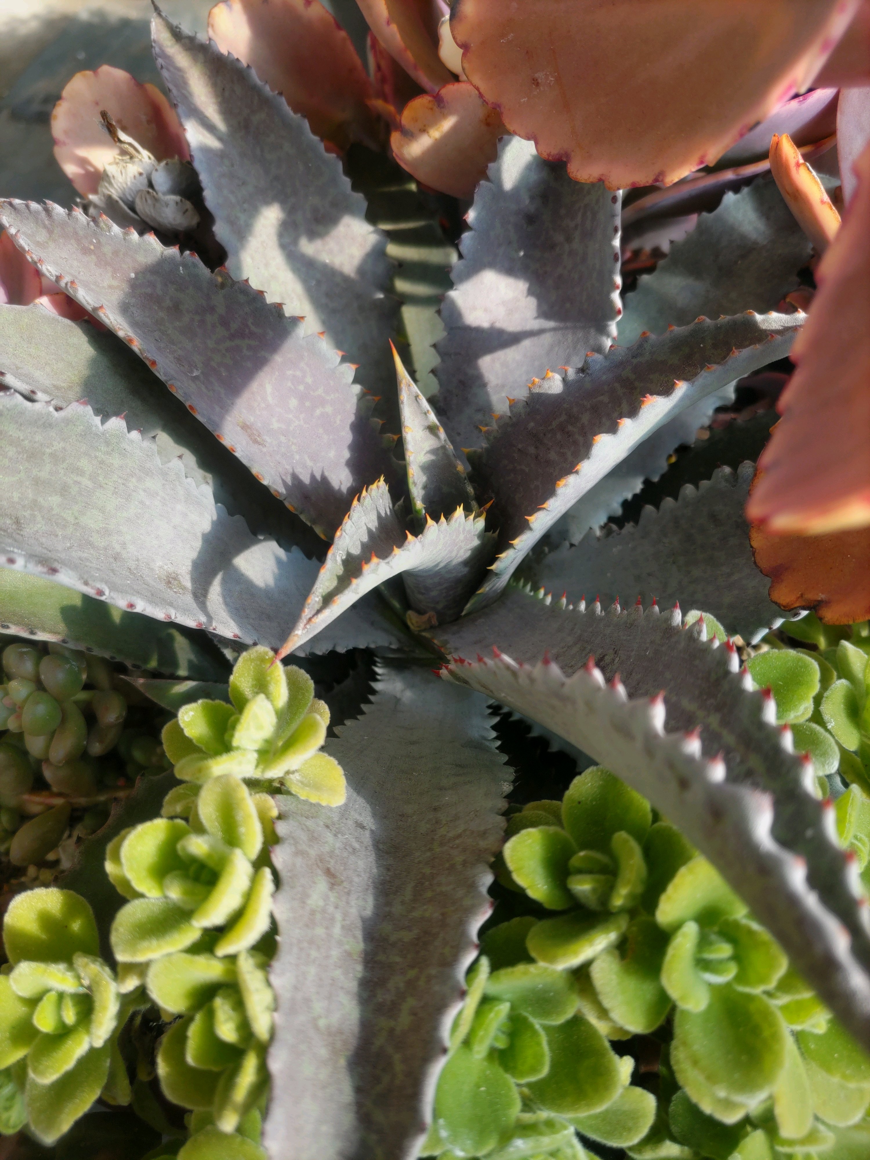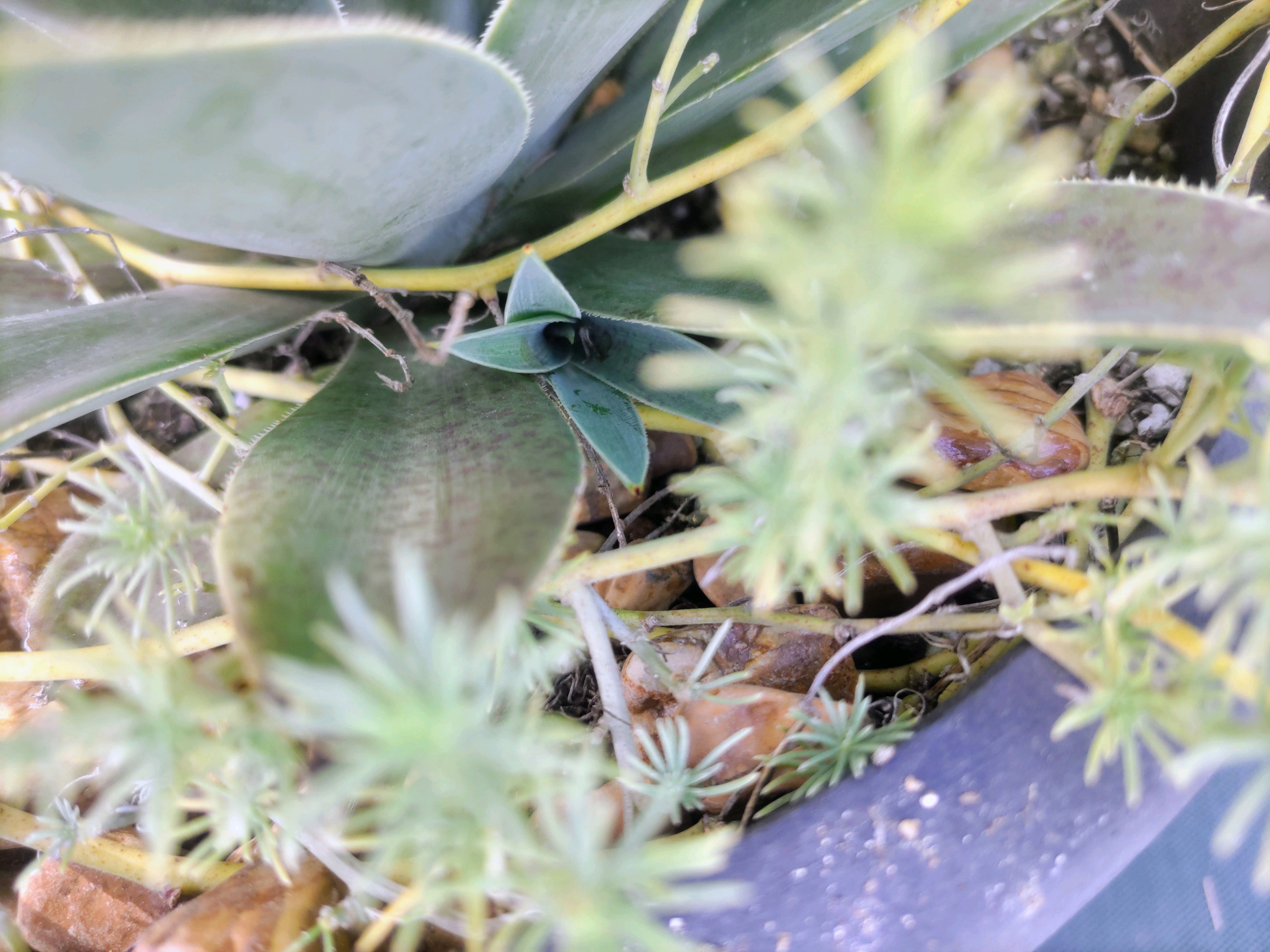 花の培養土+多肉の土半々。水やりはほぼ雨頼みです。