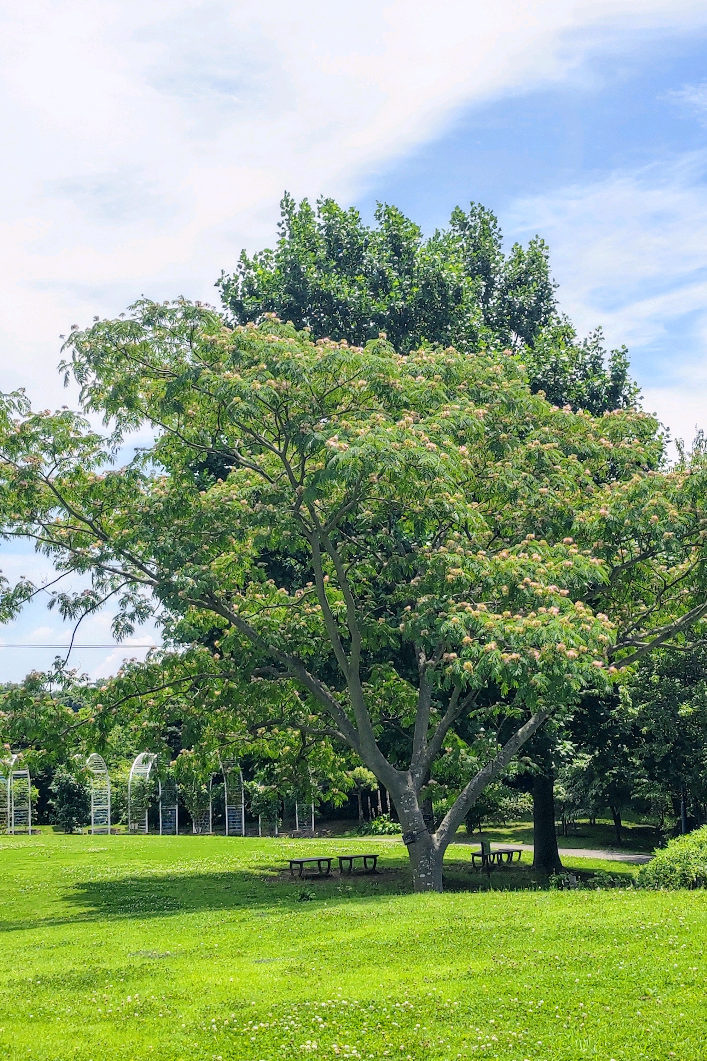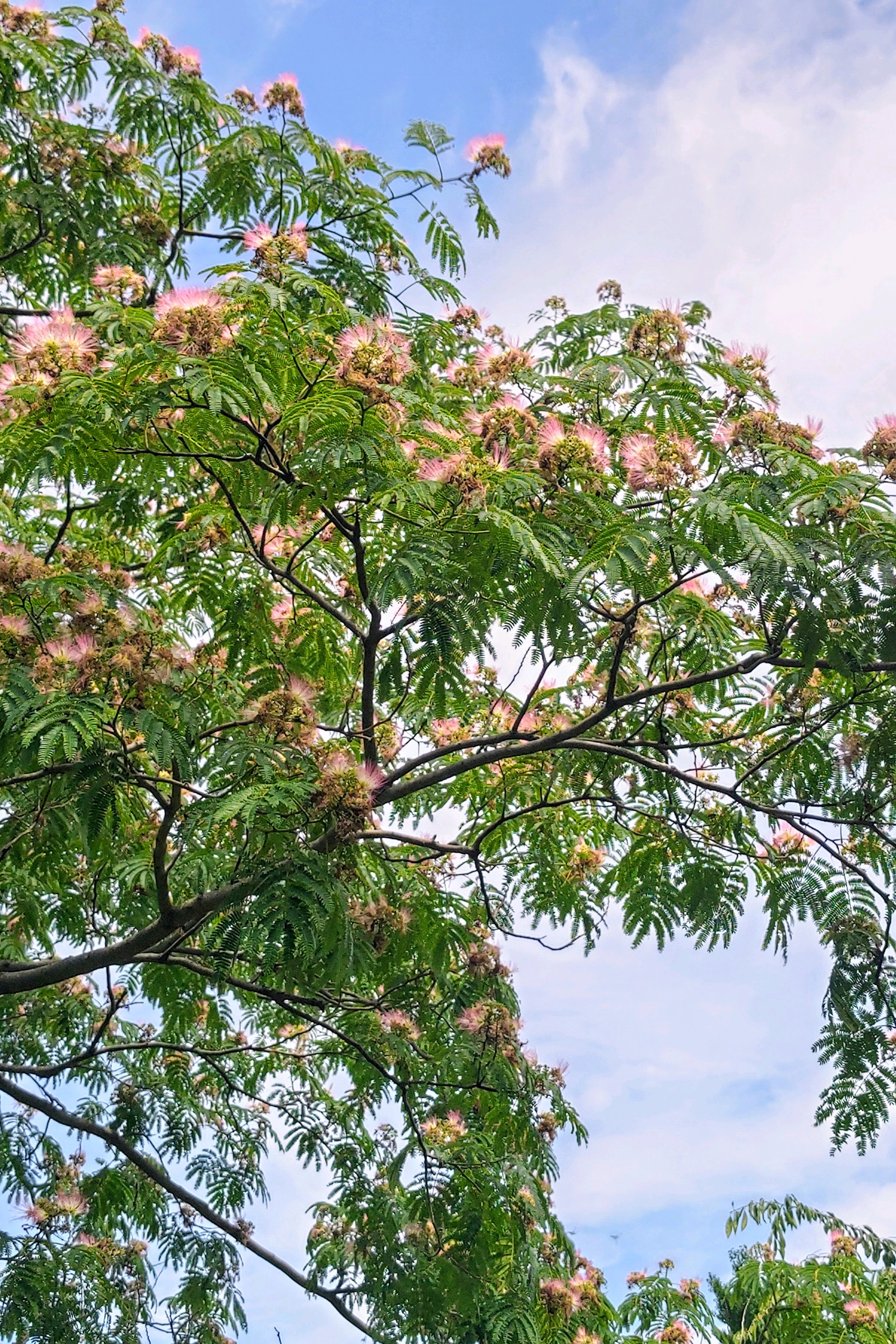 大きなネムノキですね〜。早寝の私は、葉を閉じたネムノキを見たことが無い。こんな大きなネムノキが葉を閉じて眠る姿、見てみたいです。