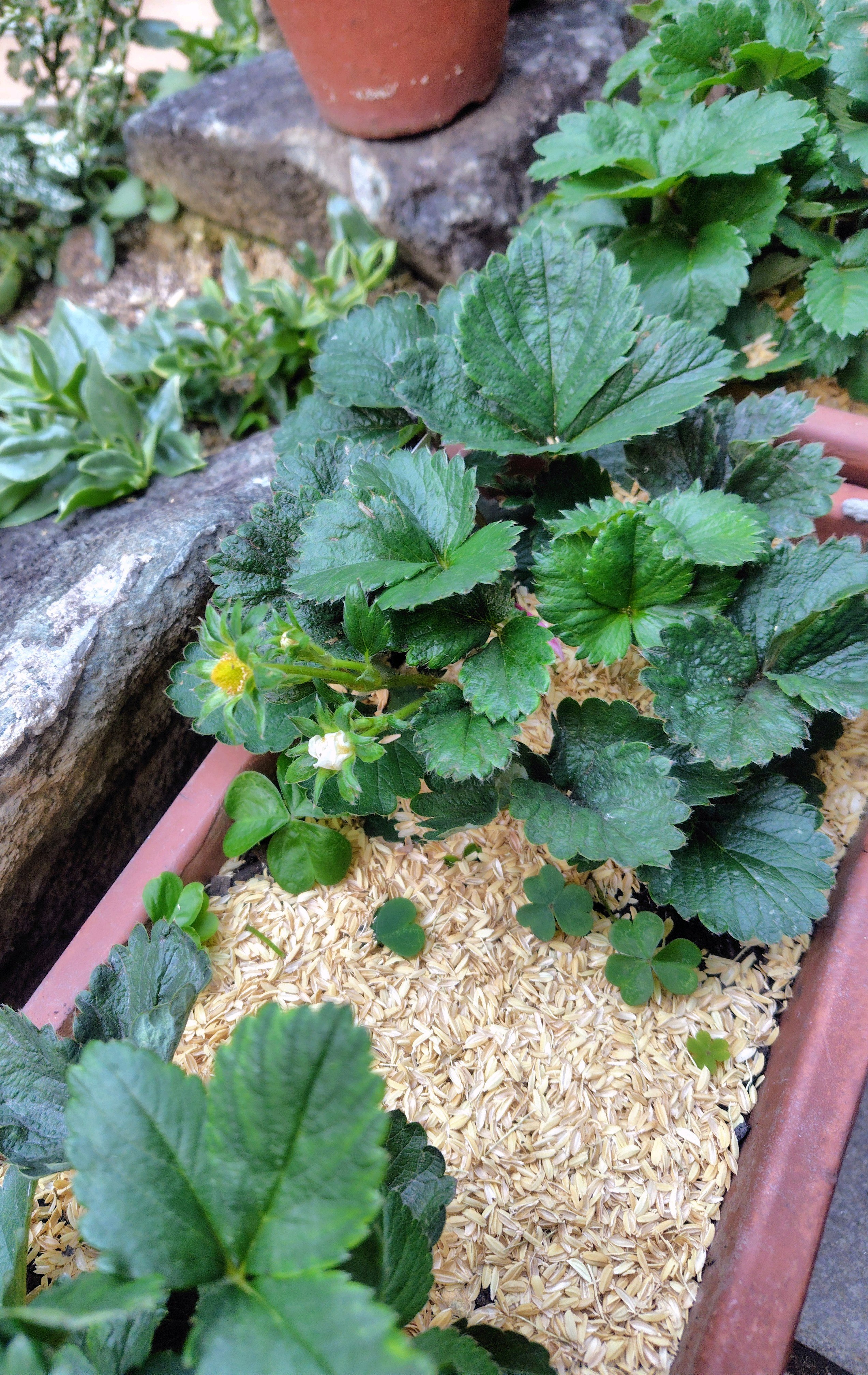 あ、本題本題💦。近所の農家さんから籾殻をもらってきて、🍓にin。