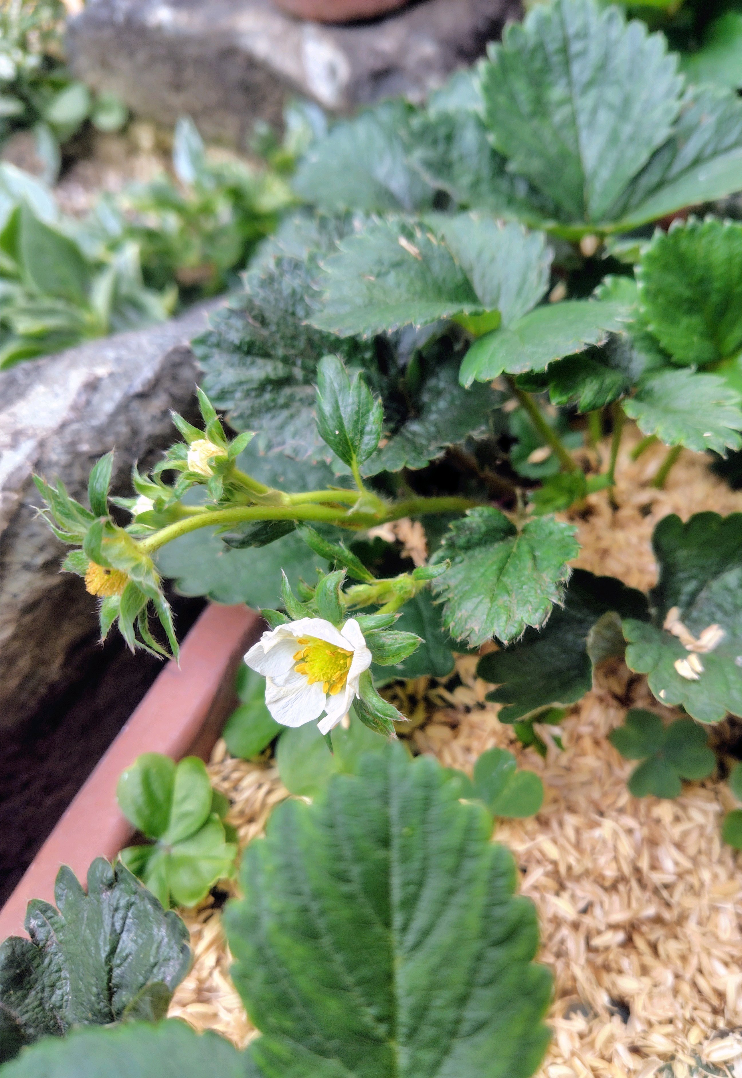 冬場は日陰が多くなる小庭だけど、この春には🍓がいくつか実りました。
