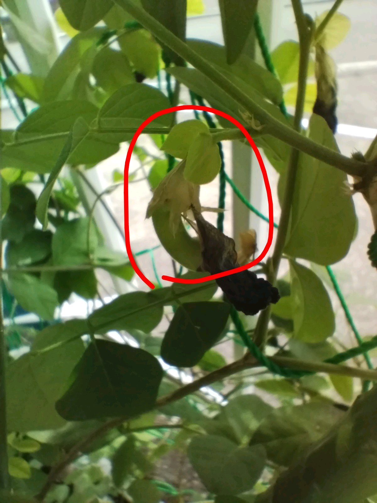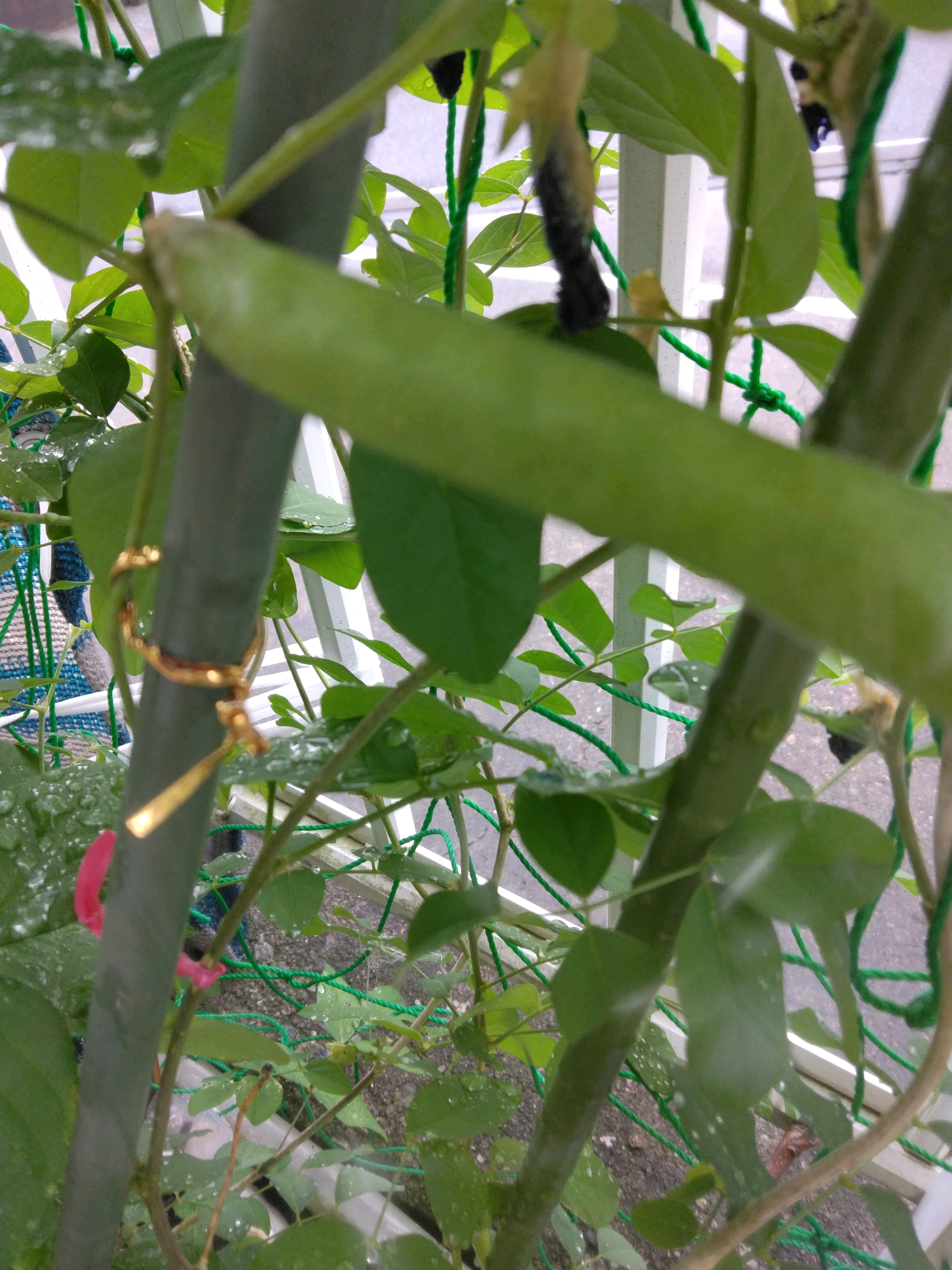 1番に出来た鞘が随分厚みある、中の種子豆、脹らんでいそう🥰🎶