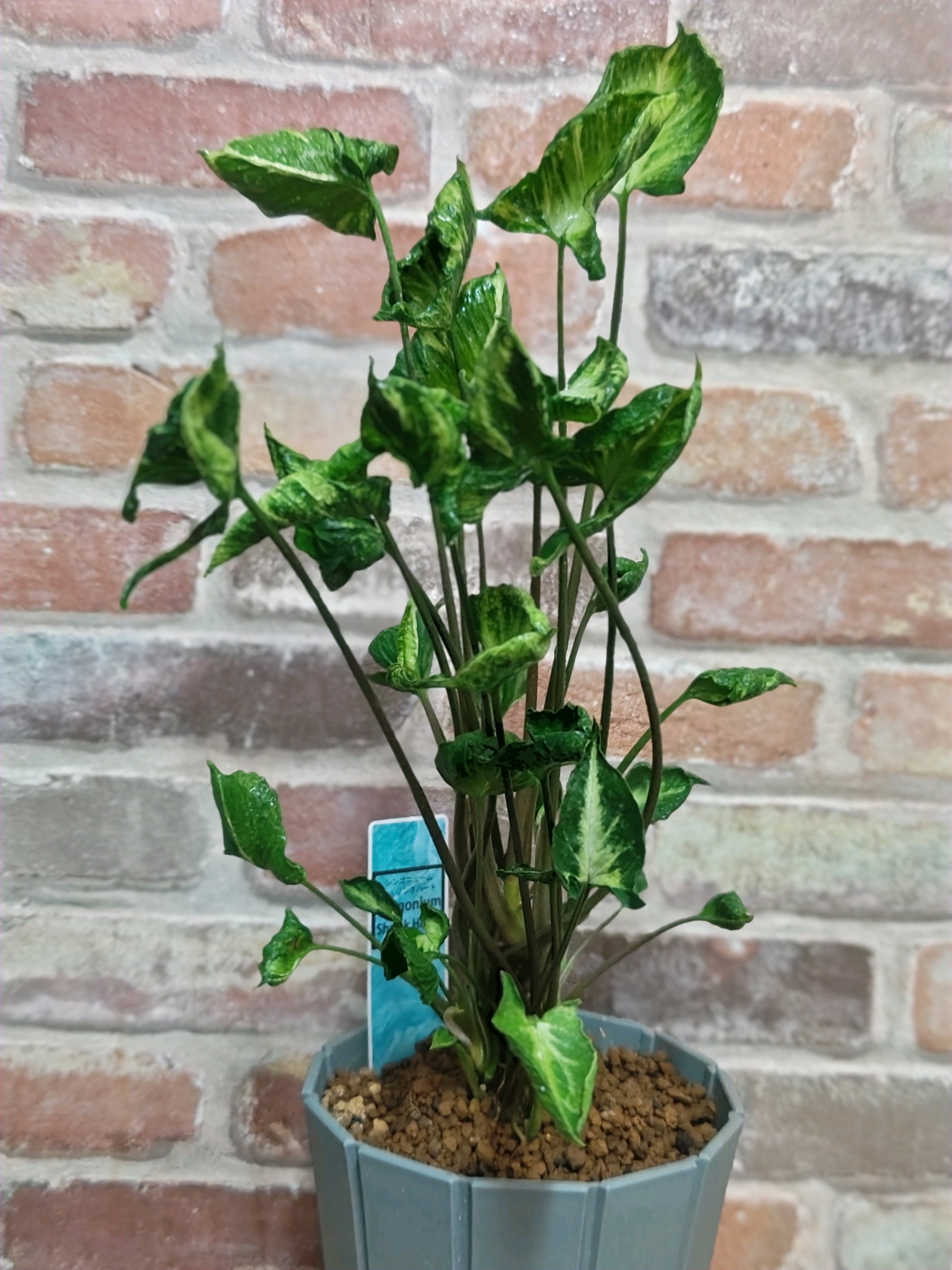 縮れ葉に白い斑が入った、珍しいシンゴニウムです。葉っぱがハート💚に見えますね。