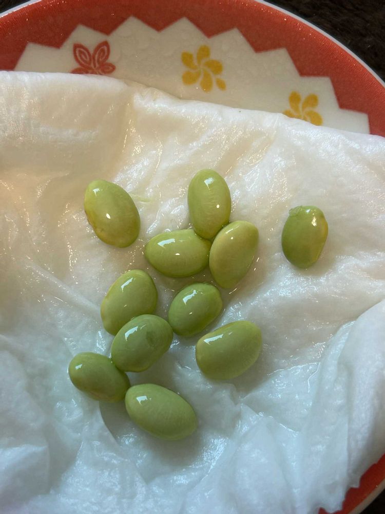生枝豆から育つと知り、さっそく採取して湿らせたキッチンペーパーの上で栽培!