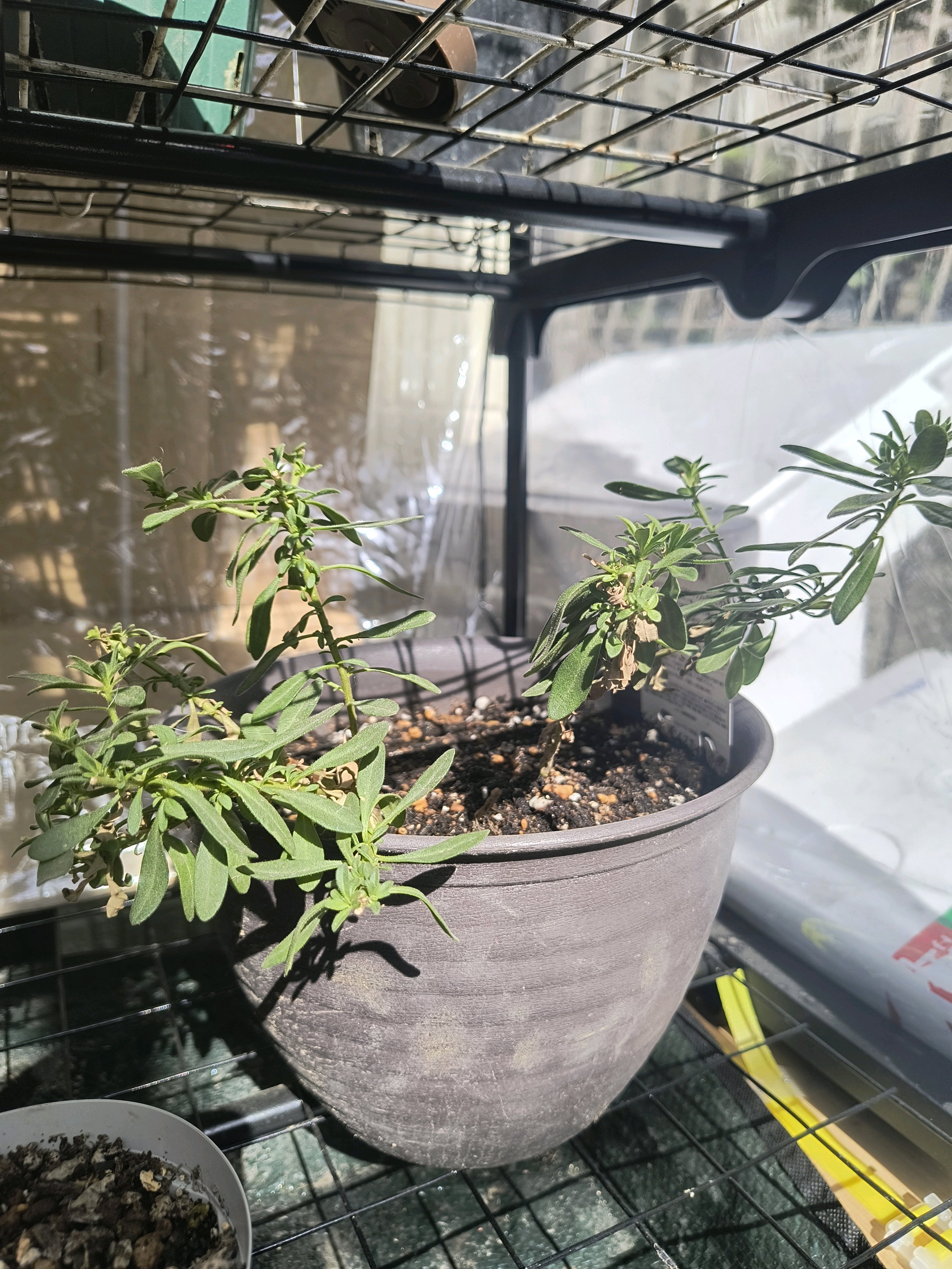 簡易ビニールハウスにて水を切らし気味に管理していましたが、気温が上がってきたからもう冬越し成功判定でいいかな?