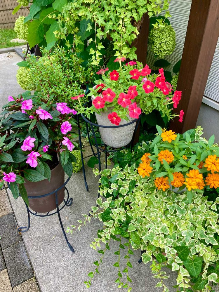 ハンギングのニチニチソウが伸びてバランス悪くなってきました😅