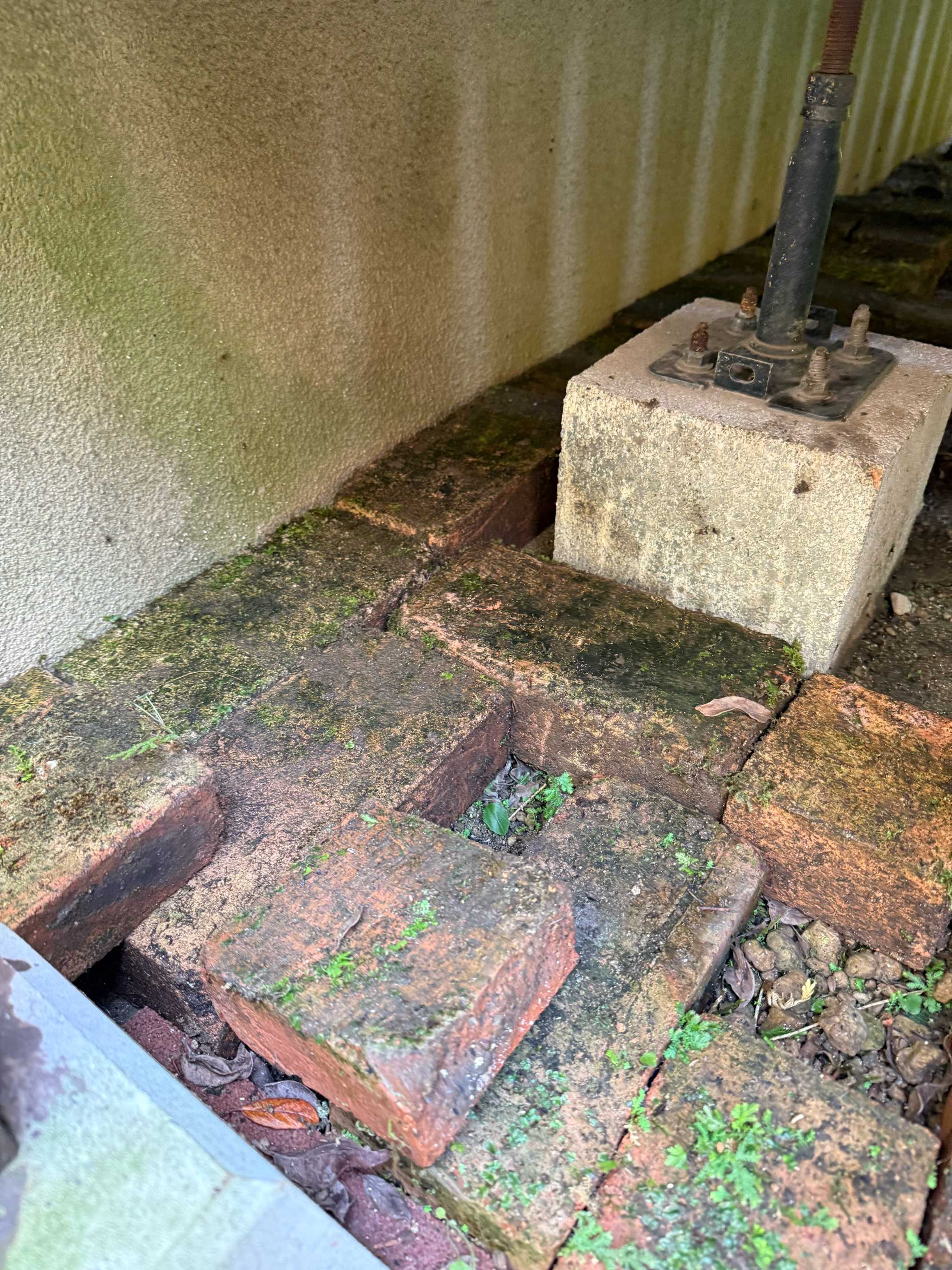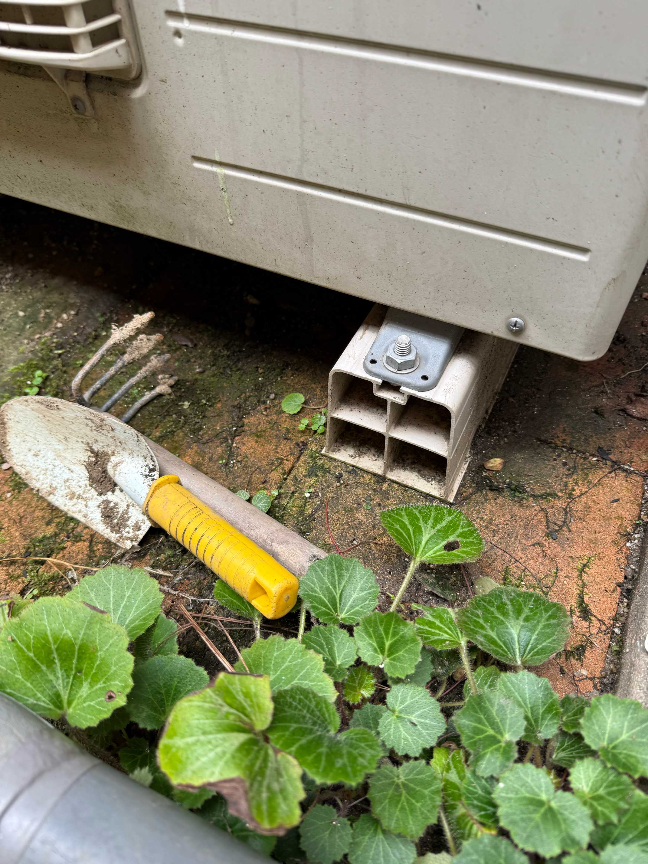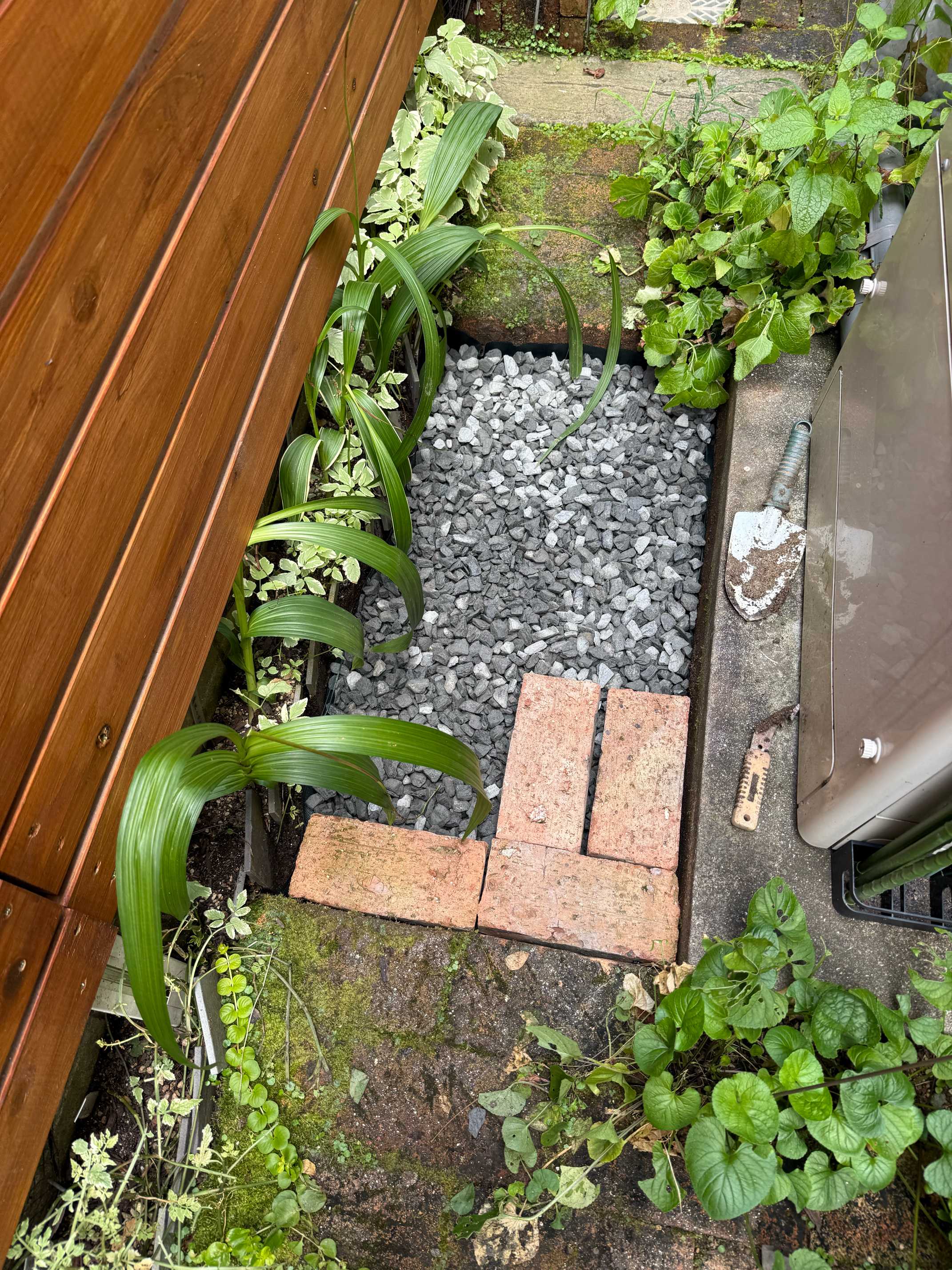 レンガを置いているのは家の反対側。