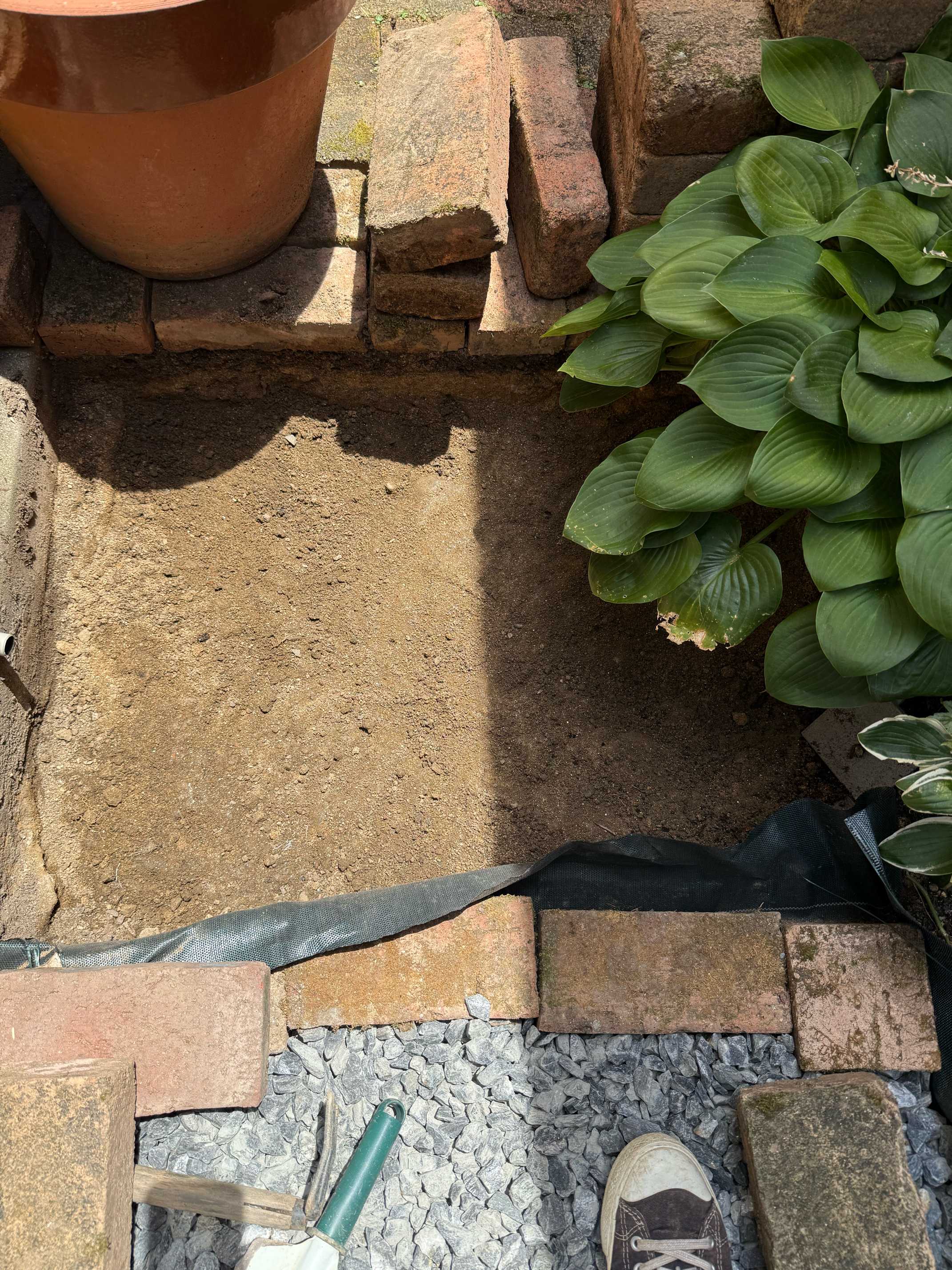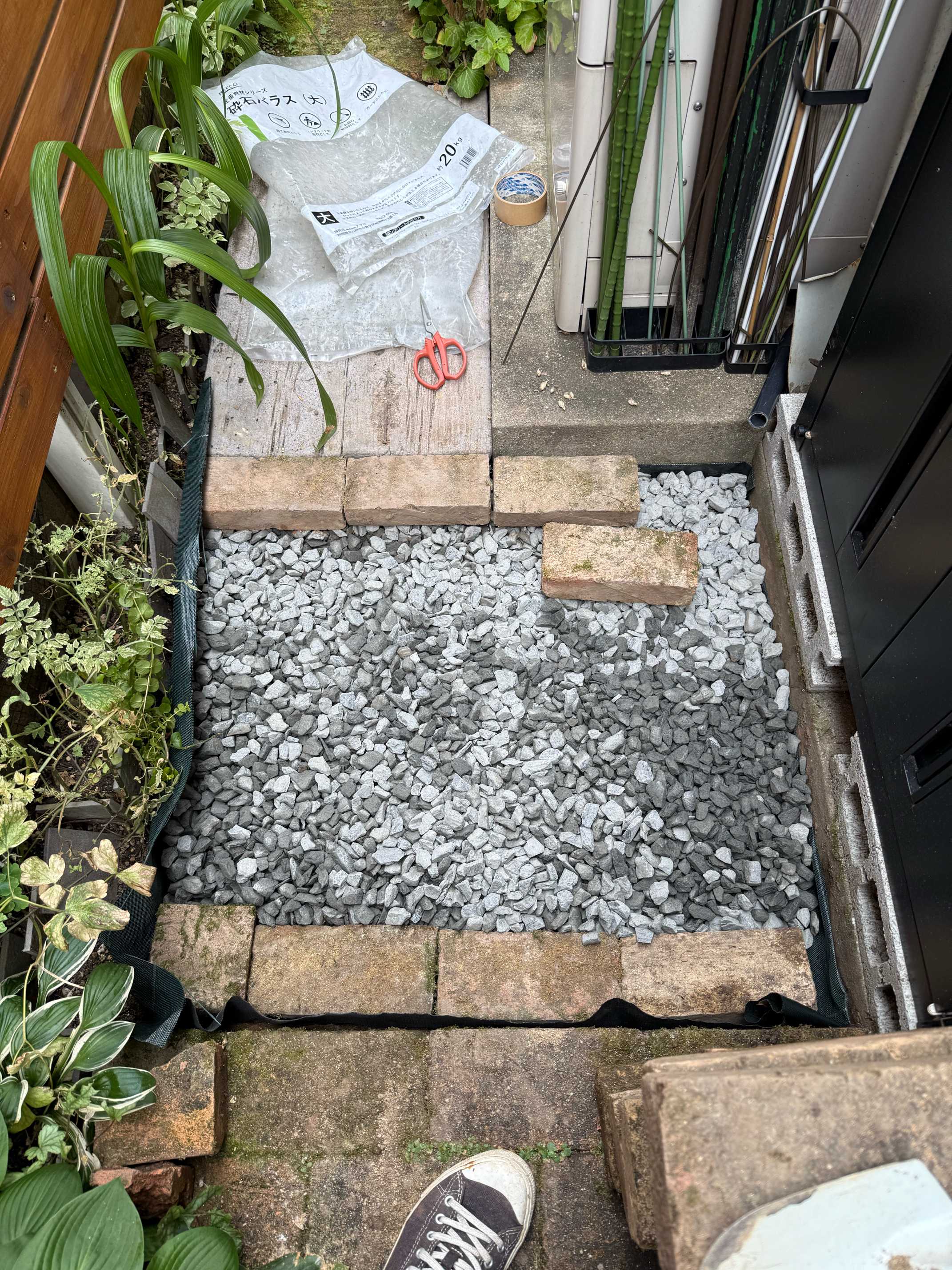 砂利の高さはレンガの高さに合わせる。