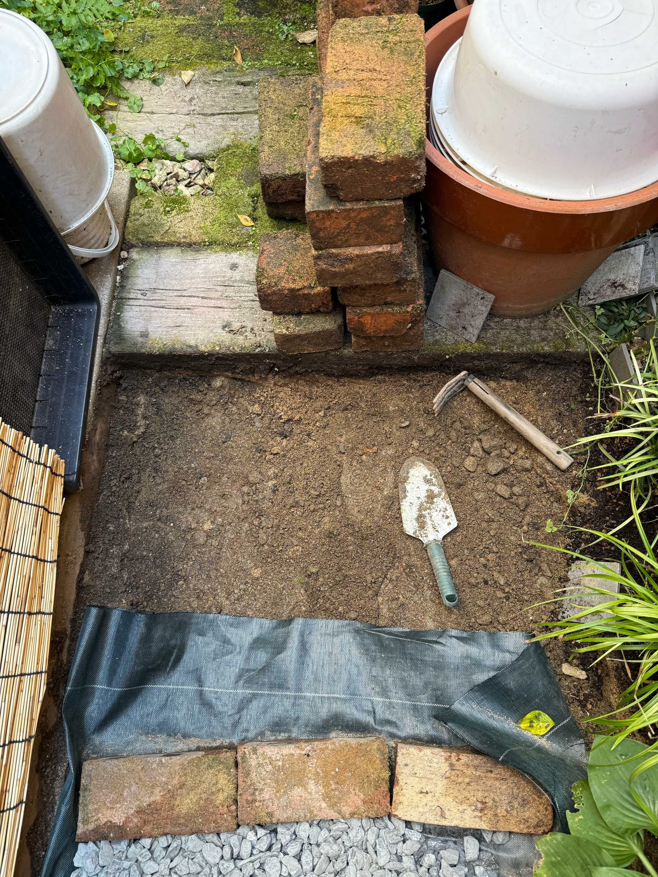 一旦砂利も全部退けて下に入れ込む?