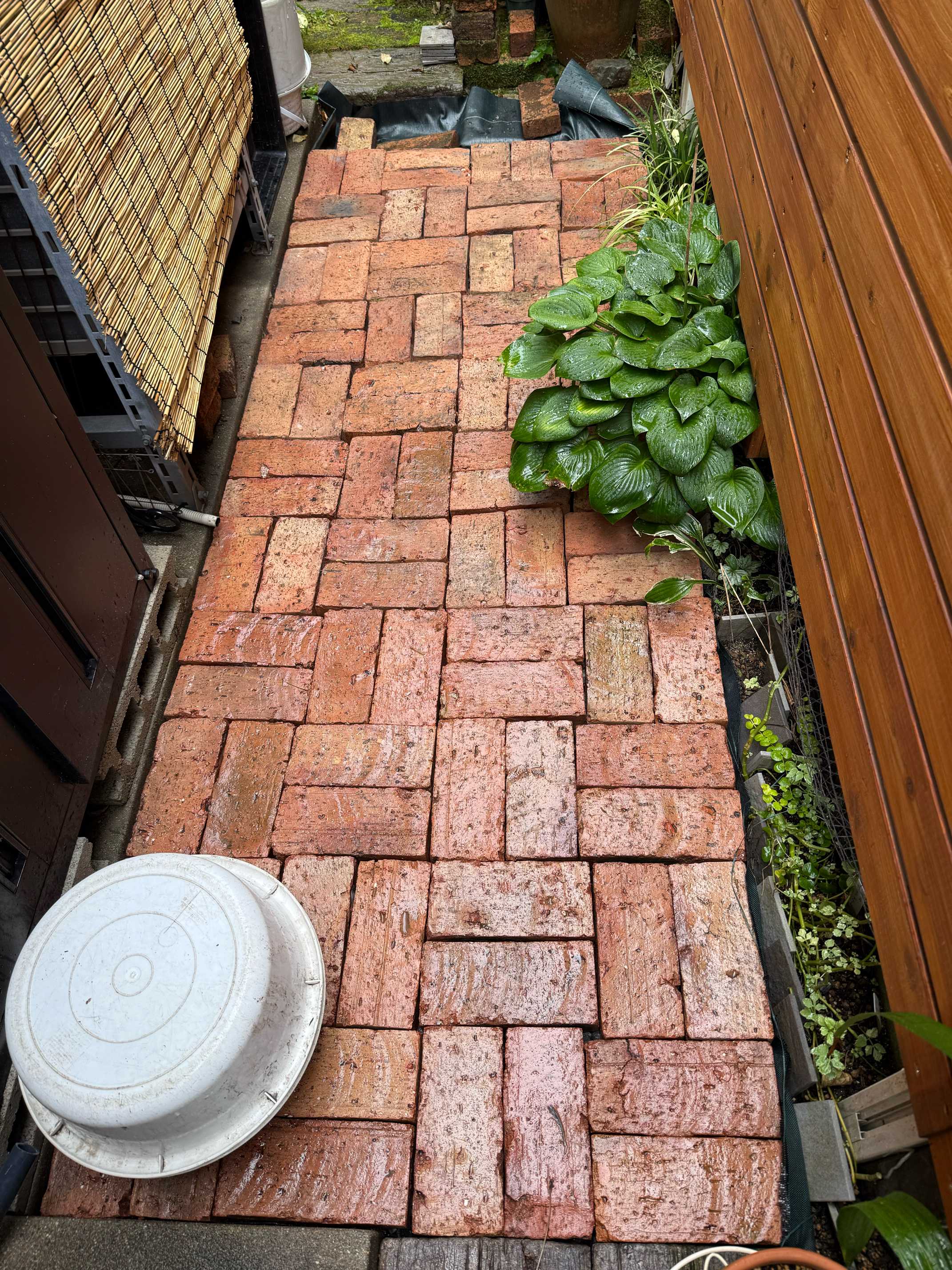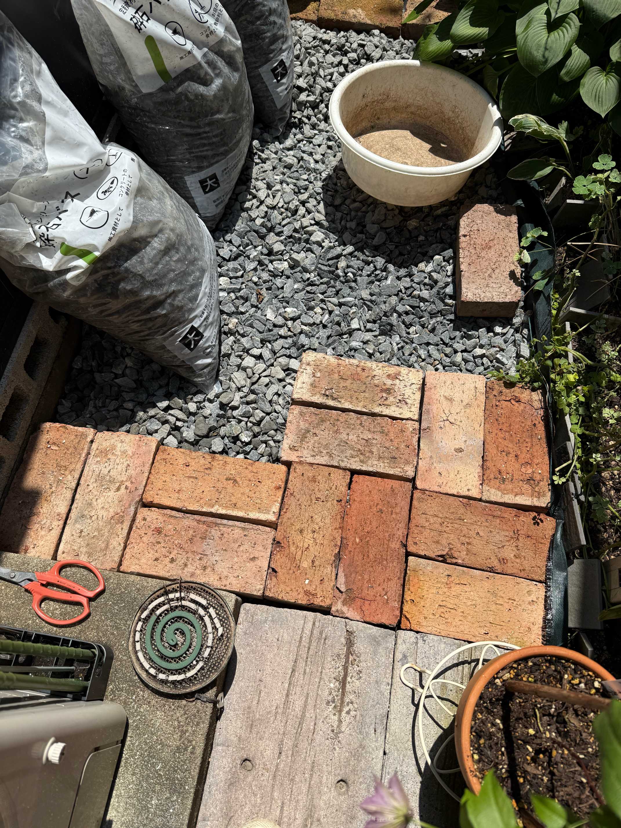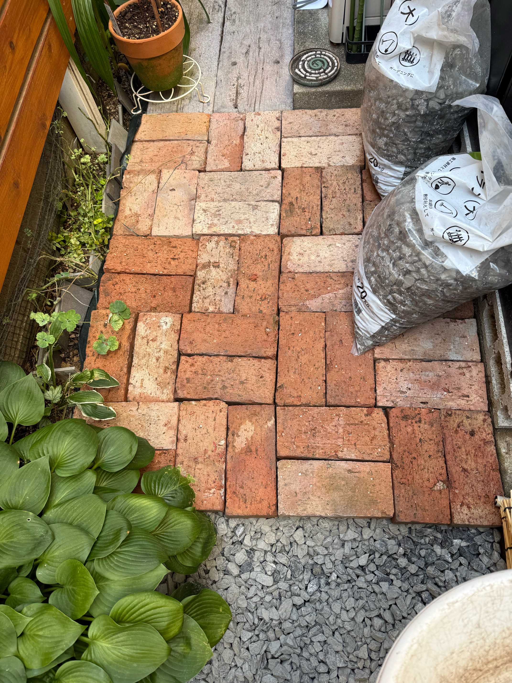 雑草対策でやり始めたレンガ敷きももはや趣味だ😄