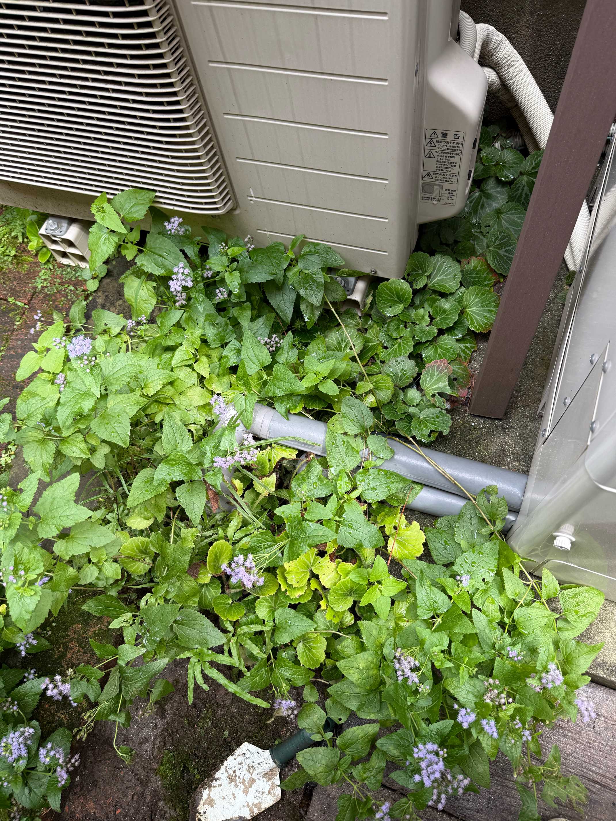 室外機の裏も砂利にしたので、もうユキノシタも生えてこないだろう。