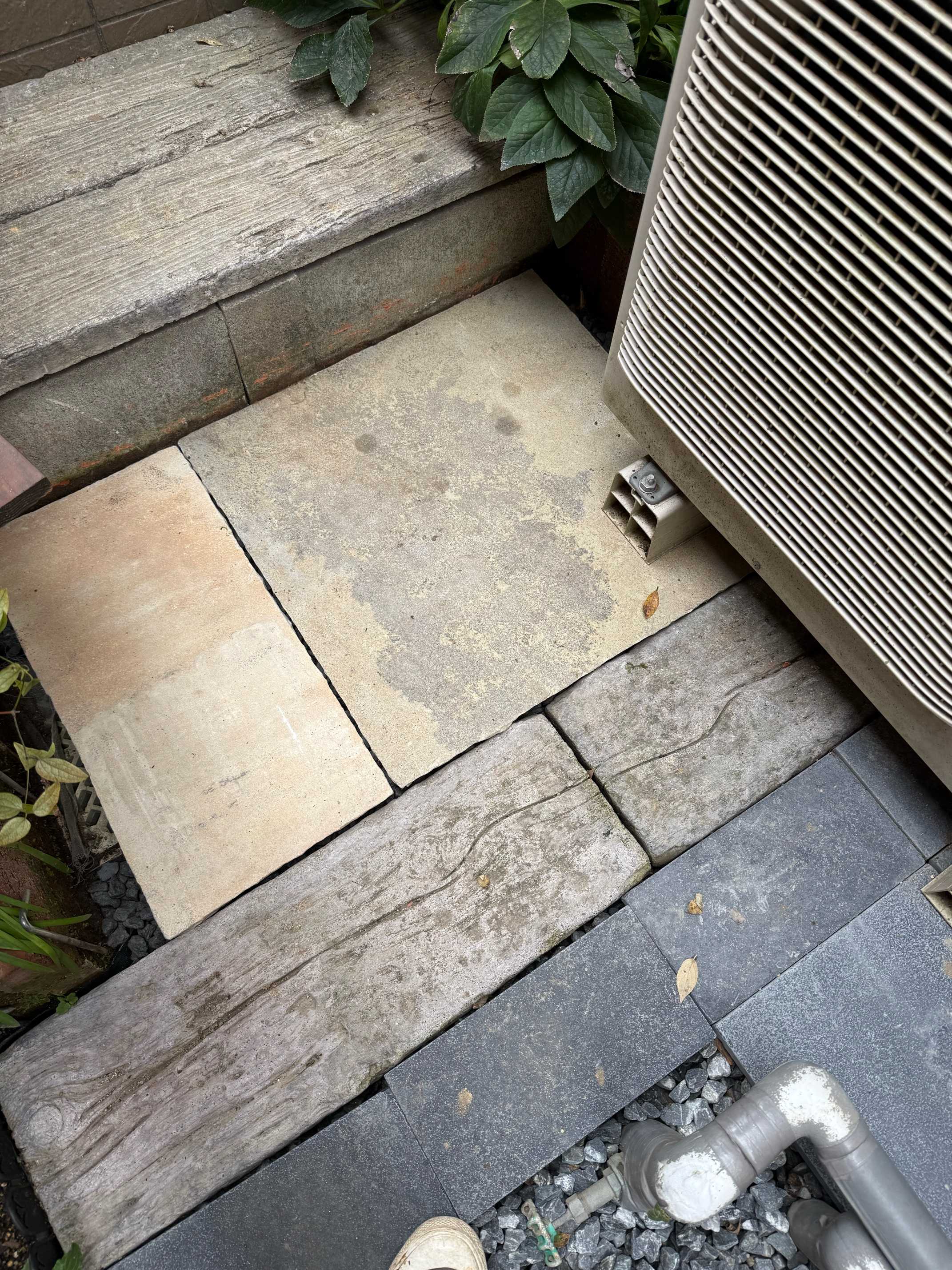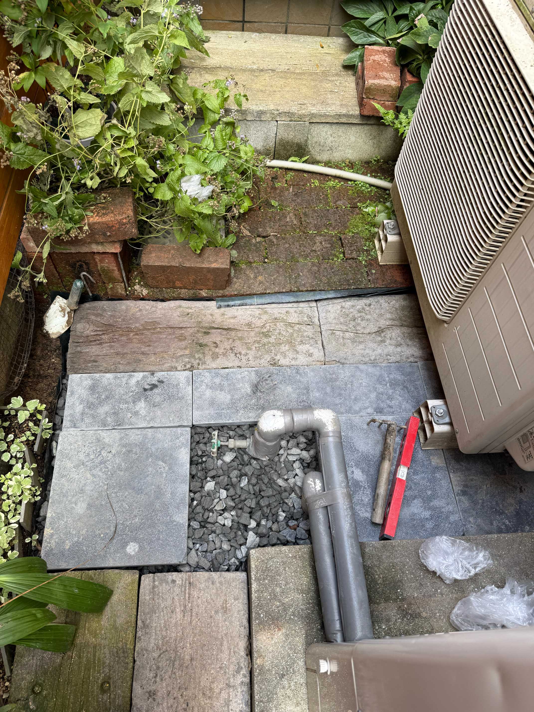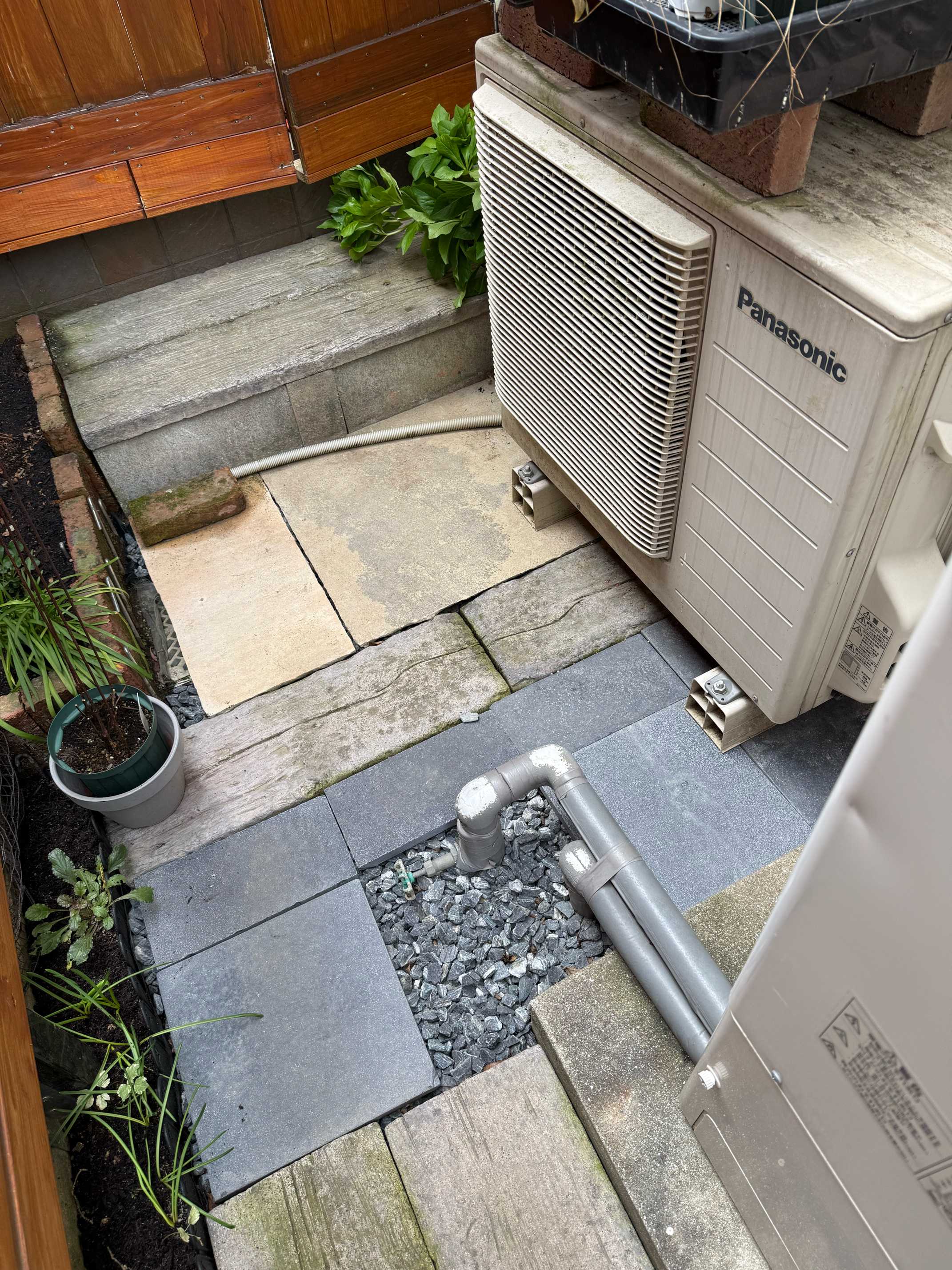 エアコン側は石板が足りなかったので一部砂利のまま。