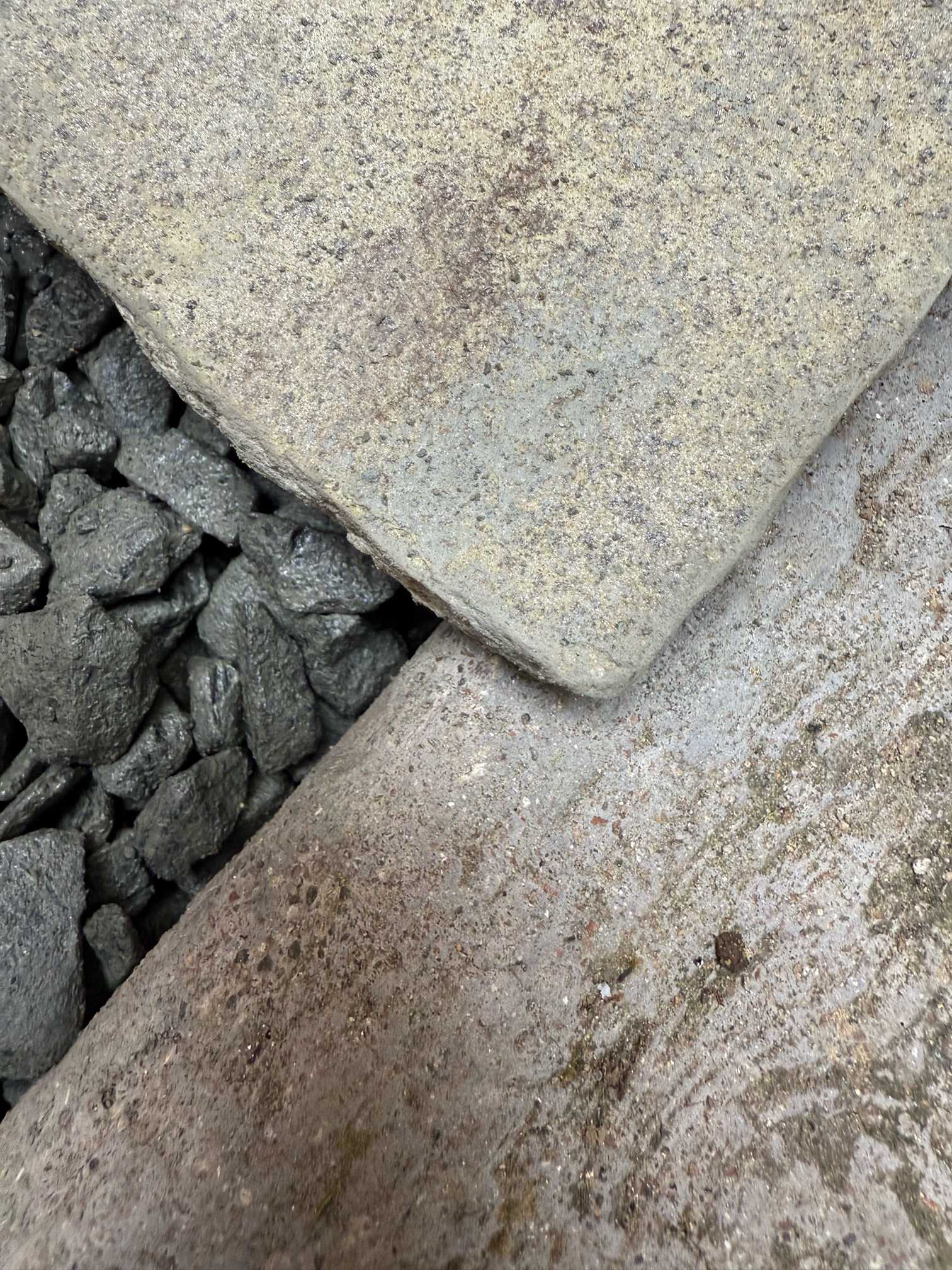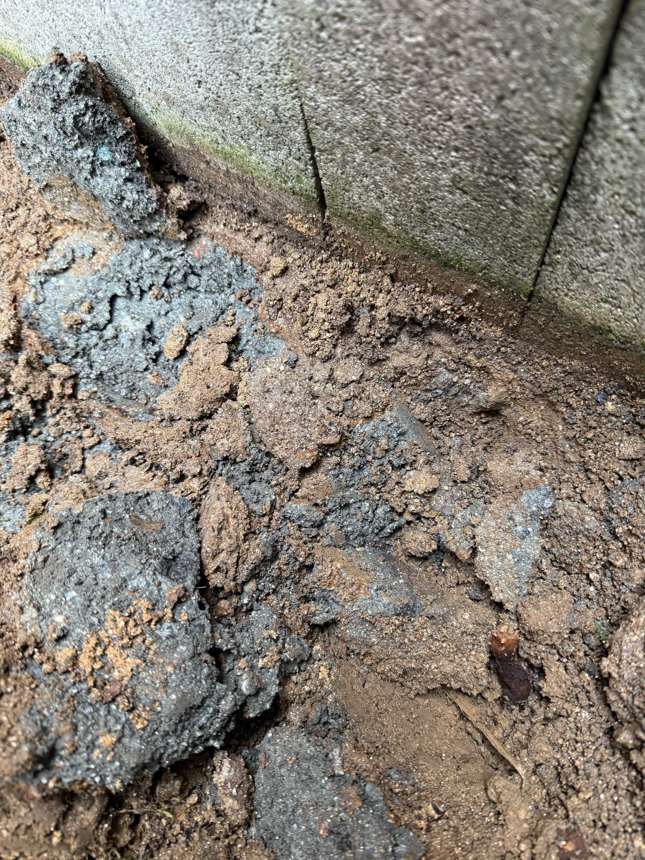 いつもの様に掘ると、モルタルと土が混ざった様な土が…