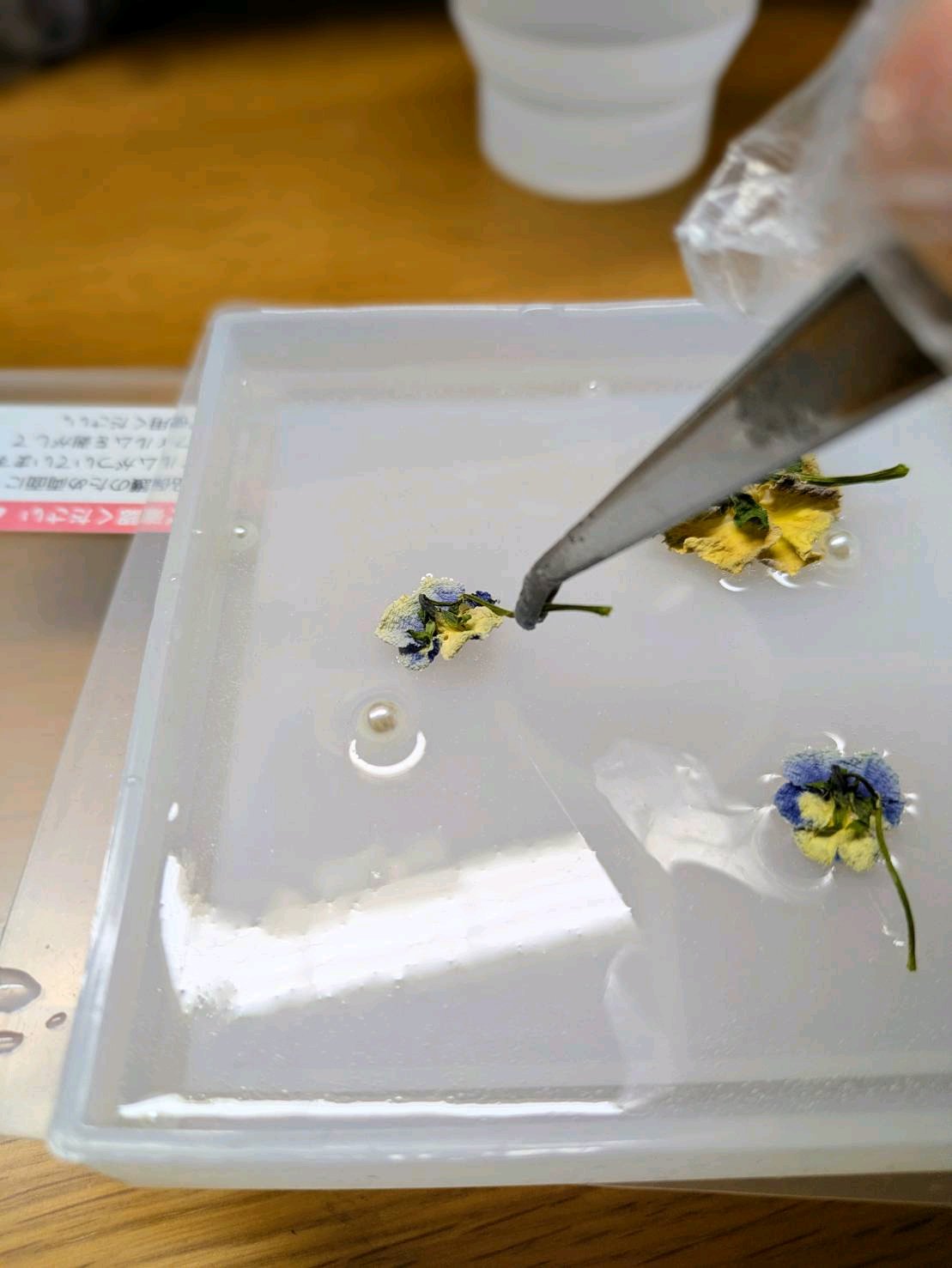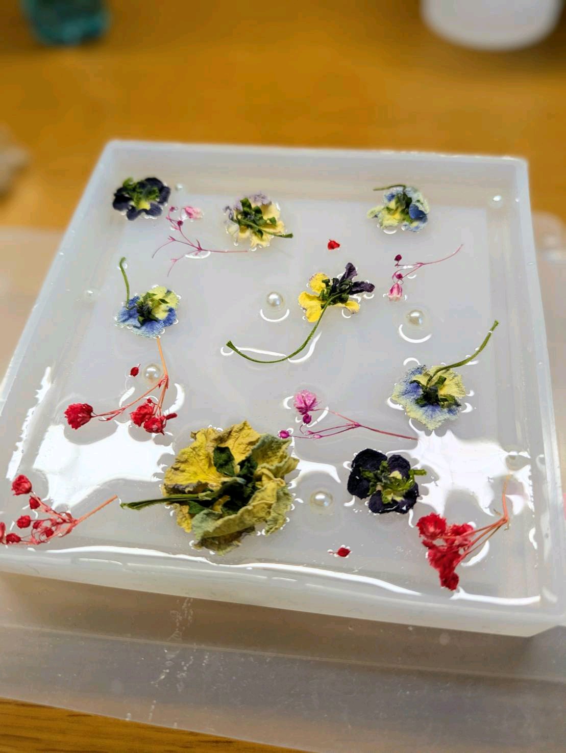 このときに一緒にドライフラワーや、パールビーズなどのパーツも置いちゃいましょう🫠