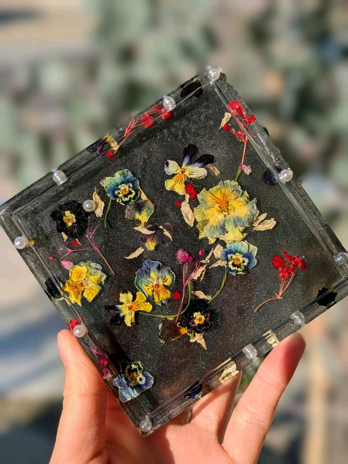 お庭に咲いたお花をレジンを使って、トレーにする方法を紹介します🤗
