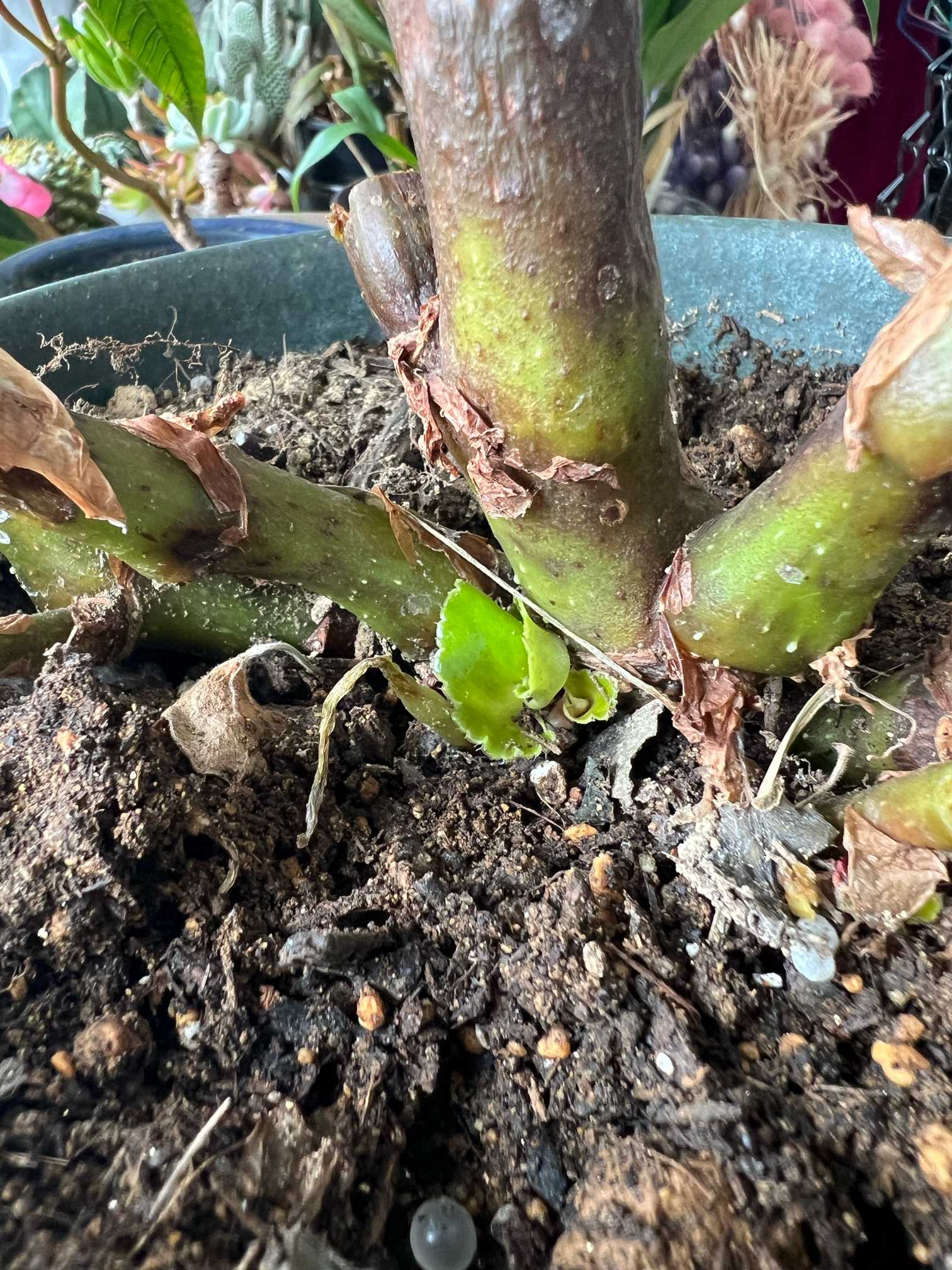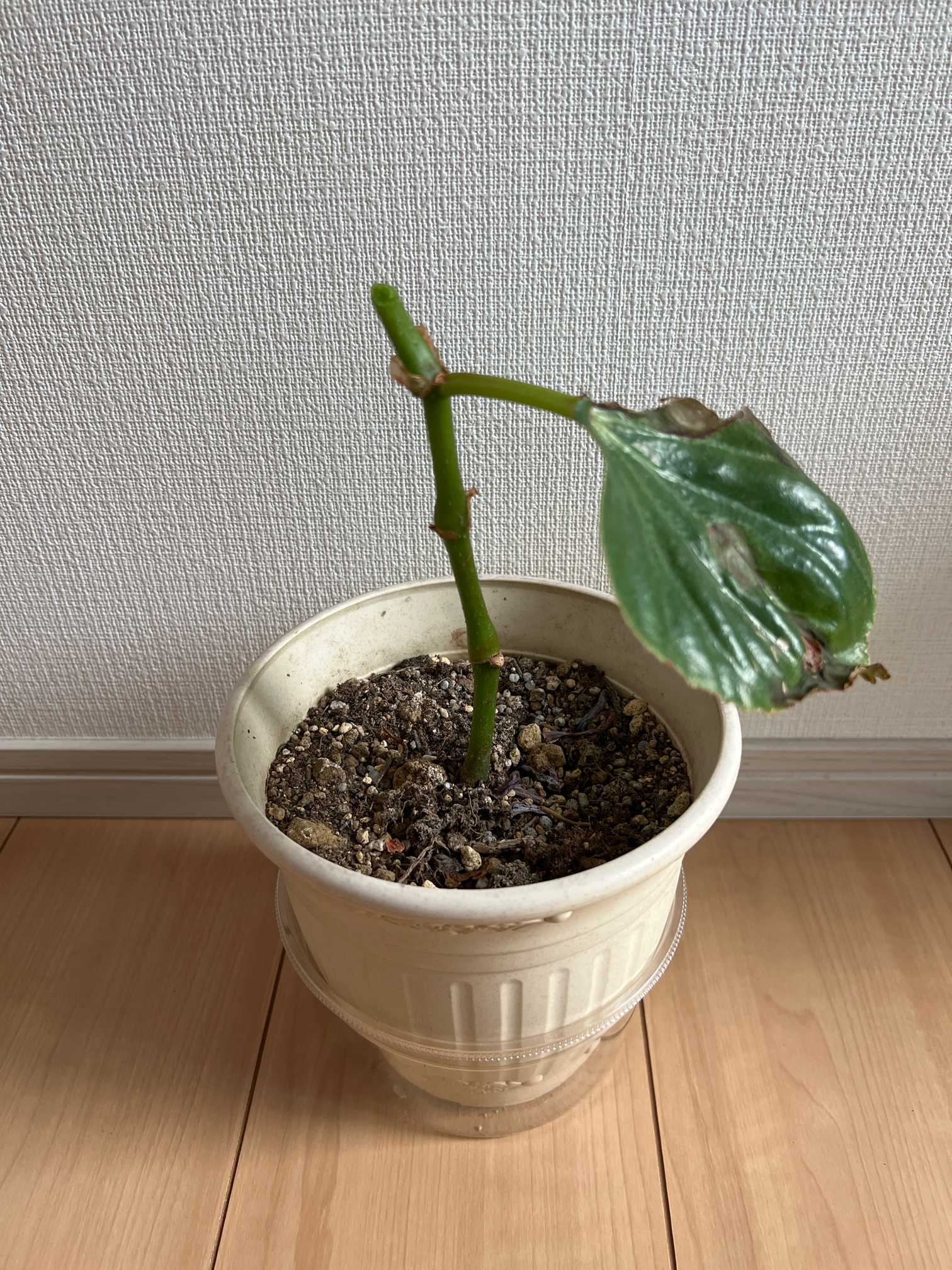 頂点を✂️カットした🌿同じ鉢に挿してみましたが、なんとか生きているみたいです🌱