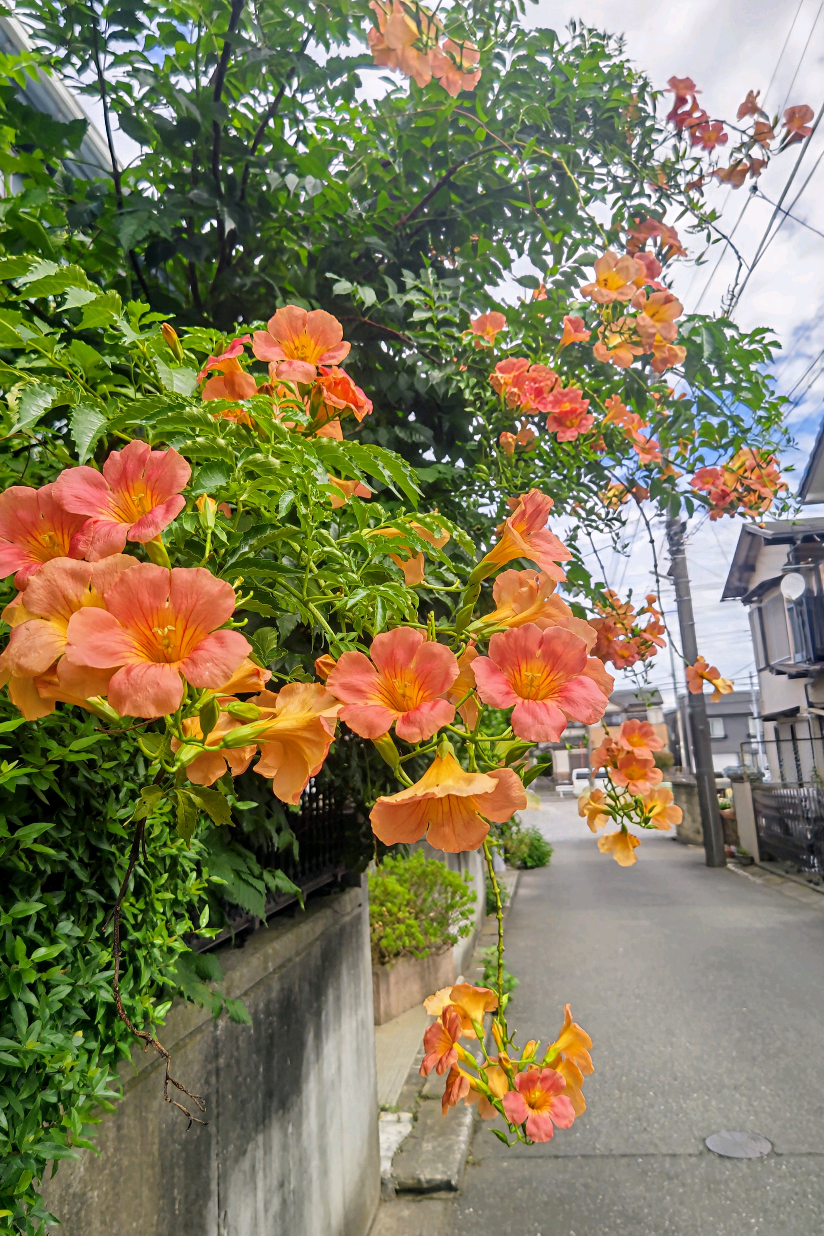 雨が降ったたのも数日。そんな中で咲く花、記録しておきたいな。お散歩ちゃんといっしょに、記念撮影。