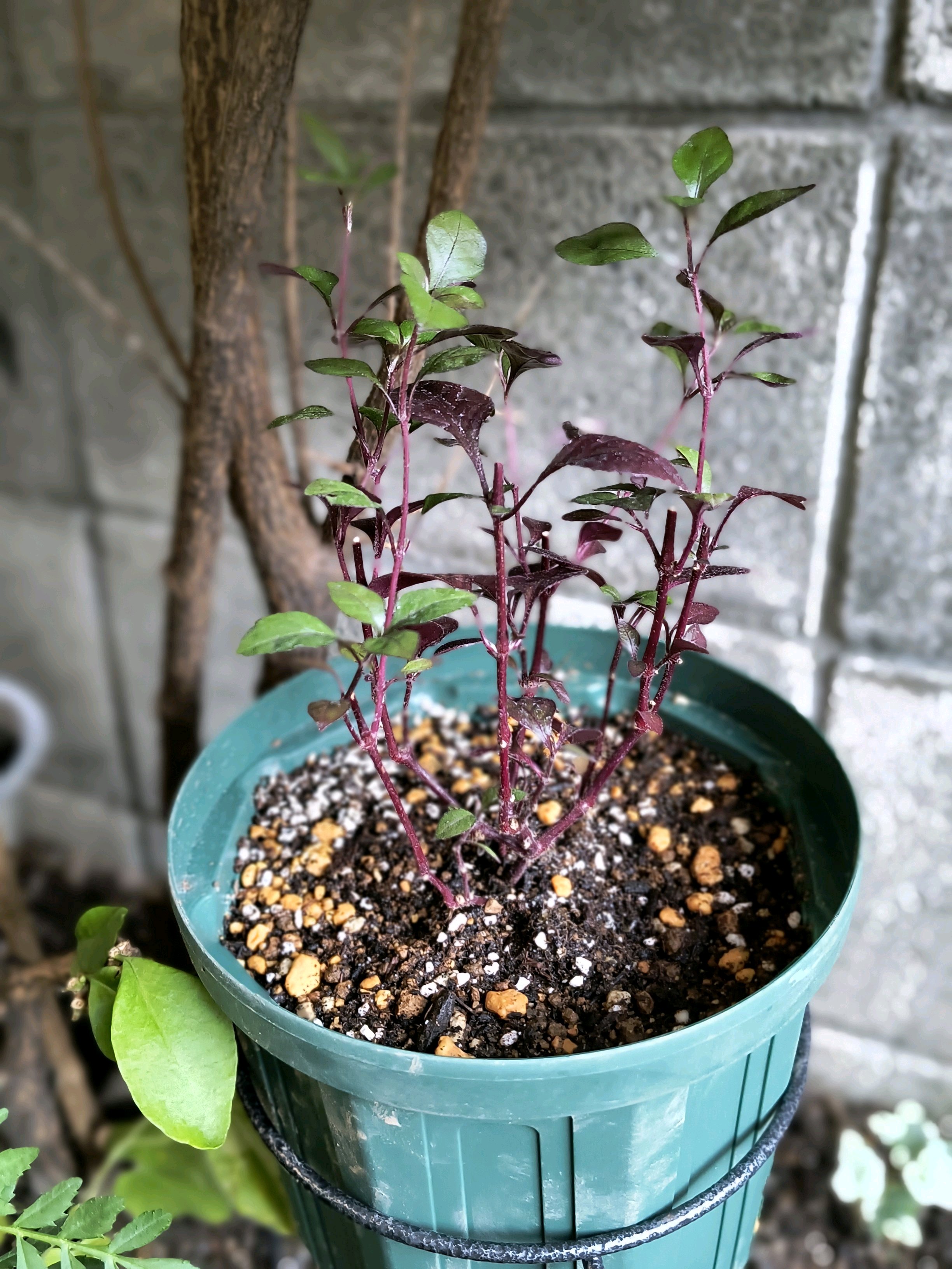 翌日鉢に植え替えしてニオイバンマツリの陰に置いてみました。耐暑性があるので夏はここで耐えられるかな?