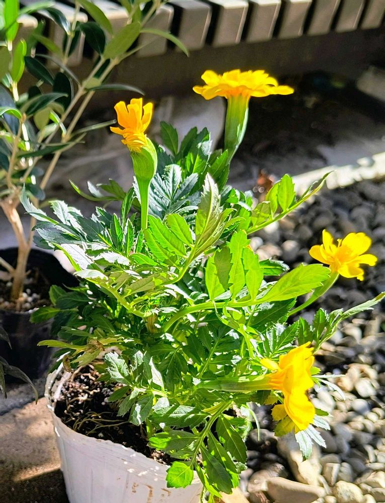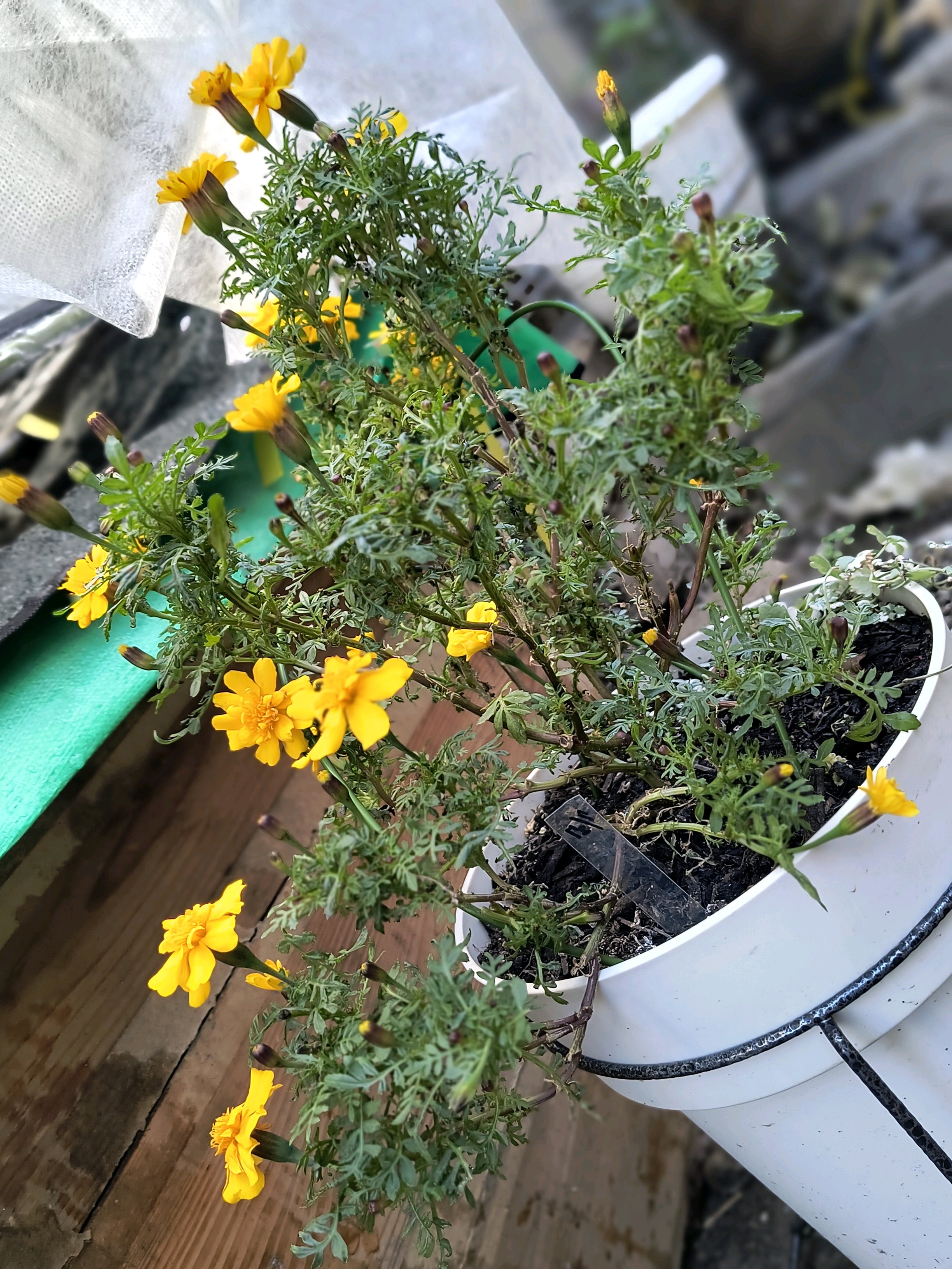 秋を過ぎたあたりから次々と開花してくれたマリーゴールドですがなぜか右半分だけ開花するという謎🤣