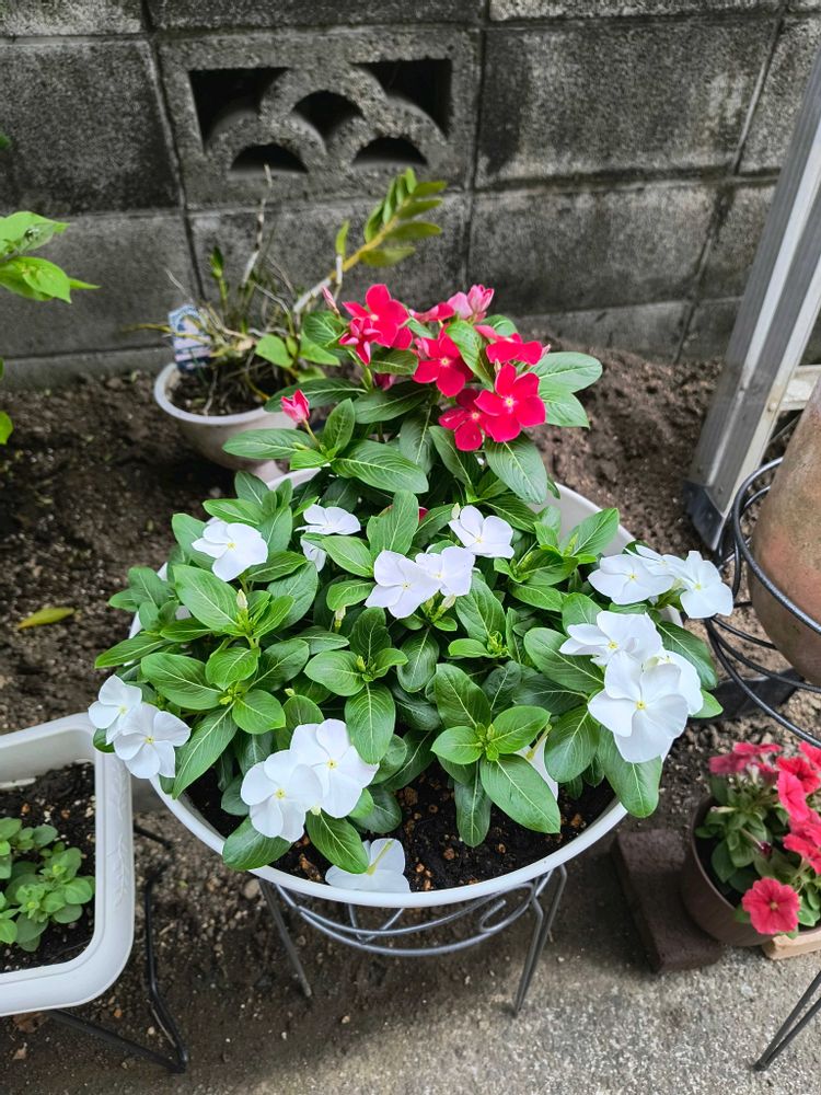 購入時から2ヶ月経過。3株植えで始めたニチニチソウは3回ほど切り戻しをし経ていまやうちの庭の顔になっています。