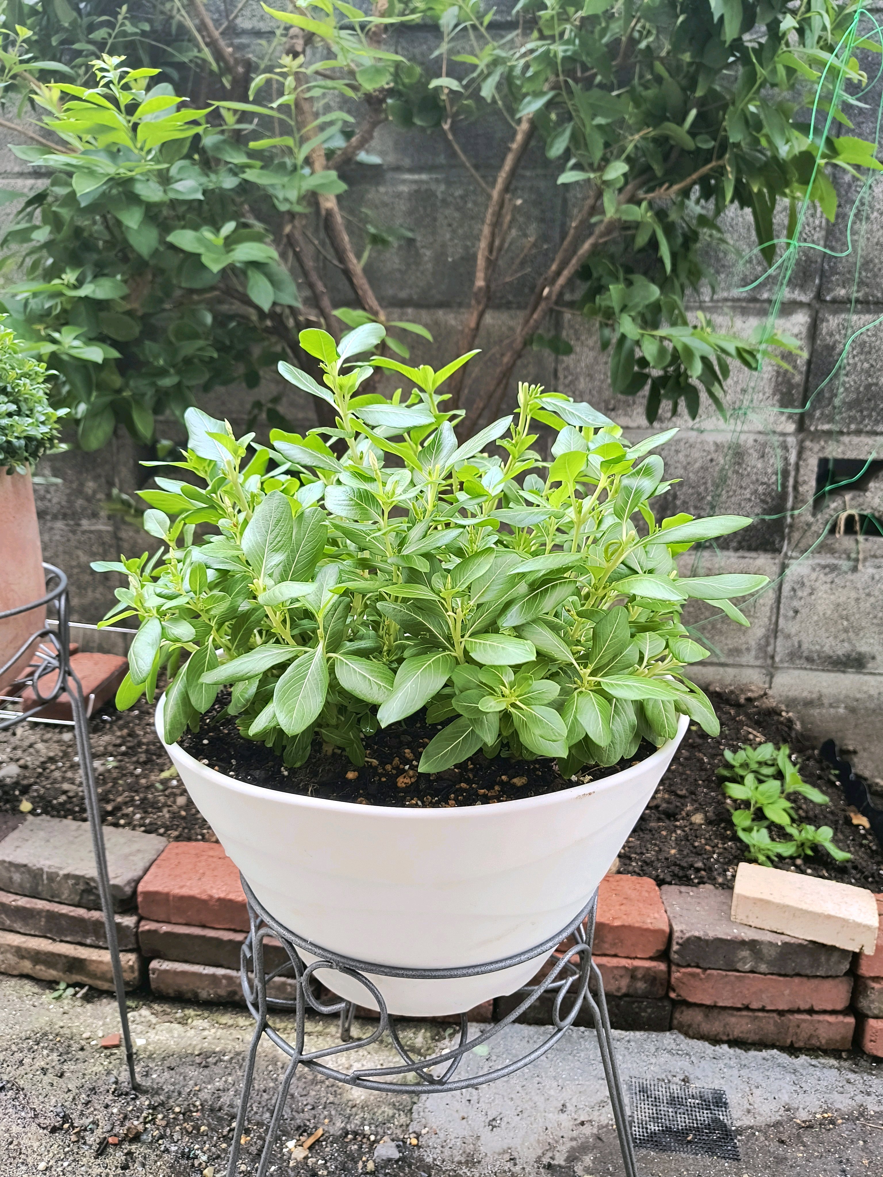 切り戻しから次の日に花がついて驚く生命力と強靭さにおどろかされる。まさにニチニチソウ!