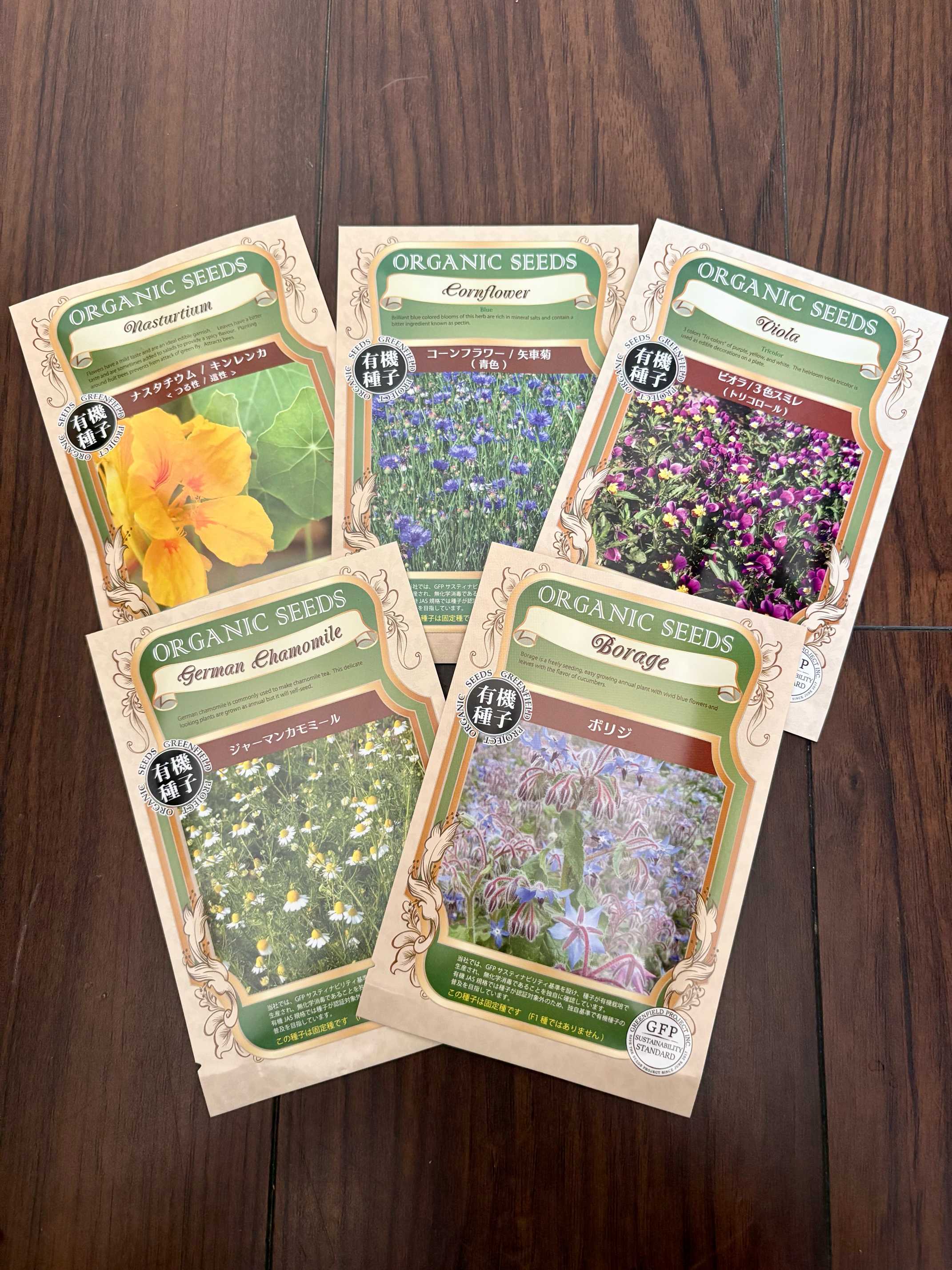 そして混植するハーブとエディブルフラワーはこちらの5種類