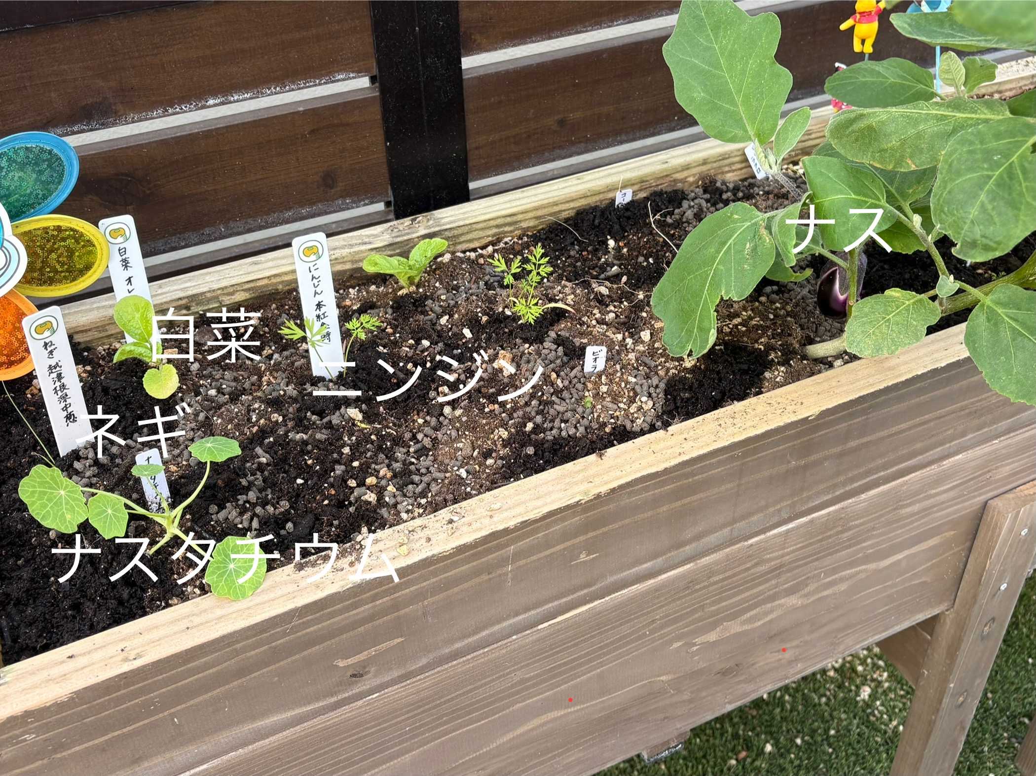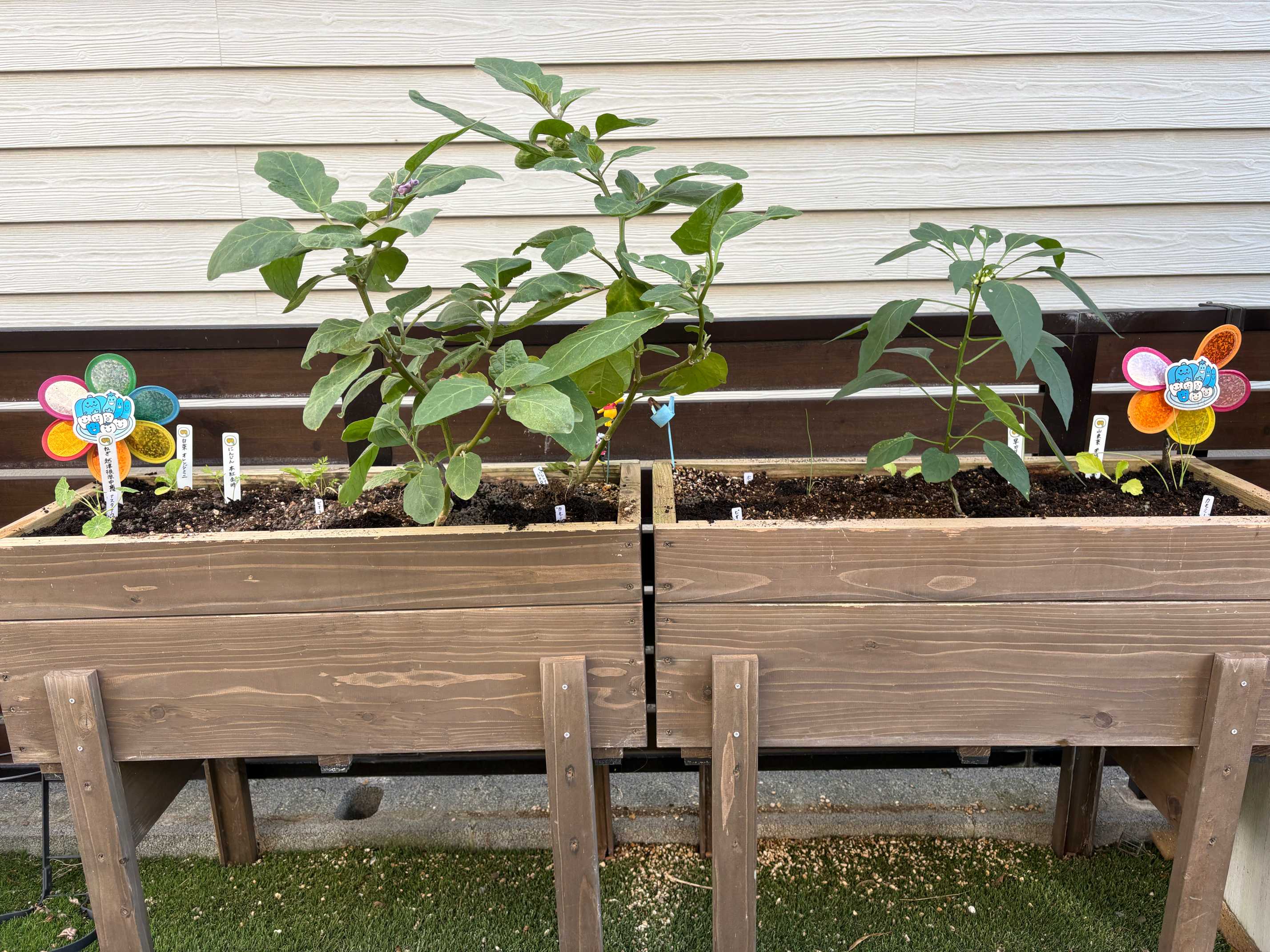 ナス・ラクロとトウガラシ・鷹の爪を残し、あいているところに苗を植えました。
