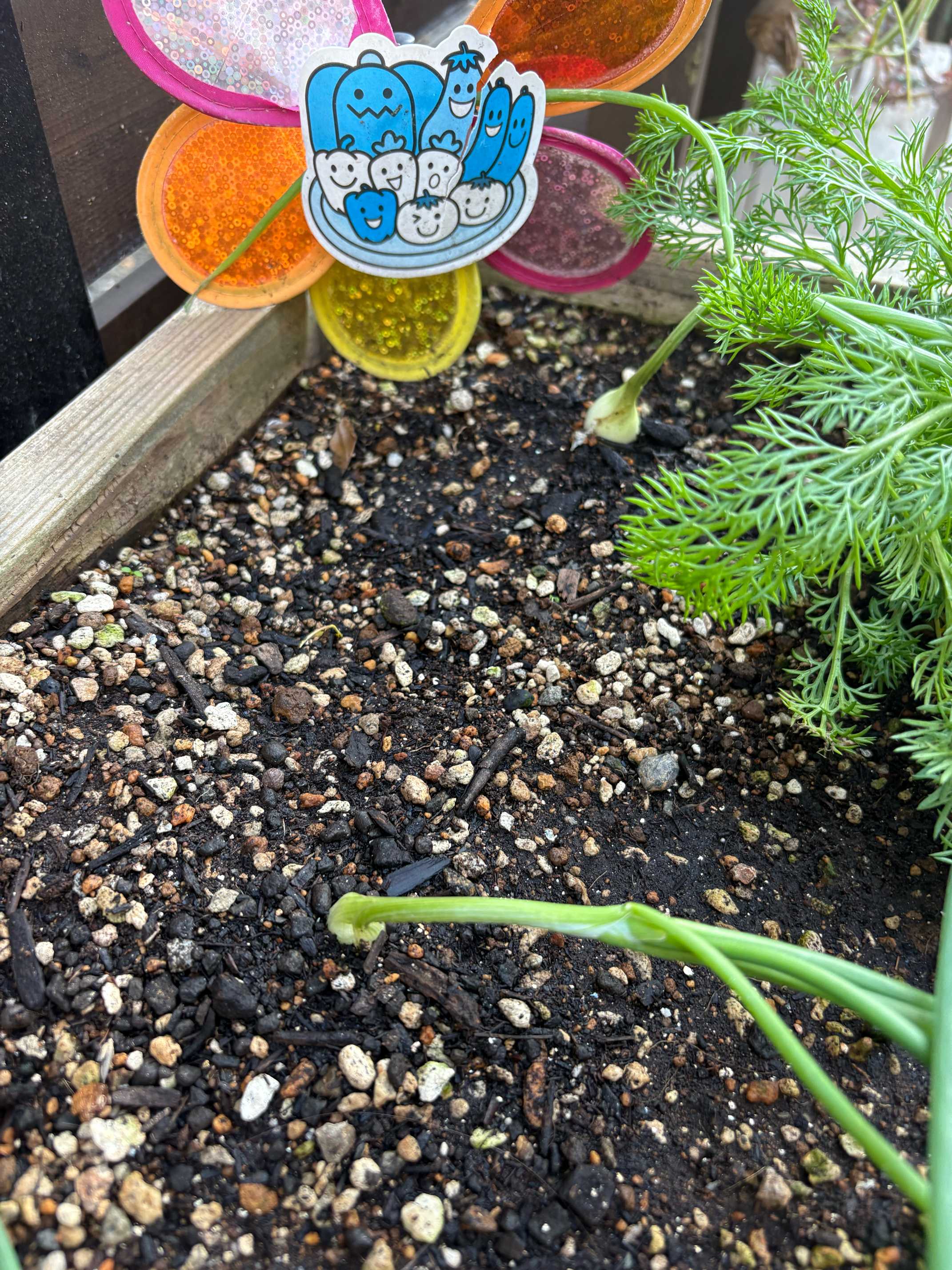 ニンジンのオレンジ色が少しだけ見えてきました