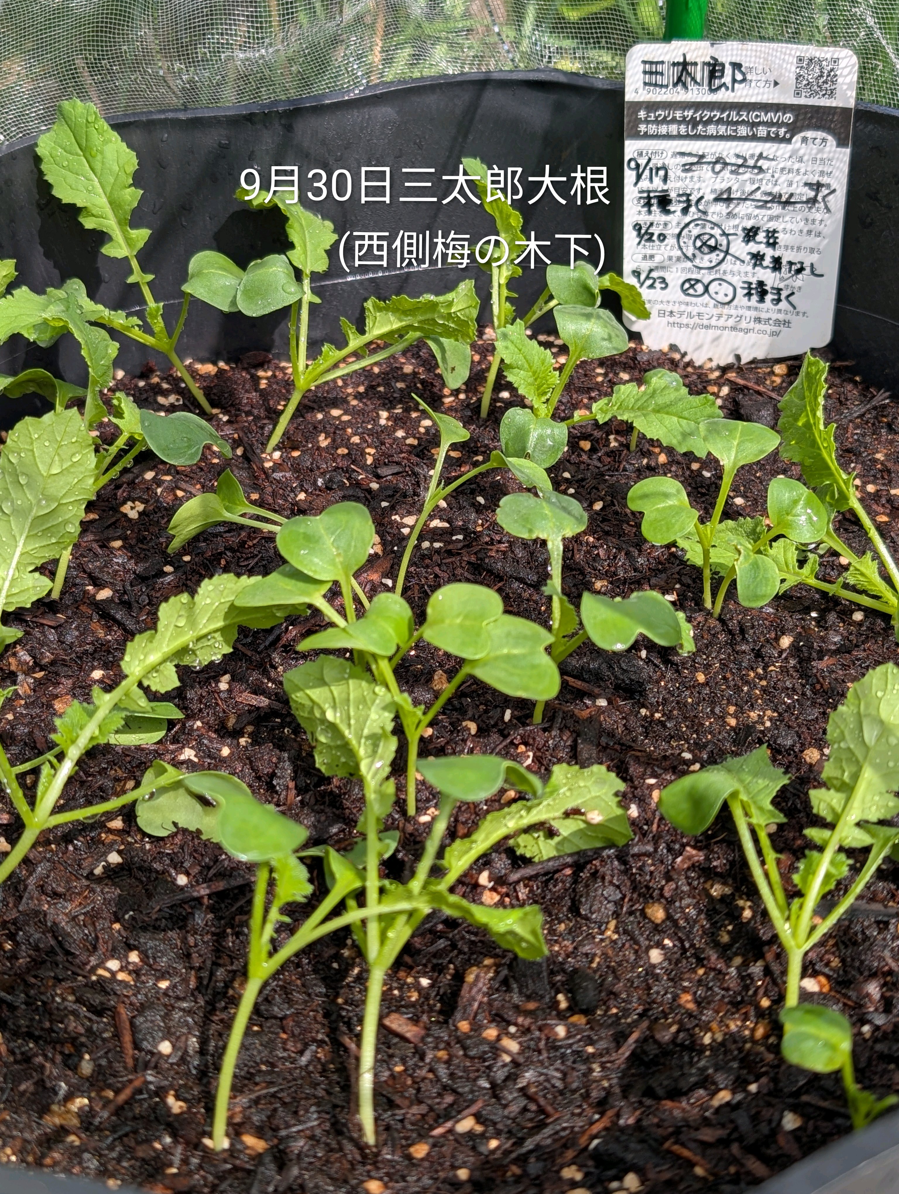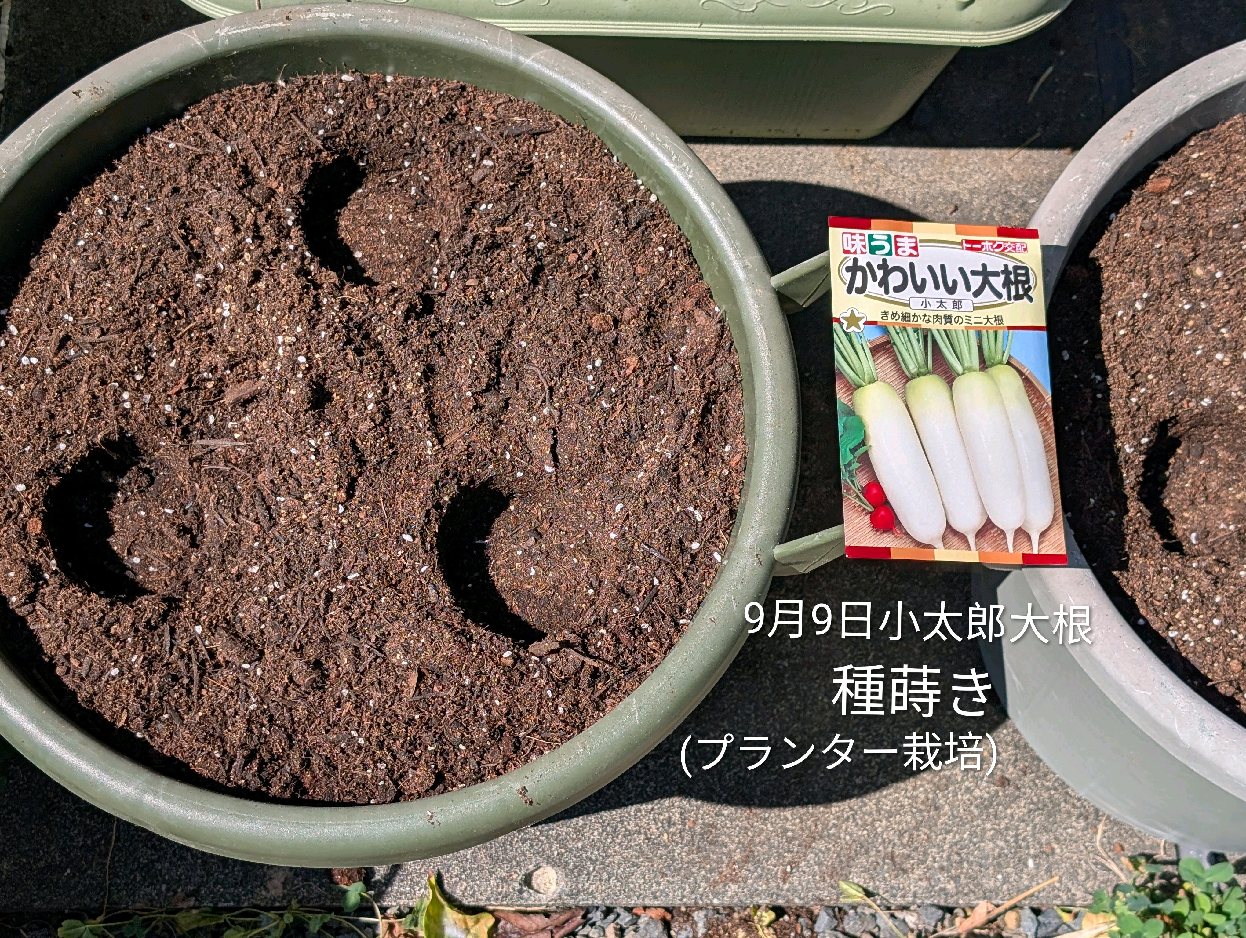 9月9日種蒔きした小太郎大根(プランター栽培)…