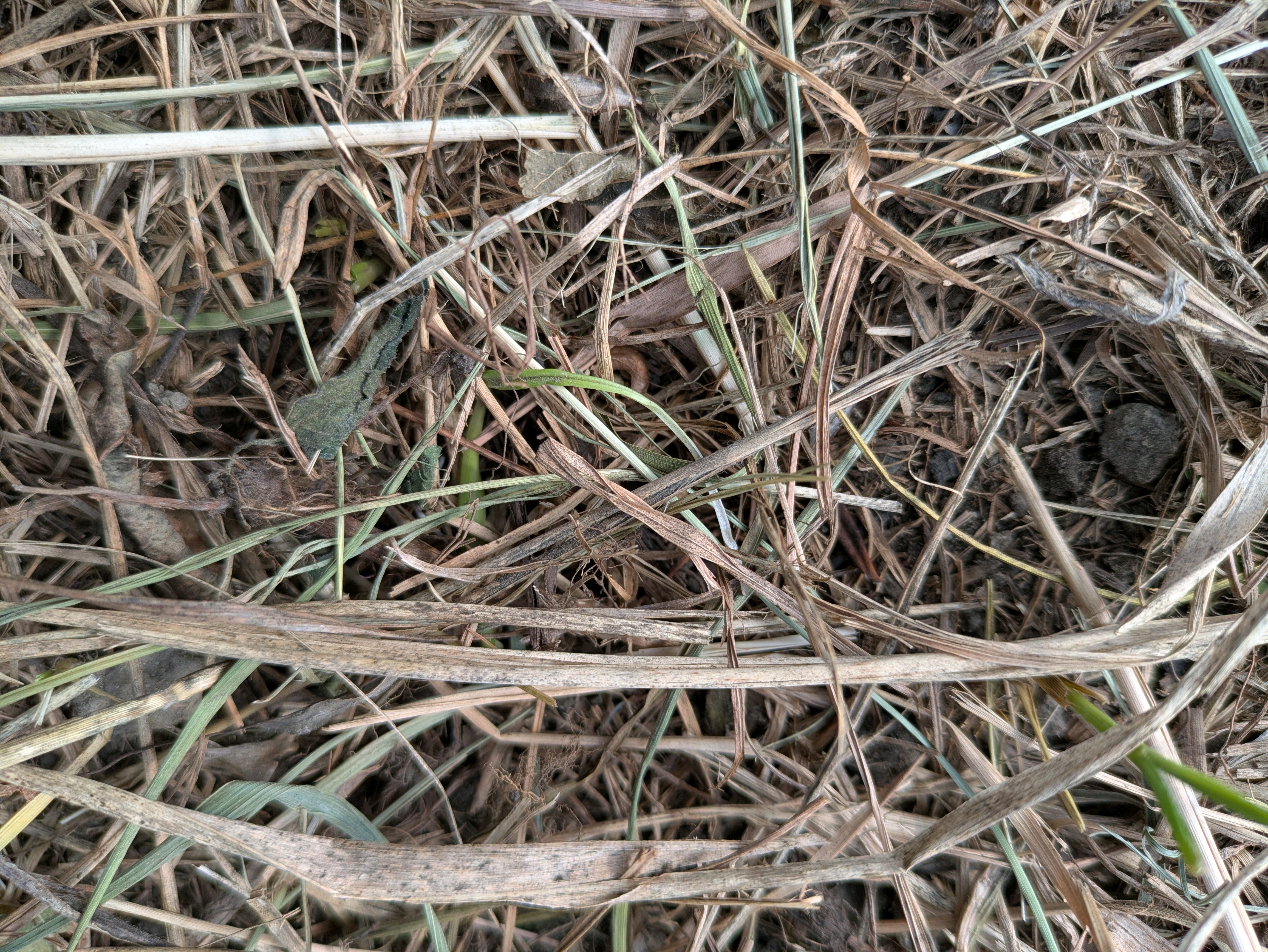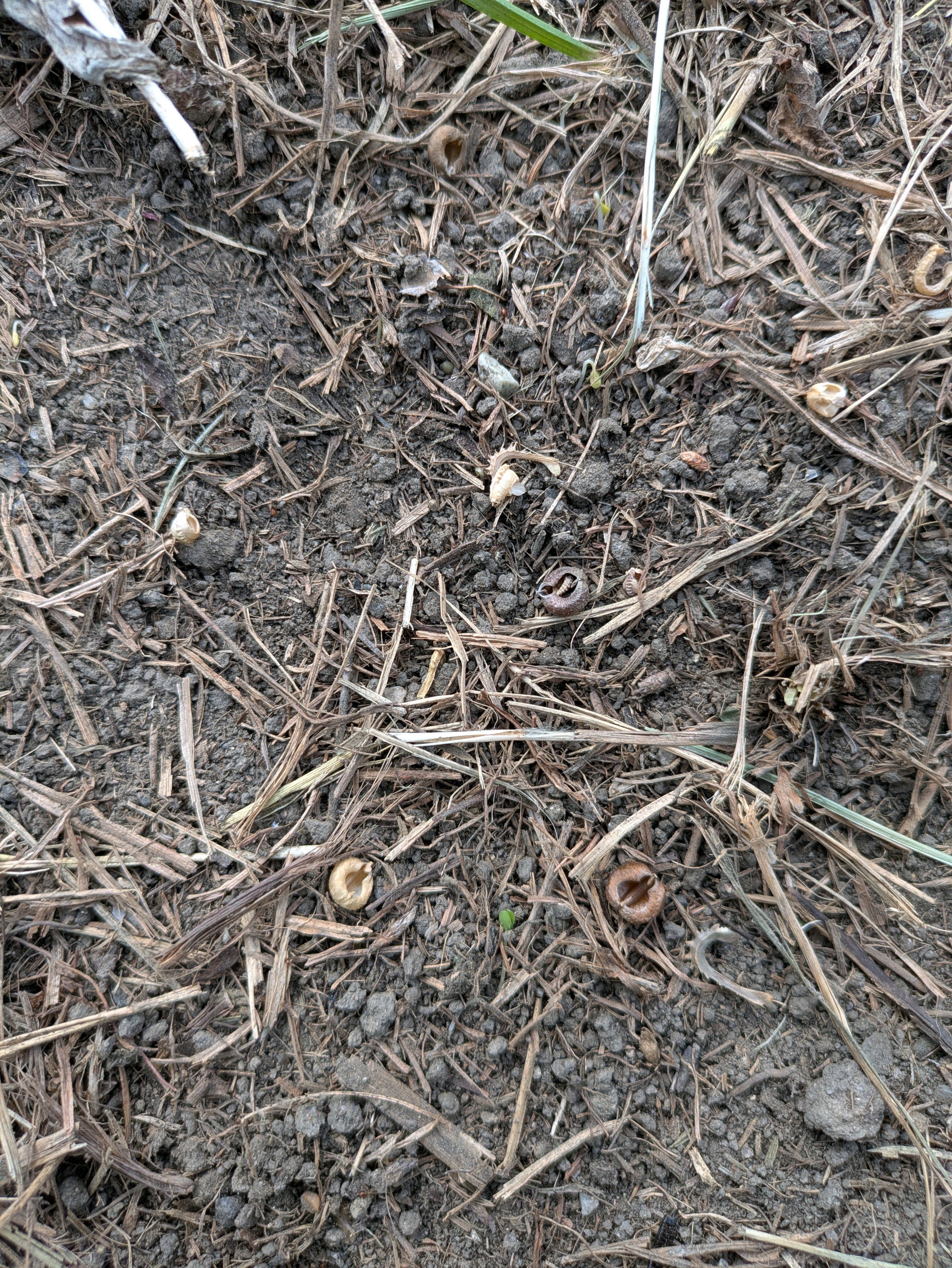 まいた種に薄く枯れ草マルチを被せました